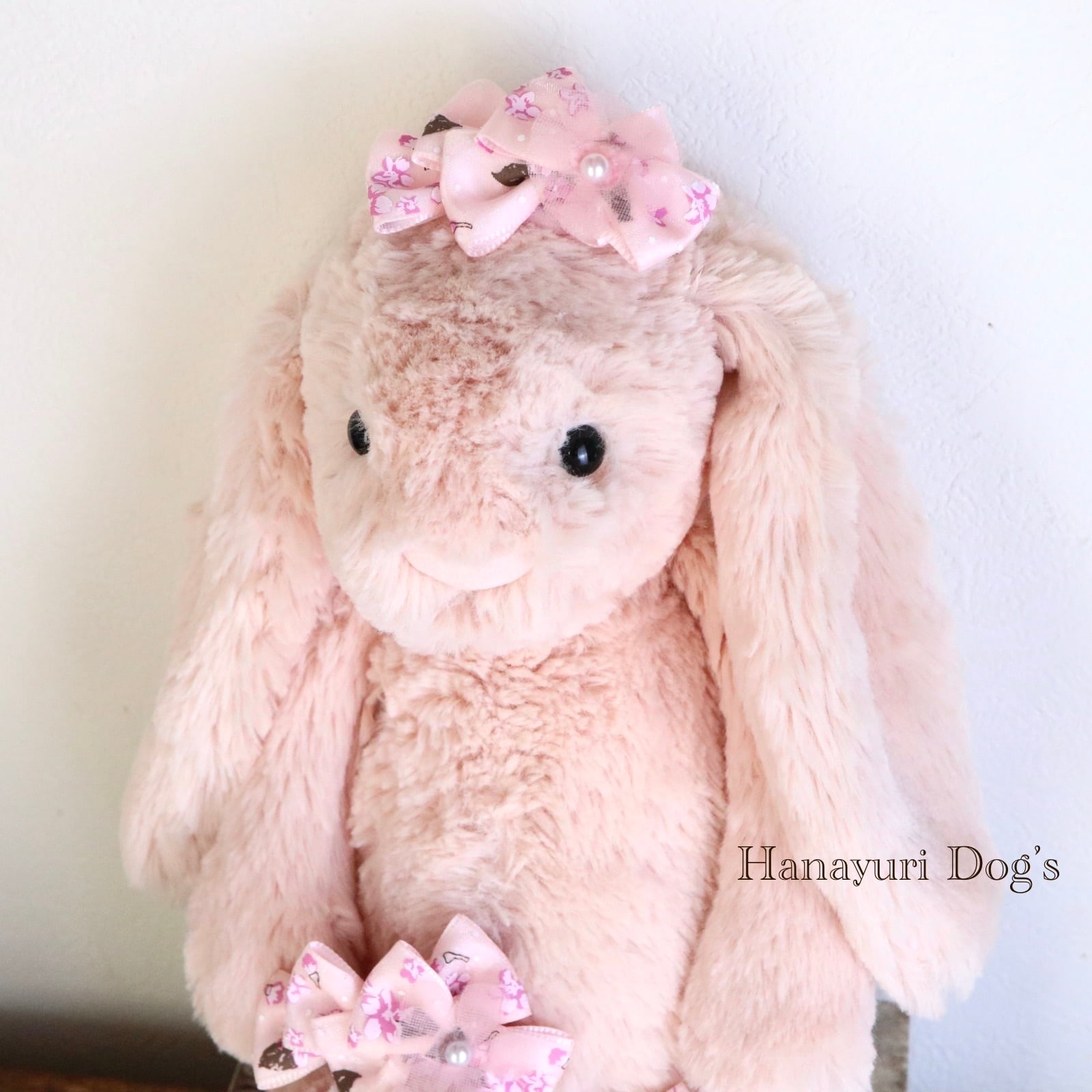 チュールのパール付きピンクの花は儚げで幻想的。