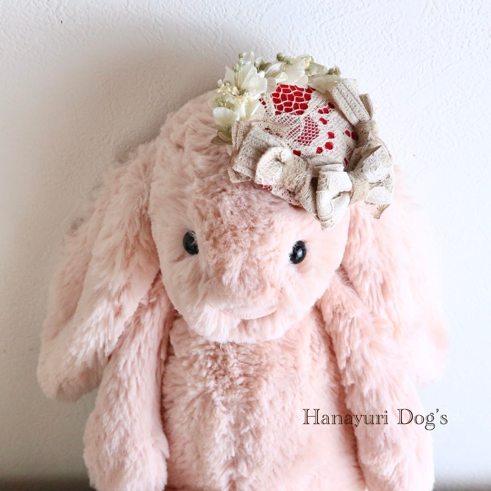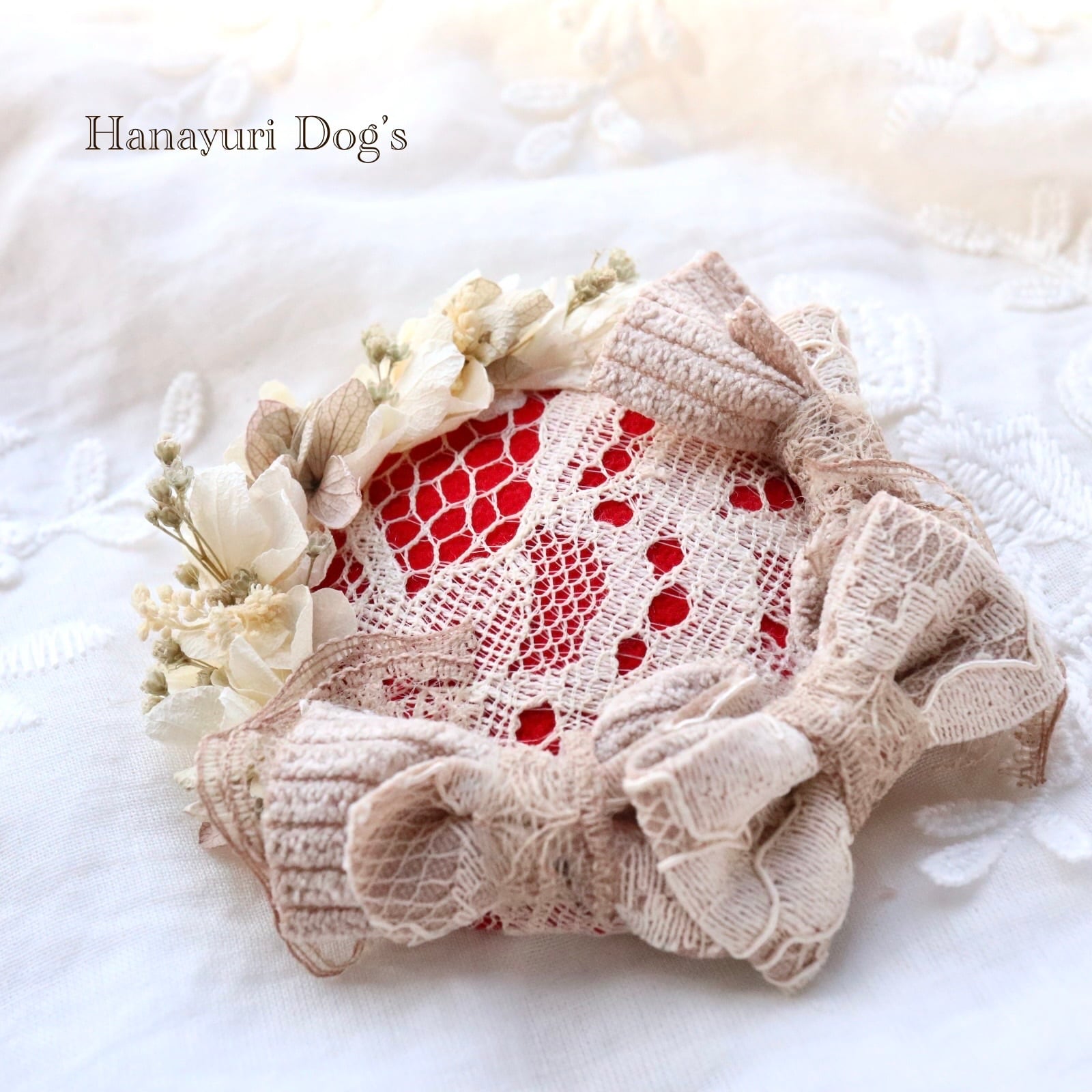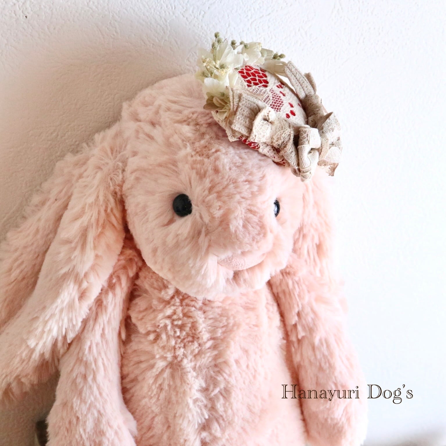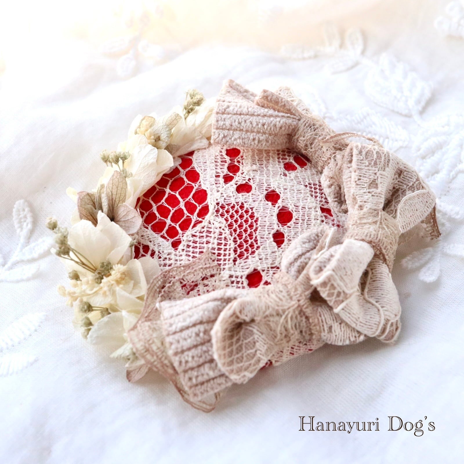 プリザーブドフラワー 皿帽子風 レッド ナチュラルシック 犬バレッタ キッズ・子供リボン ペット ぬいぐるみ ヘアアクセサリー 髪飾り 普段着 うちの子記念日 誕生日 プレゼント オフ会 イベント 撮影