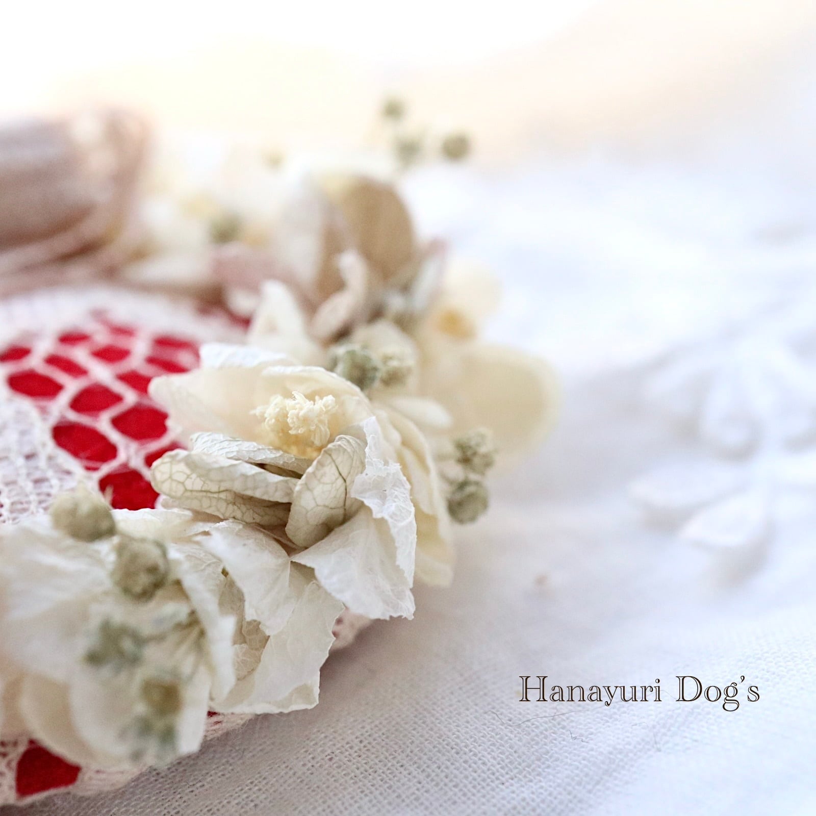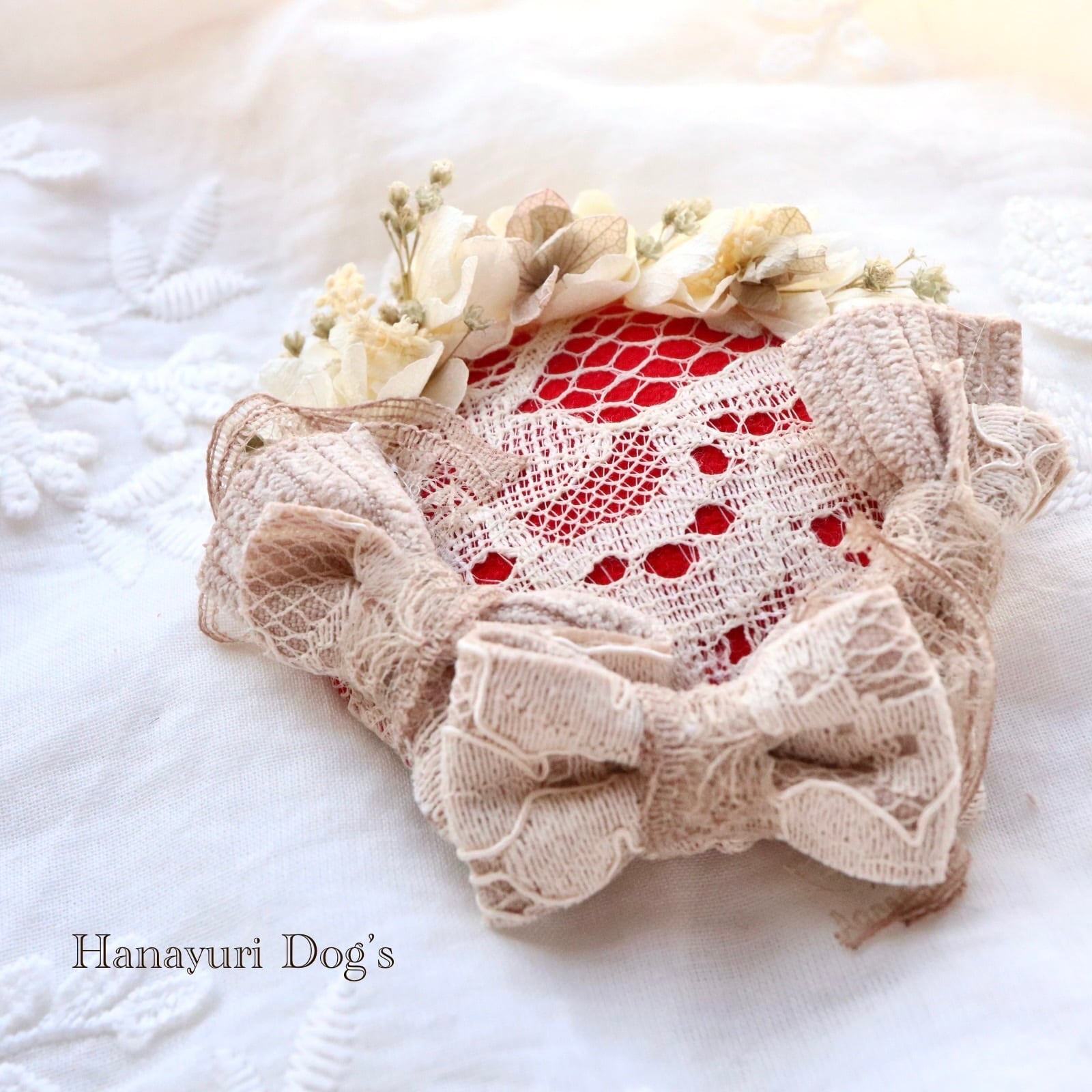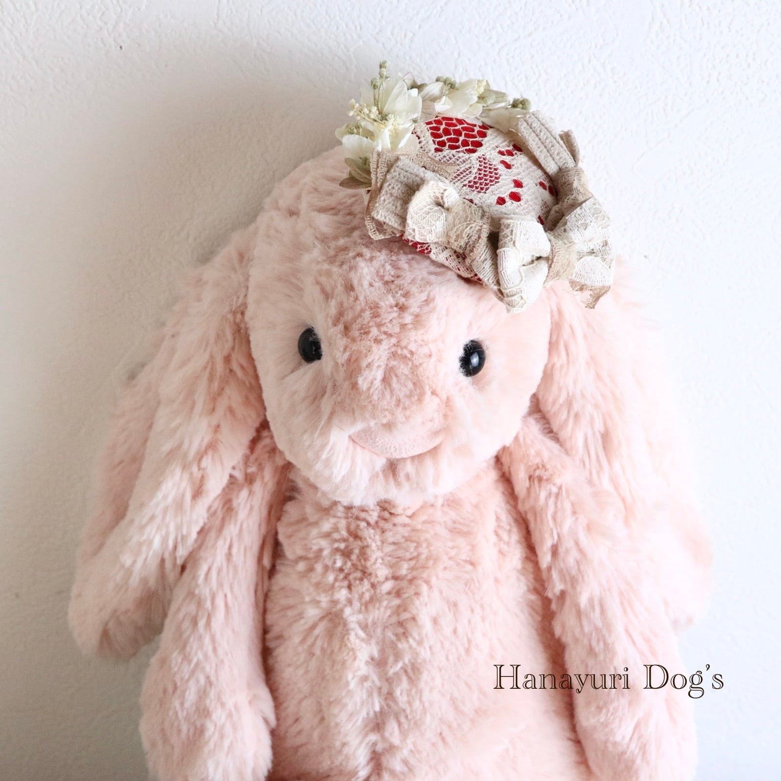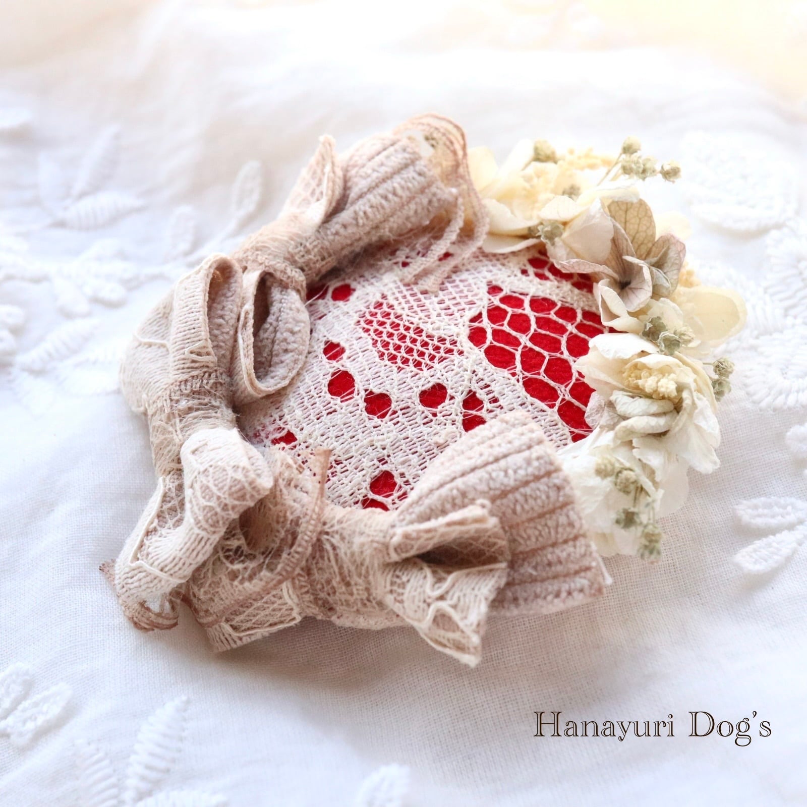 プリザーブドフラワー 皿帽子風 レッド ナチュラルシック 犬バレッタ キッズ・子供リボン ペット ぬいぐるみ ヘアアクセサリー 髪飾り 普段着 うちの子記念日 誕生日 プレゼント オフ会 イベント 撮影