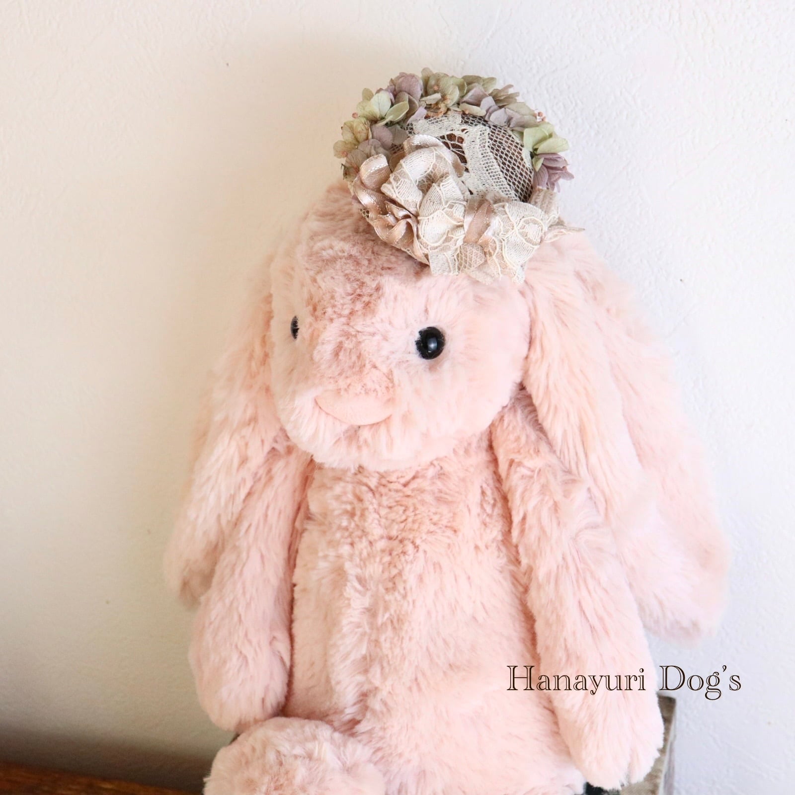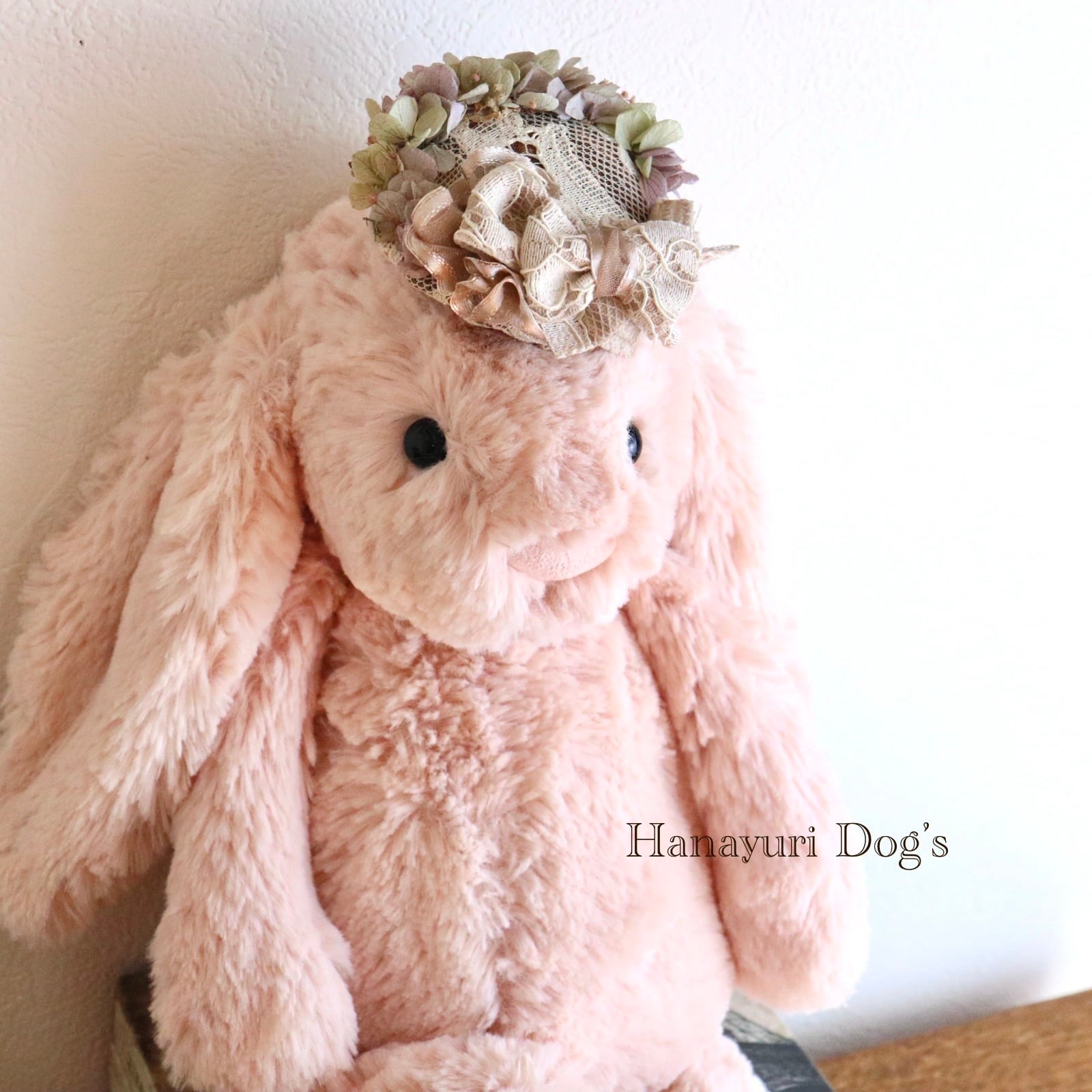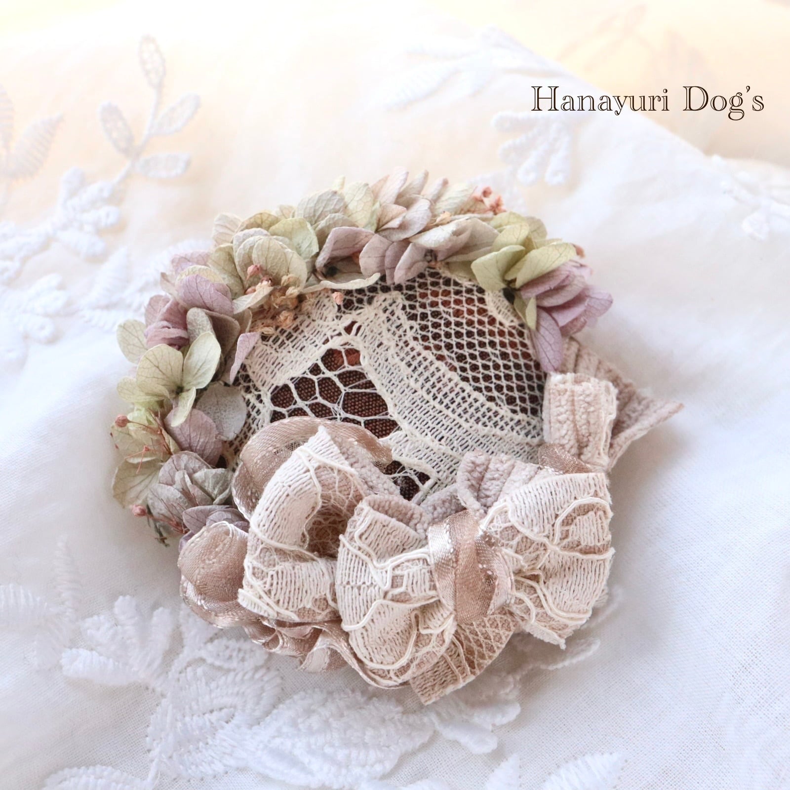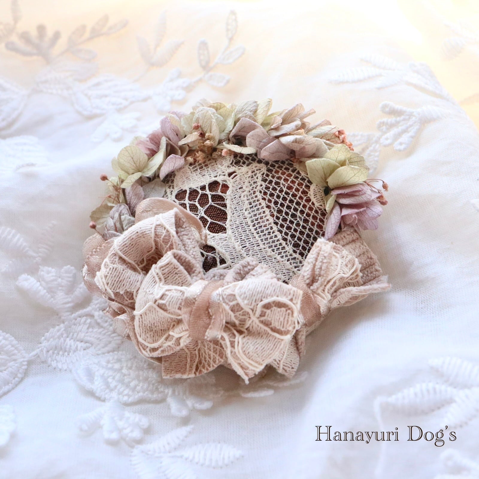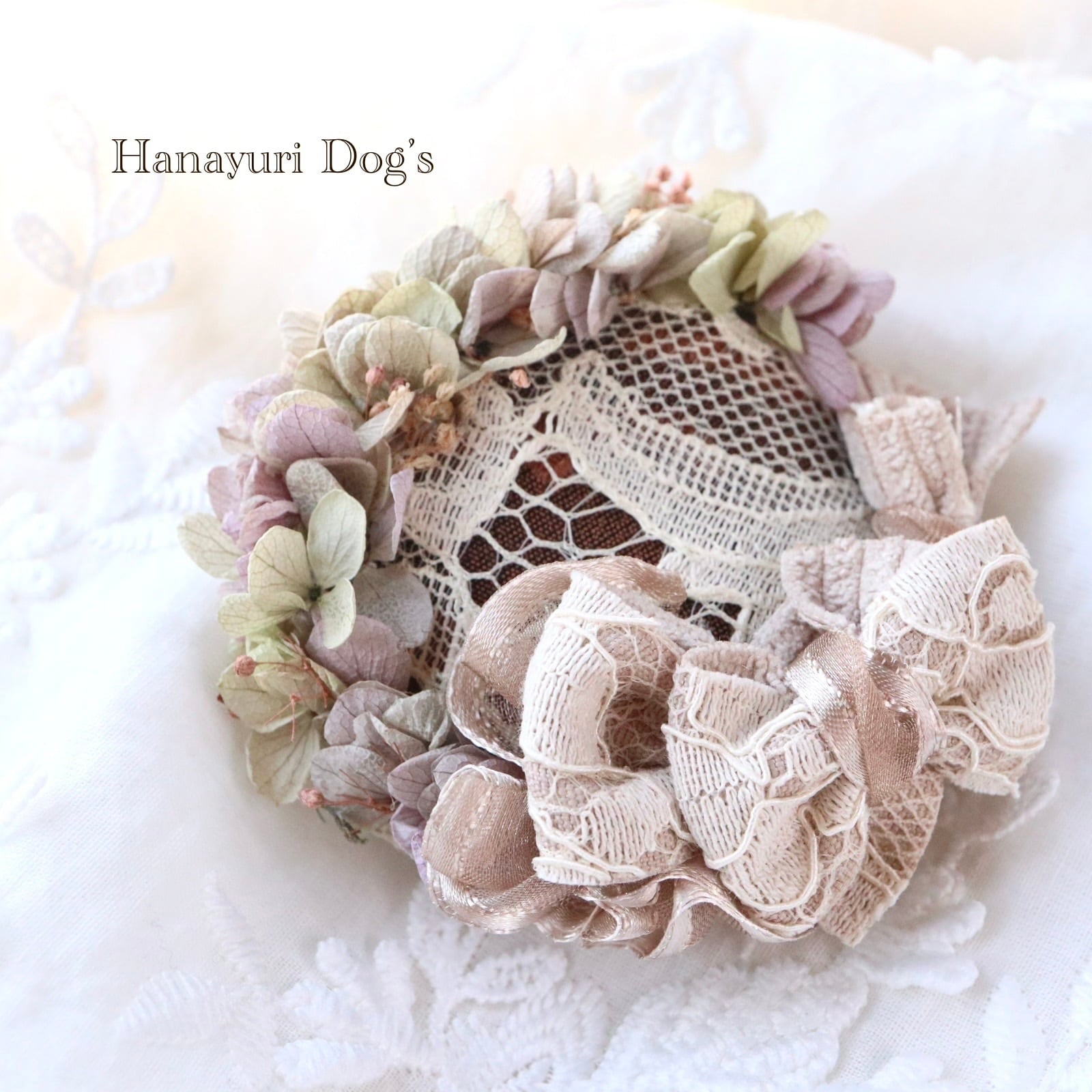 プリザーブドフラワー 皿帽子風 ブラウン ナチュラルシック 犬バレッタ キッズ・子供リボン ペット ぬいぐるみ ヘアアクセサリー 髪飾り 普段着 うちの子記念日 誕生日 プレゼント オフ会 イベント 撮影