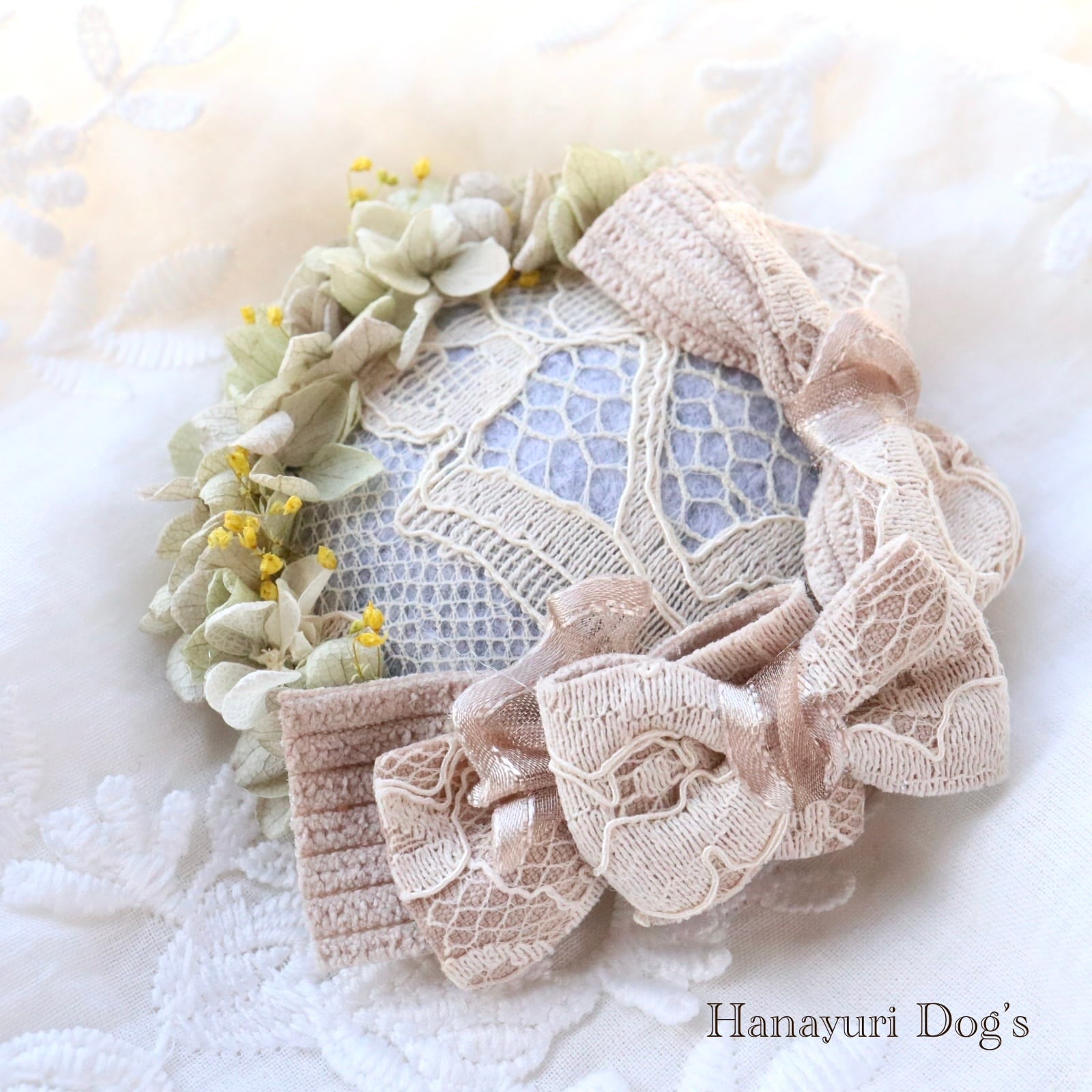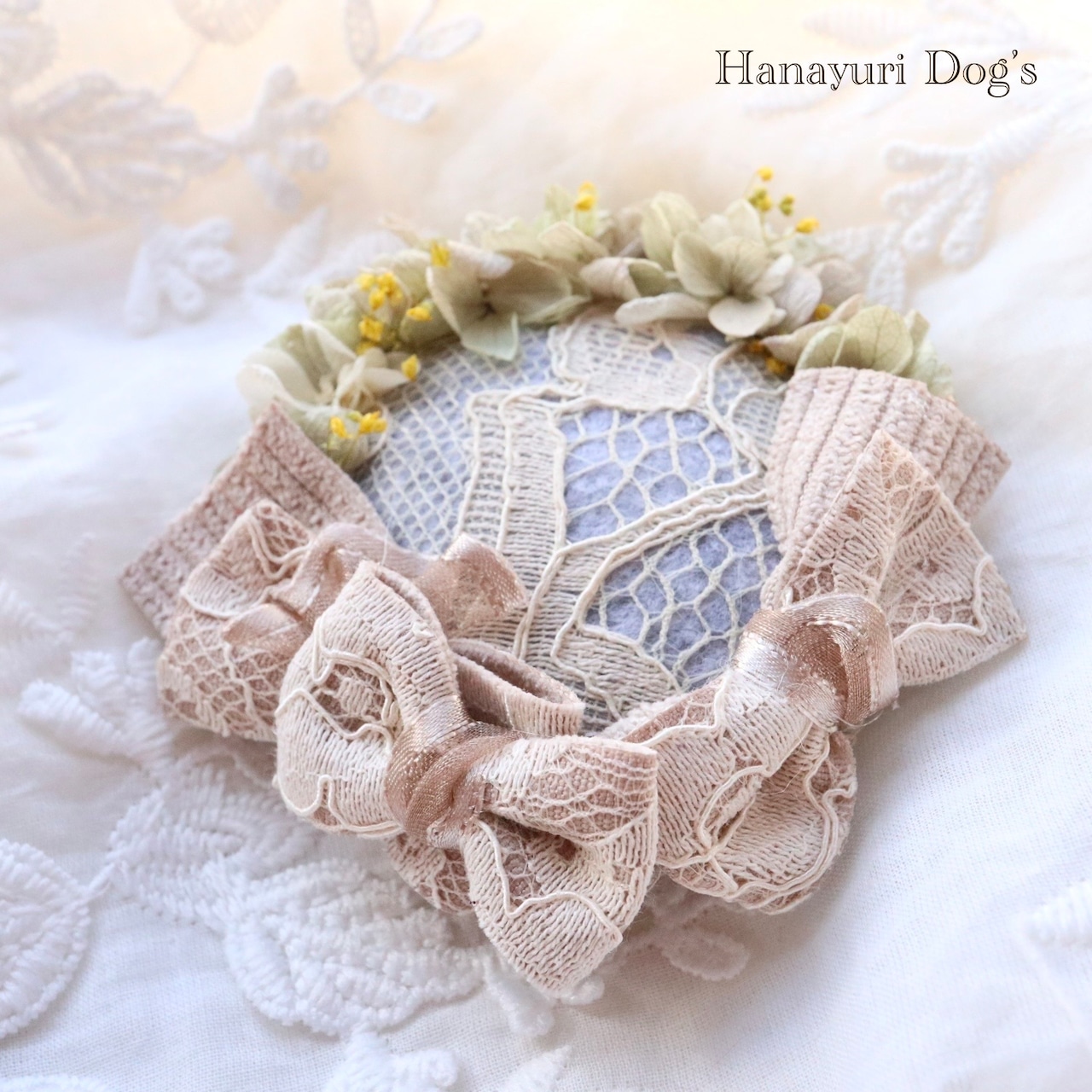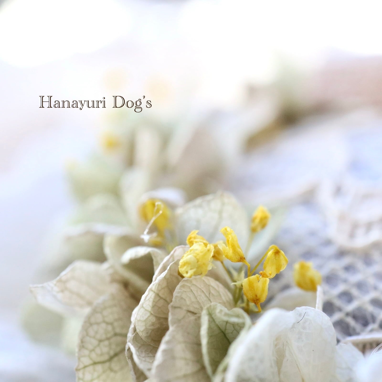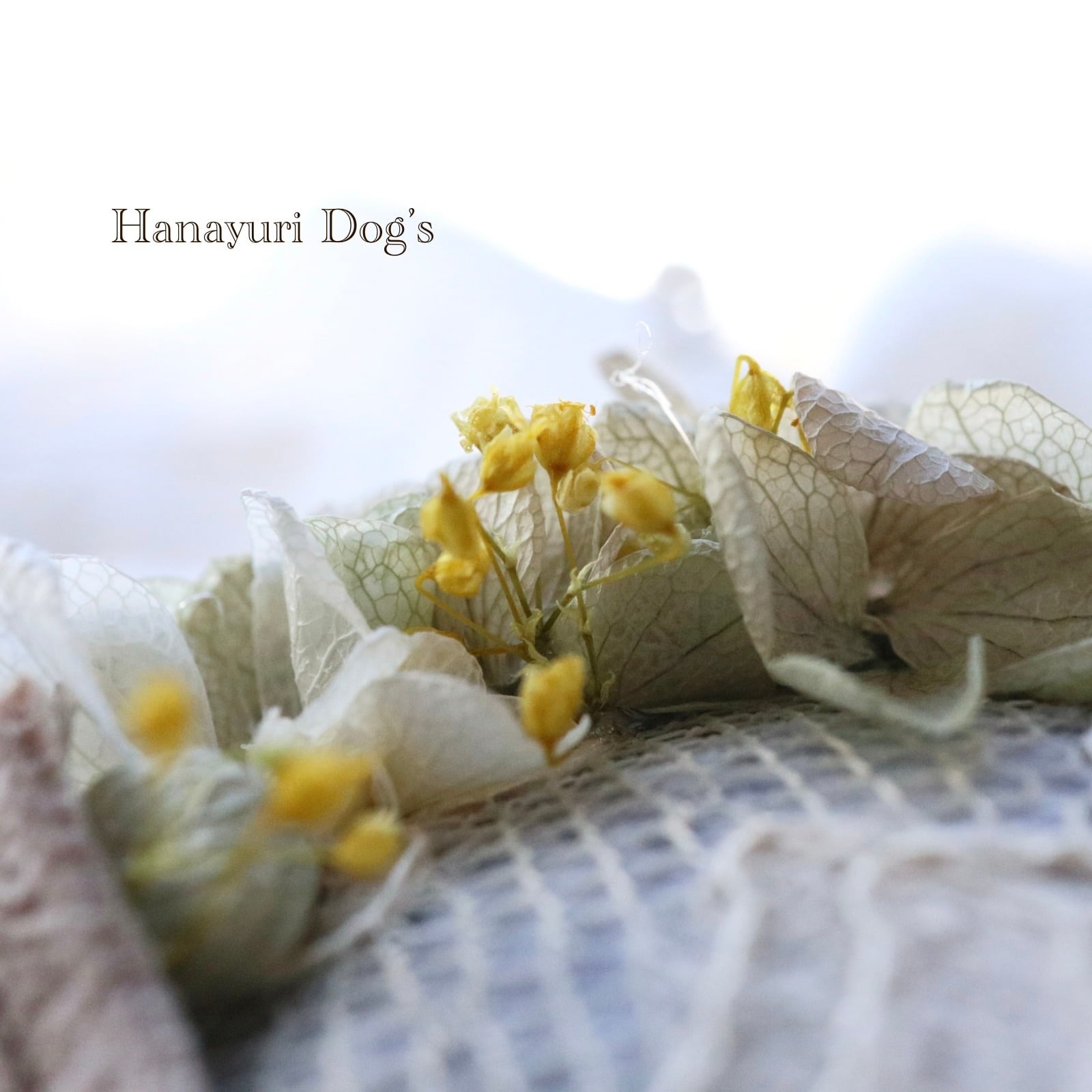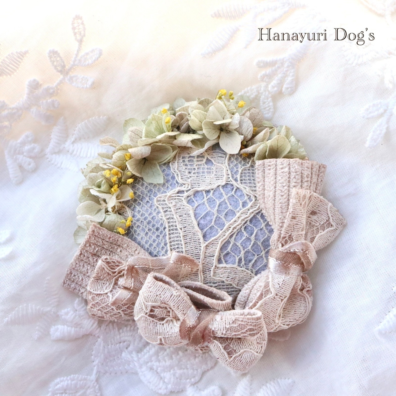 プリザーブドフラワー 皿帽子風 グレー 黄色のかすみ草 犬バレッタ キッズ・子供リボン ペット ぬいぐるみ ヘアアクセサリー 髪飾り 普段着 うちの子記念日 誕生日 プレゼント オフ会 イベント 撮影