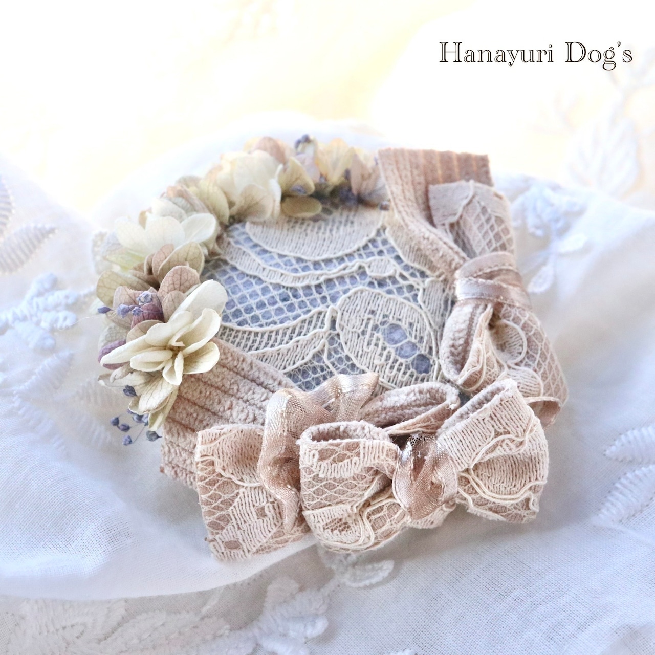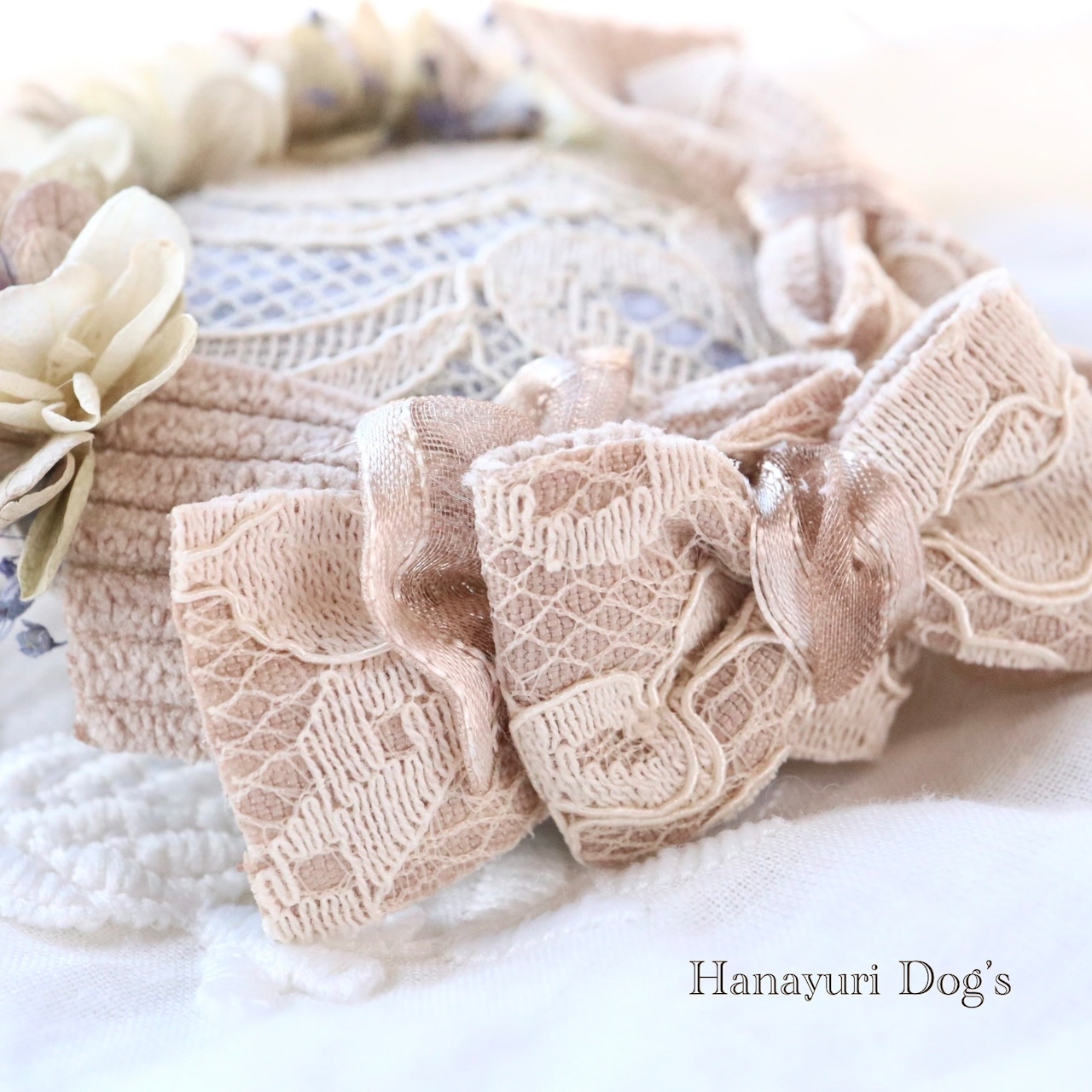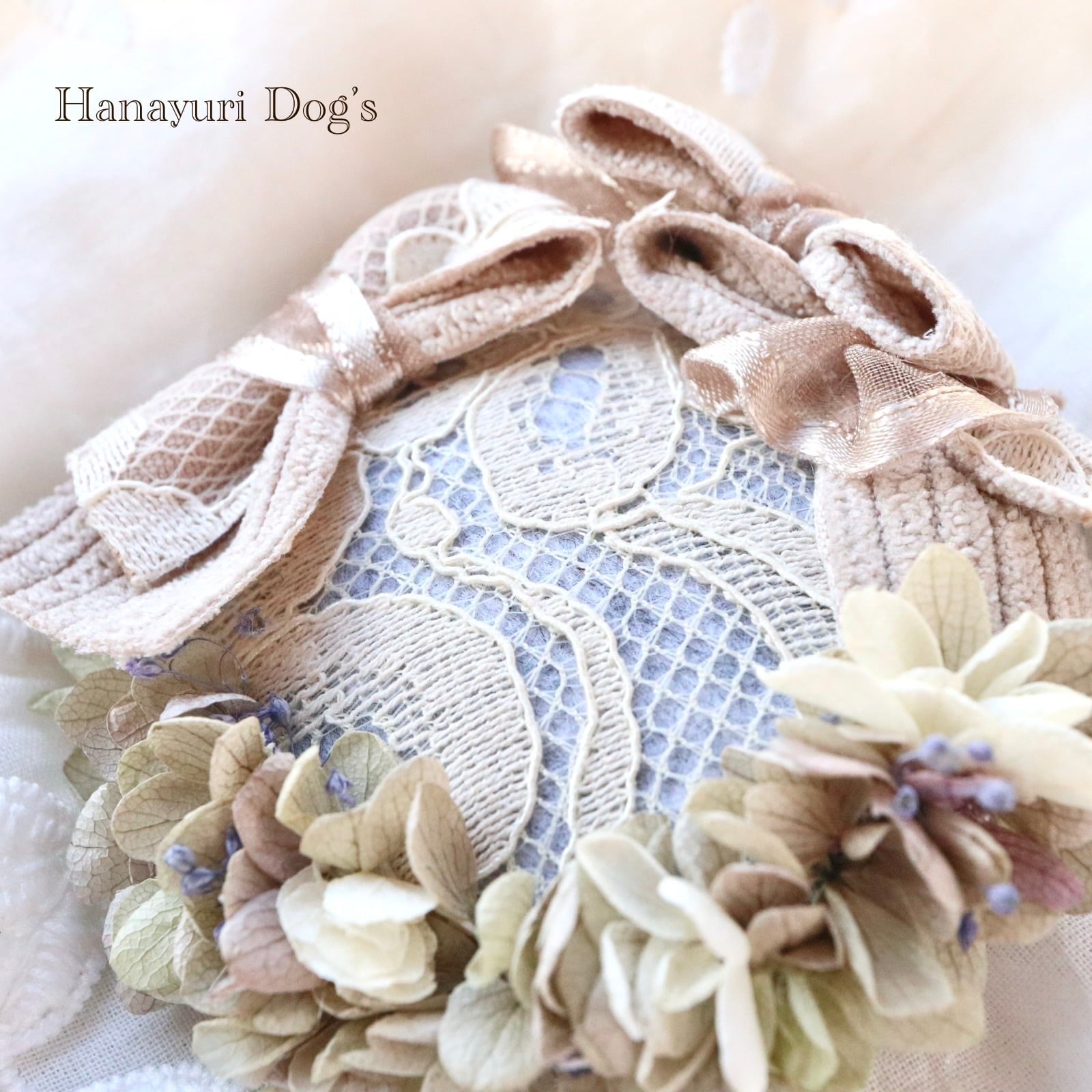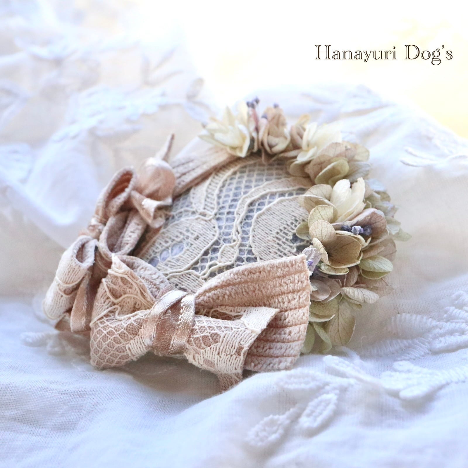 リボンはベージュのレースがエレガントで、クラシカルな雰囲気です。