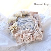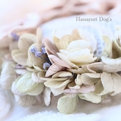 プリザーブドフラワー 皿帽子風 グレー ブルーグレーのかすみ草 犬バレッタ キッズ・子供リボン ペット ぬいぐるみ ヘアアクセサリー 髪飾り 普段着 うちの子記念日 誕生日 プレゼント オフ会 イベント 撮影