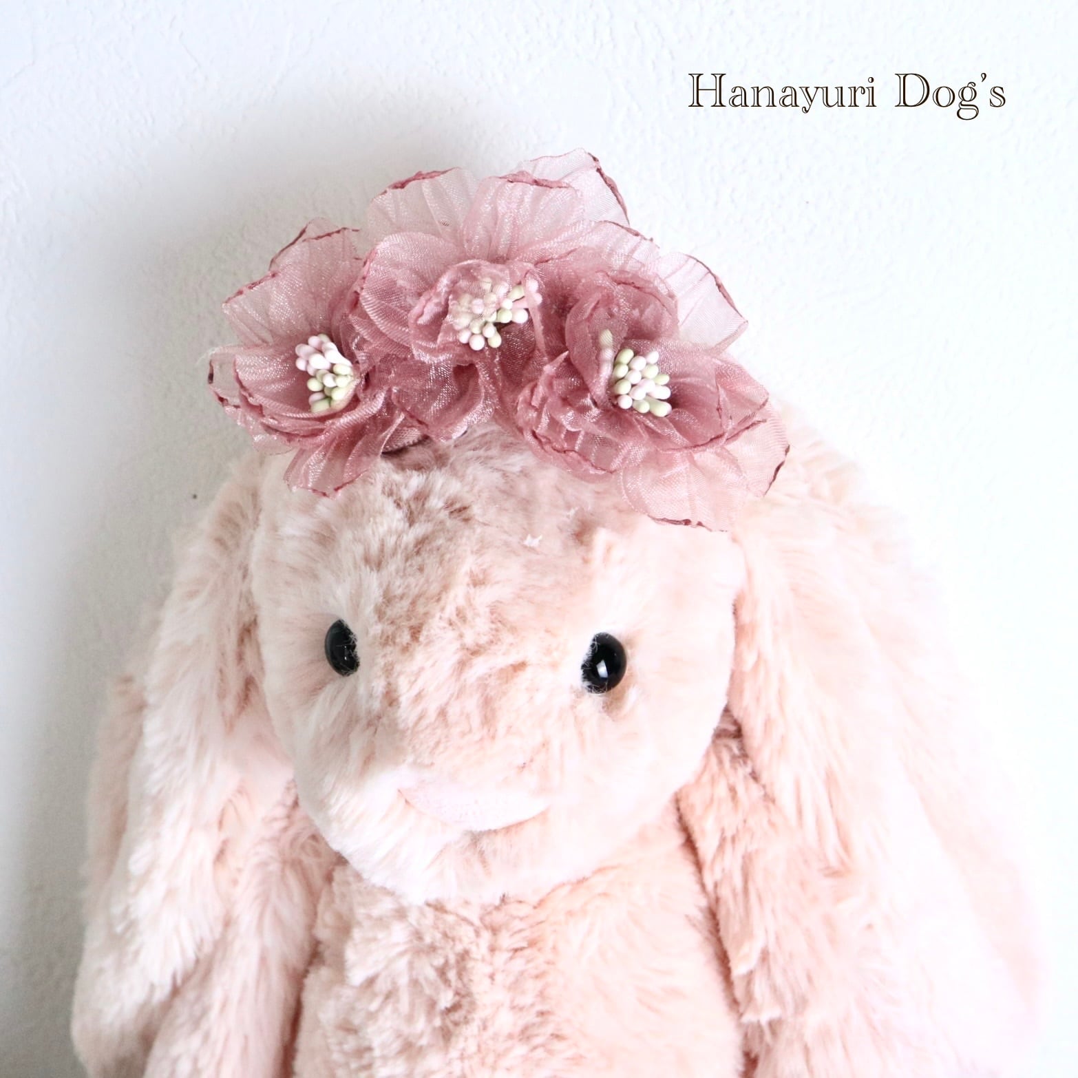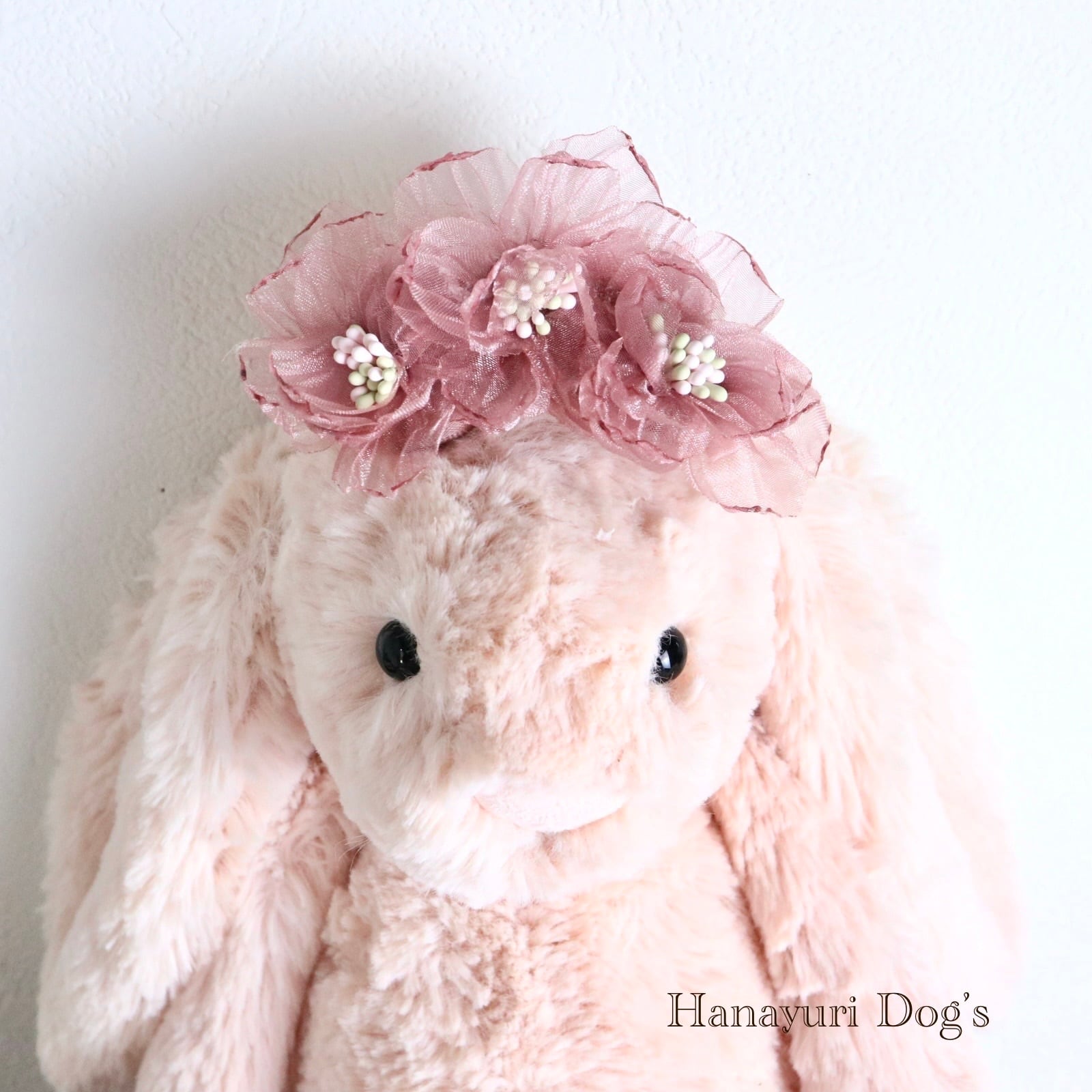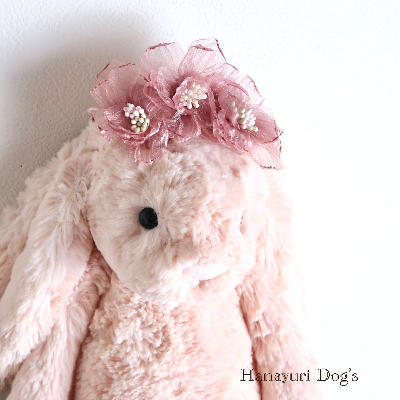 オーガンジーの花 クラシカルピンク 犬バレッタ キッズ・子供リボン ペット ぬいぐるみ ヘアアクセサリー 髪飾り 誕生日 プレゼント オフ会 イベント 撮影 うちの子記念日