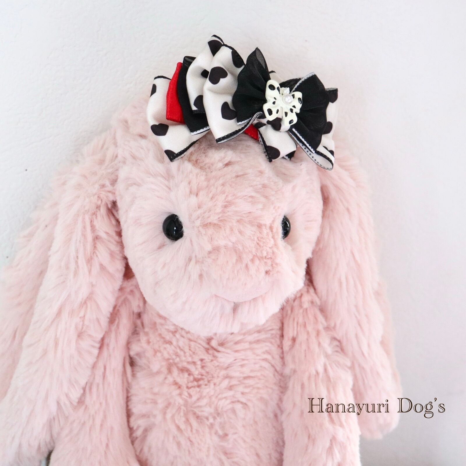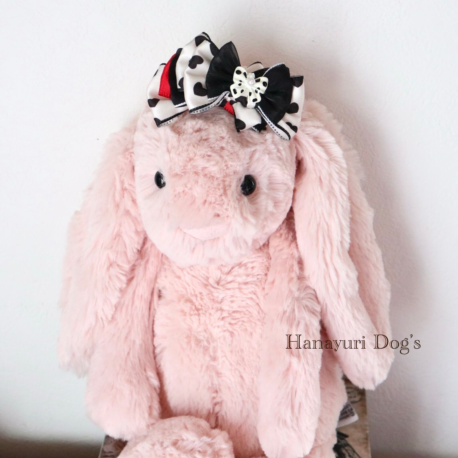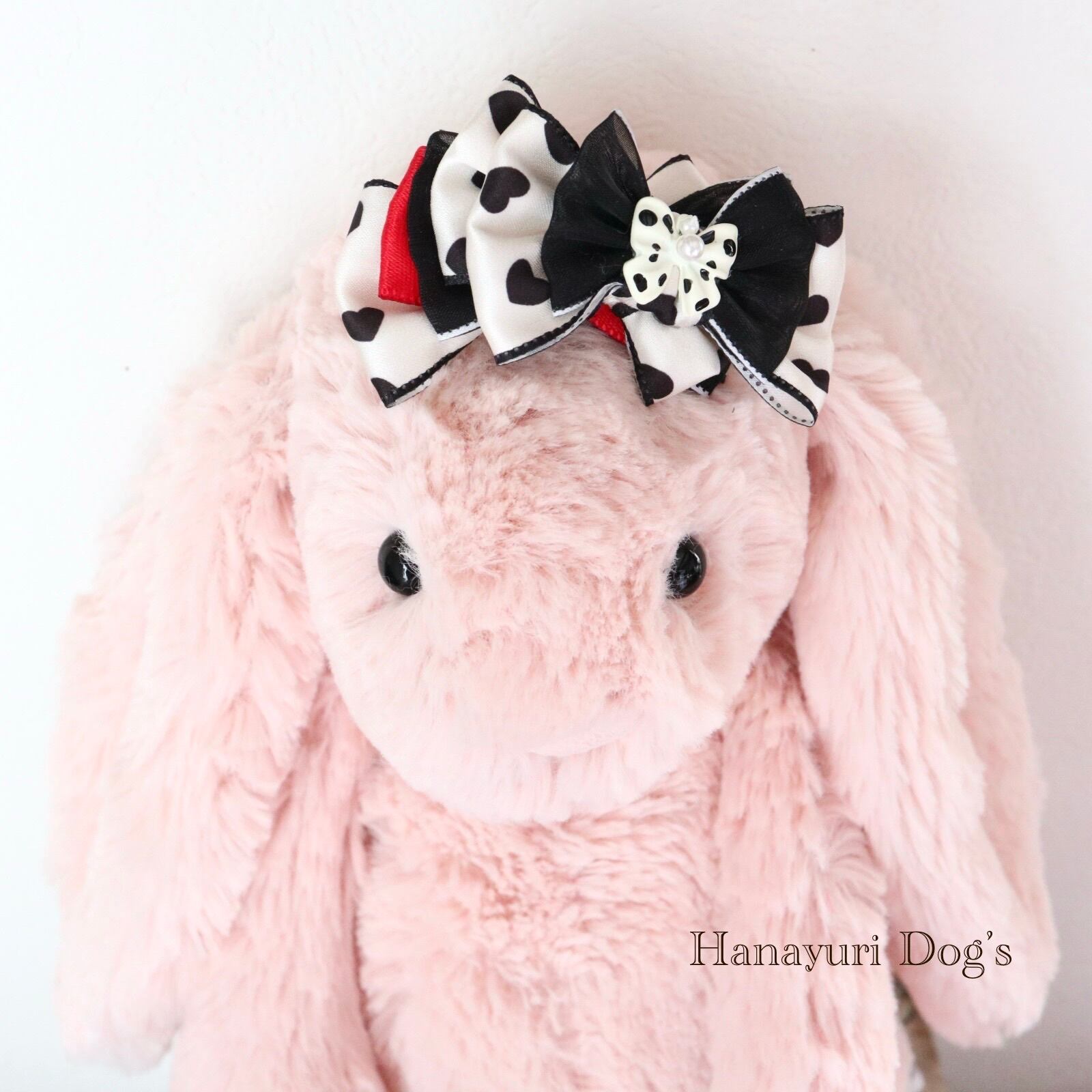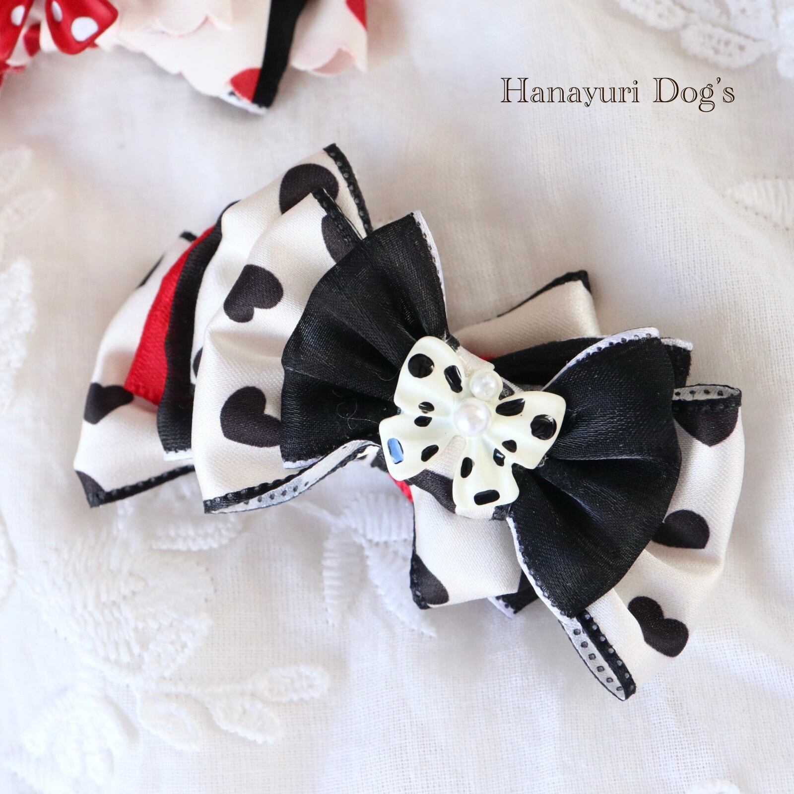 ハートとドットリボン 赤と黒1p 犬バレッタ キッズ・子供リボン ペット ぬいぐるみ ヘアアクセサリー 髪飾り 誕生日 記念日 プレゼント オフ会 うちの子記念日 イベント 撮影