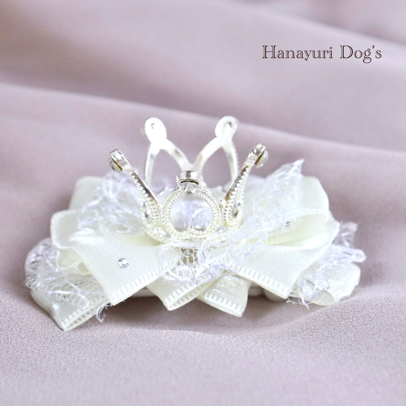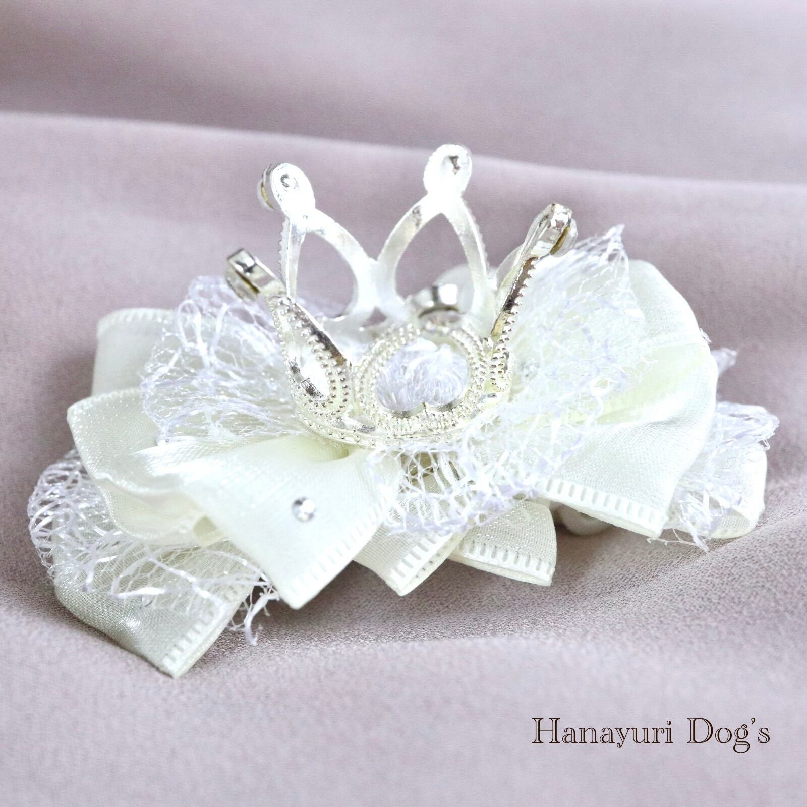 王冠 クラウン ティアラ ホワイト 犬バレッタ キッズ・子供リボン ペット ぬいぐるみ ヘアアクセサリー 髪飾り 誕生日 記念日 プレゼント オフ会 うちの子記念日 イベント 撮影
