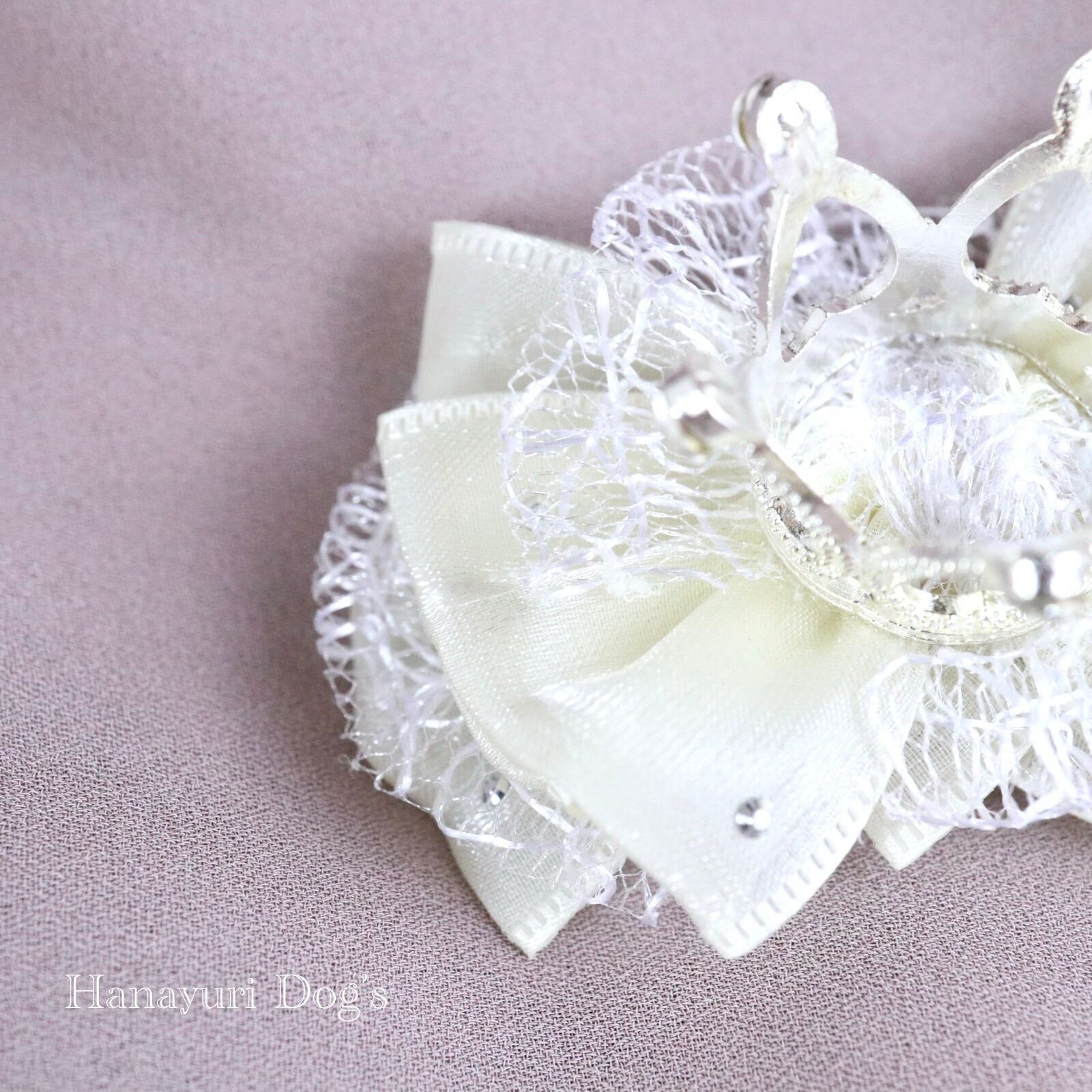 ラインストーン付きのオーガンジーに繊細なレースのリボンをふんわり重ねました。