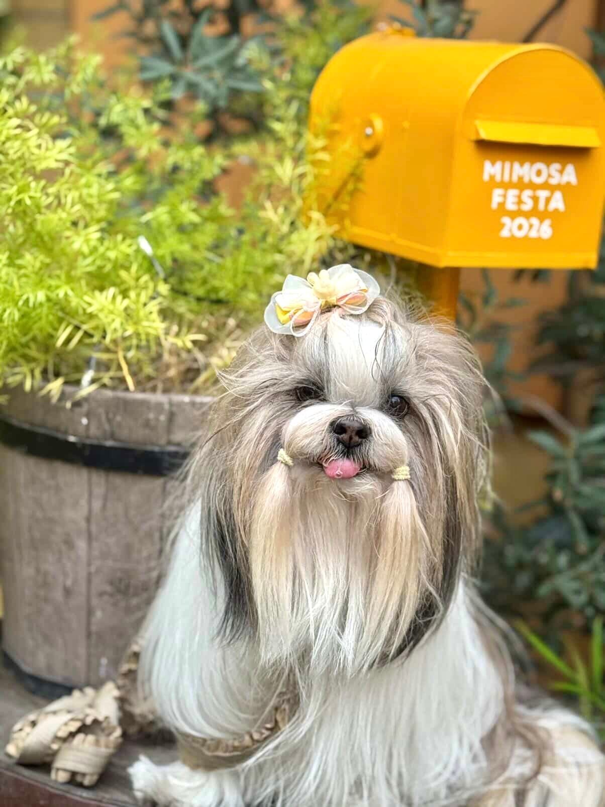 黄色いうさぎ 黄色×ピンク 犬バレッタ キッズ・子供リボン ペット ぬいぐるみ イースター ヘアアクセサリー 髪飾り 誕生日 記念日 プレゼント オフ会 うちの子記念日 イベント 撮影