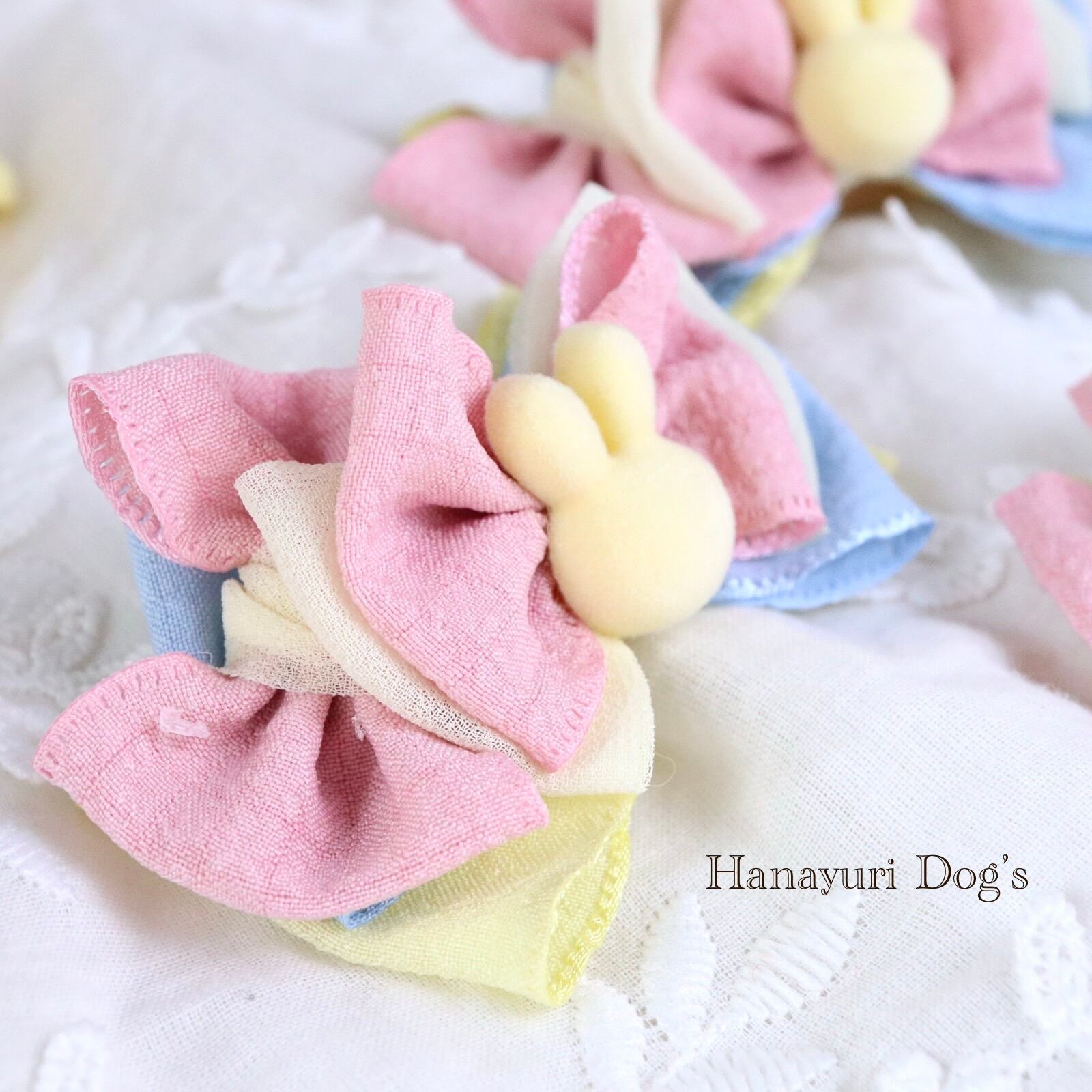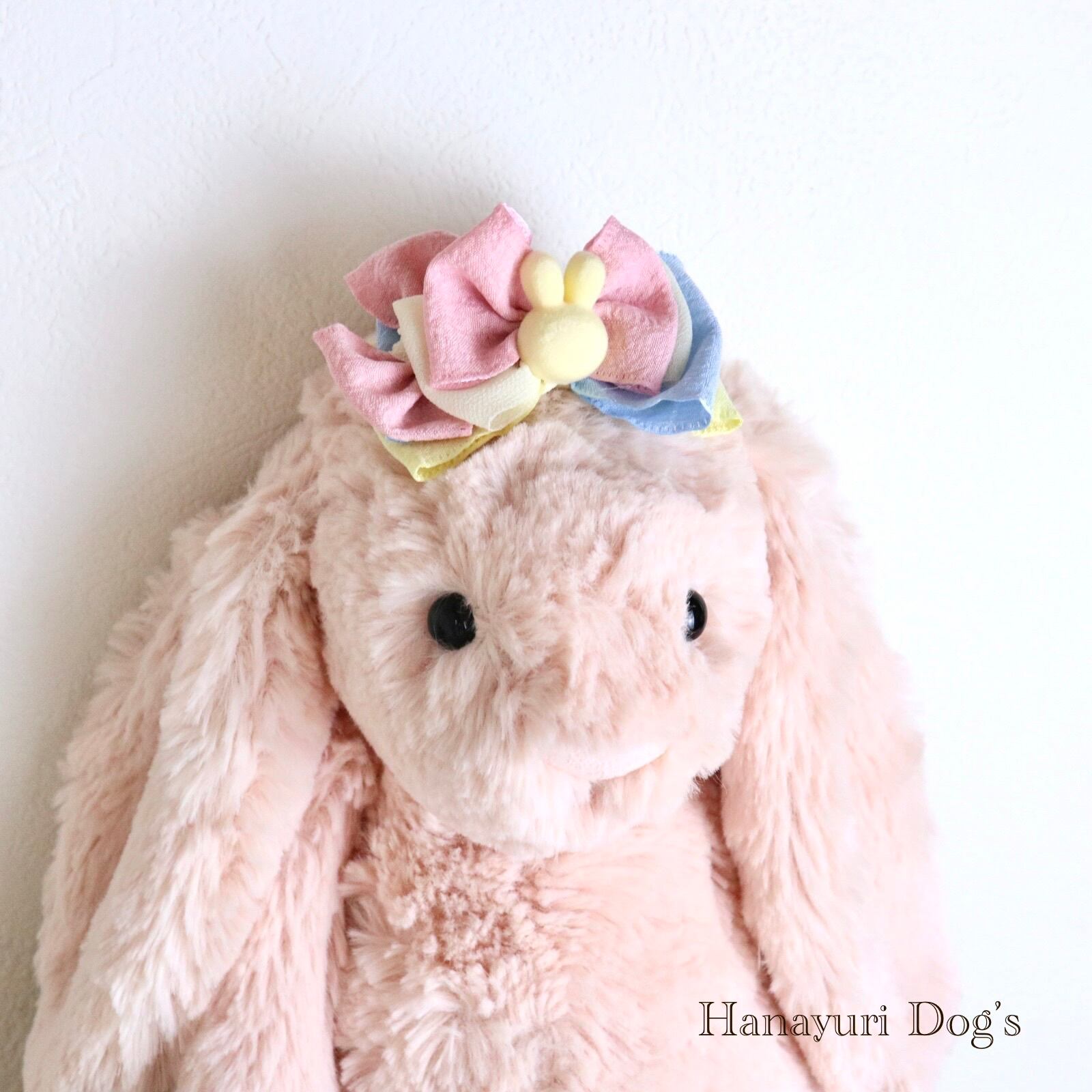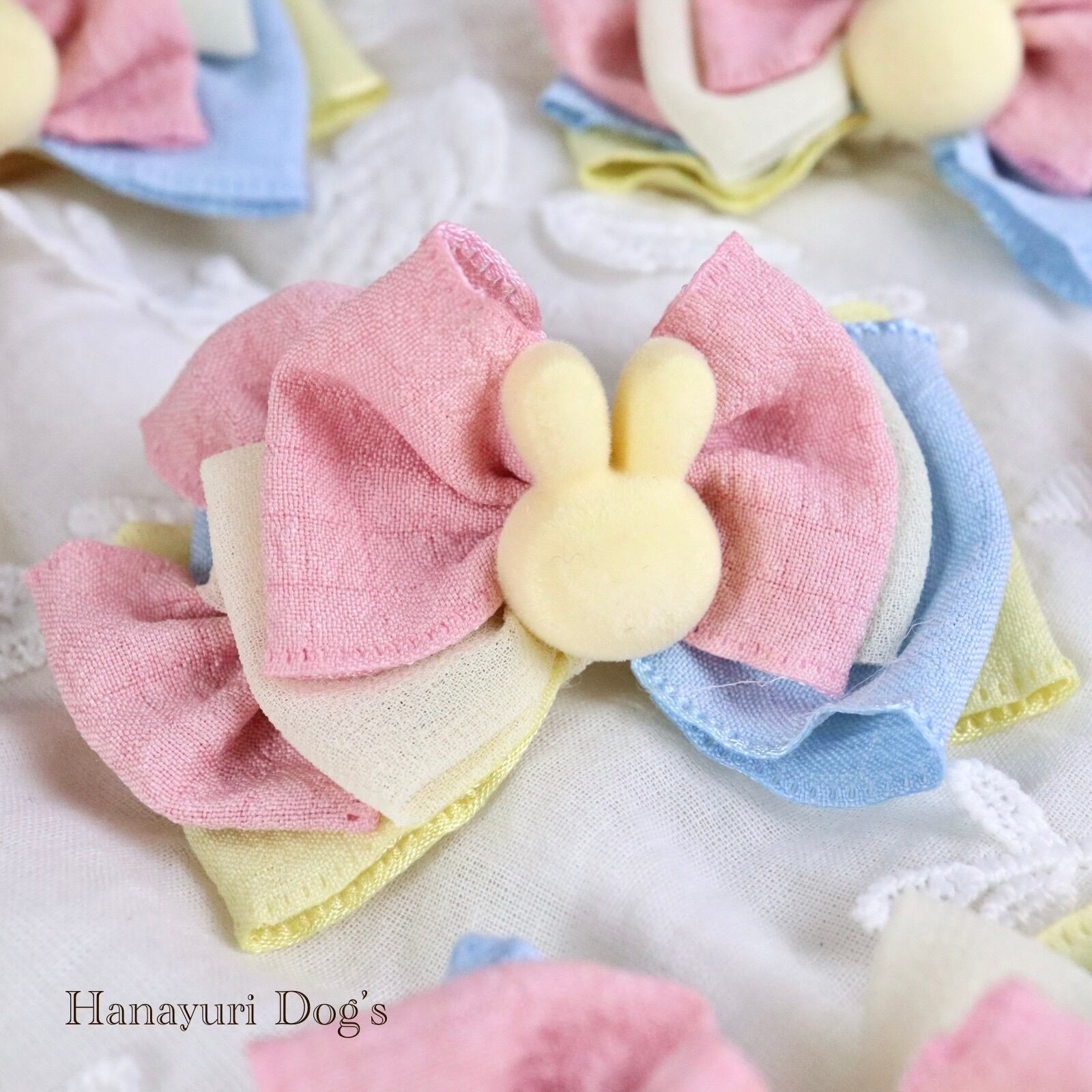 黄色いうさぎ カラフル 犬バレッタ キッズ・子供リボン ペット ぬいぐるみ イースター ヘアアクセサリー 髪飾り 誕生日 記念日 プレゼント オフ会 うちの子記念日 イベント 撮影