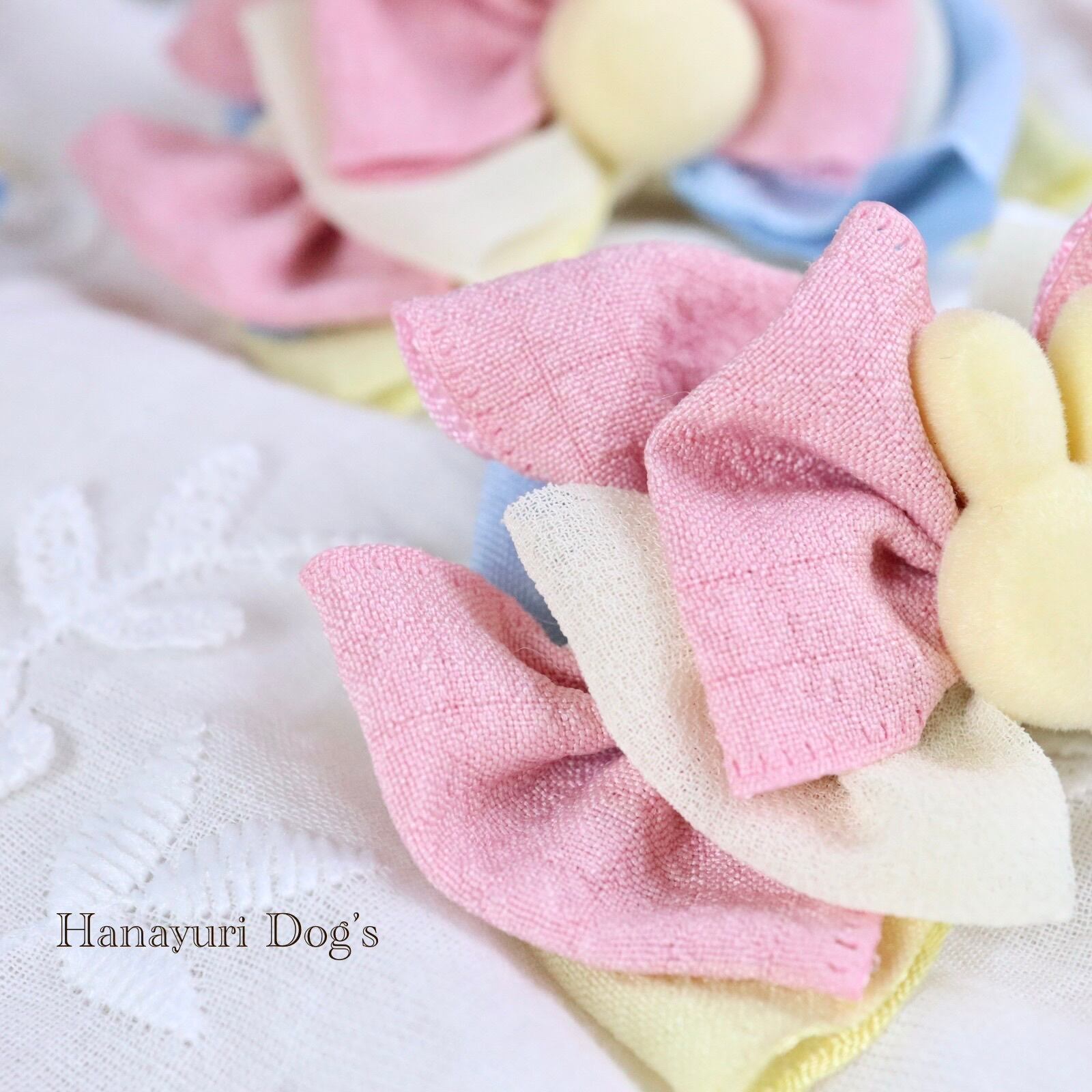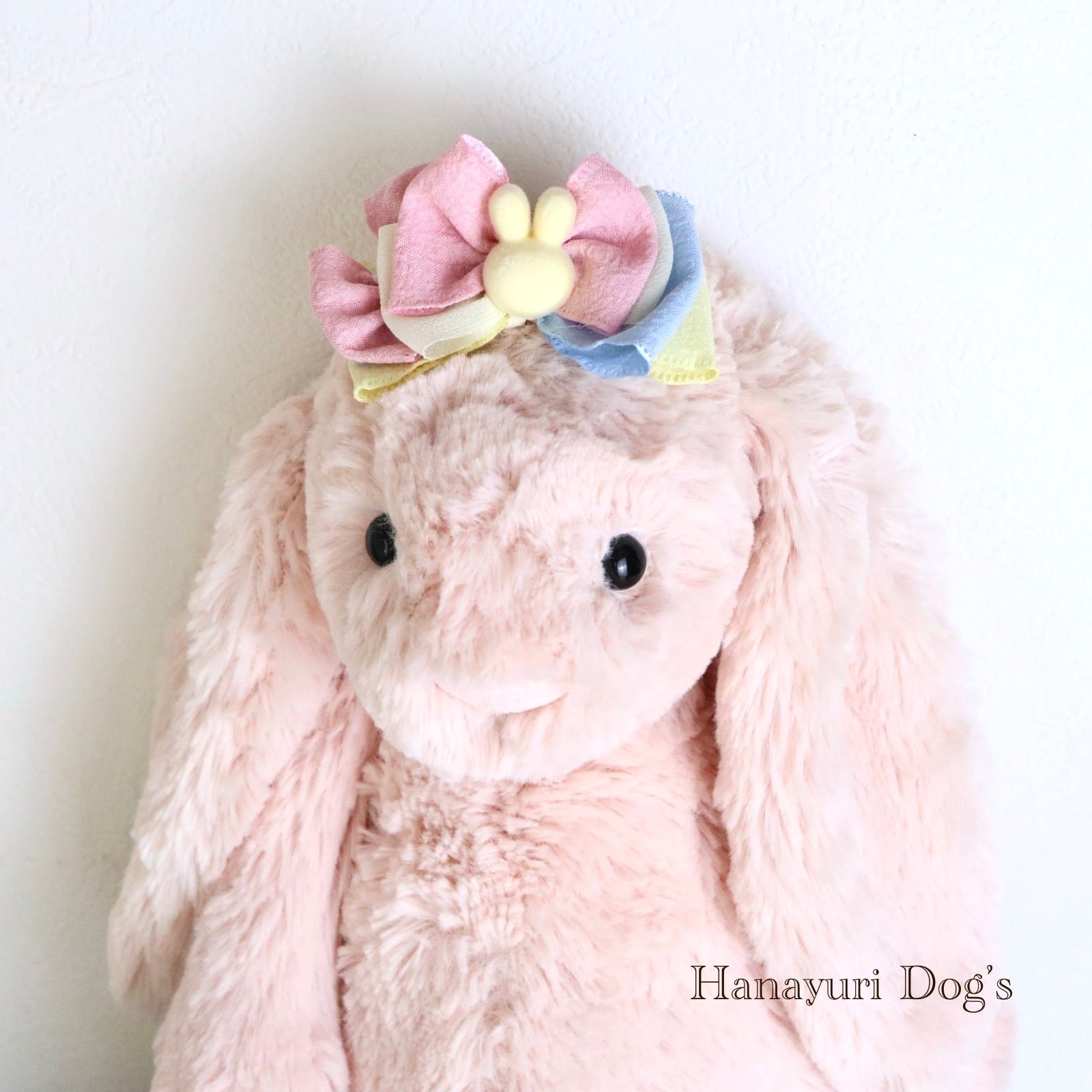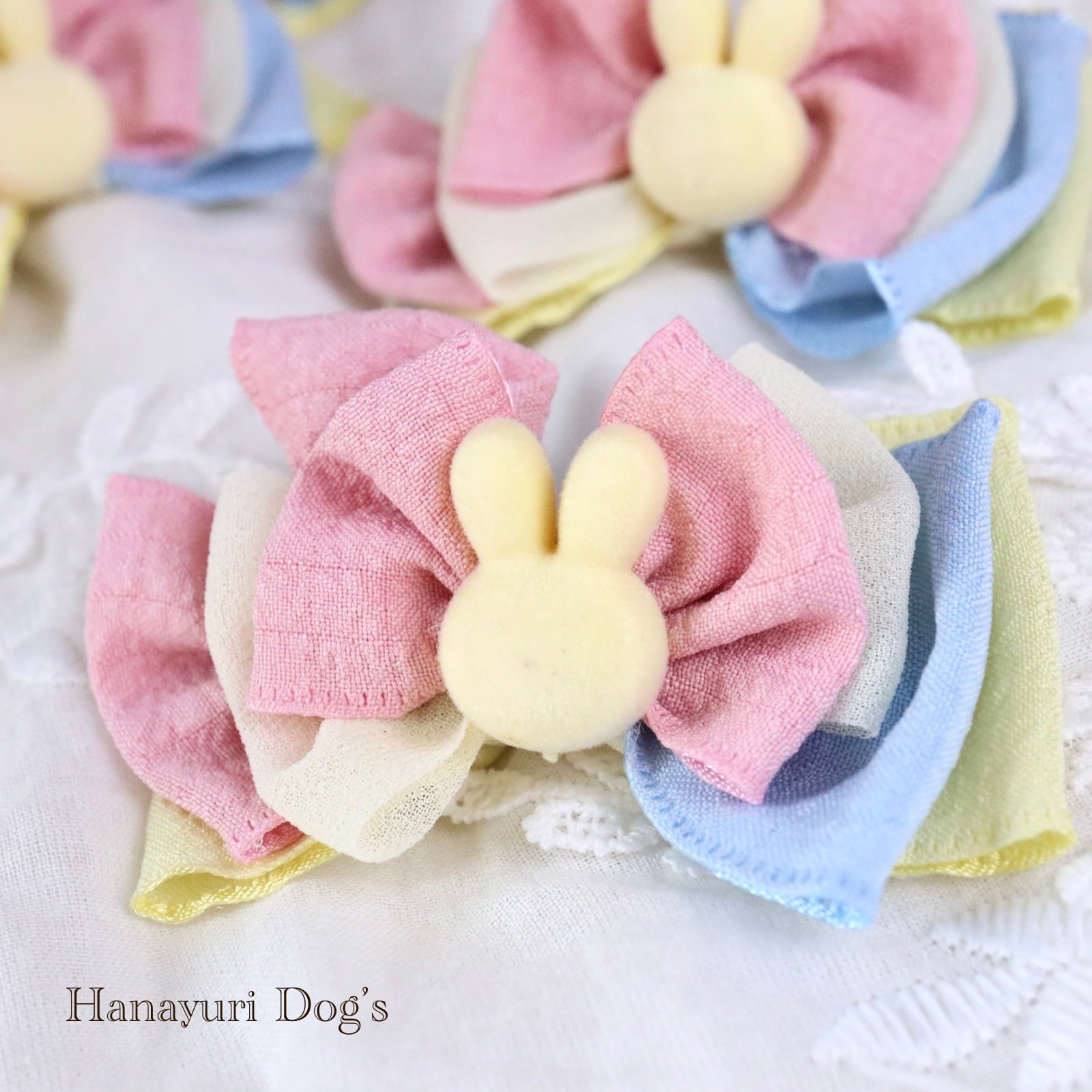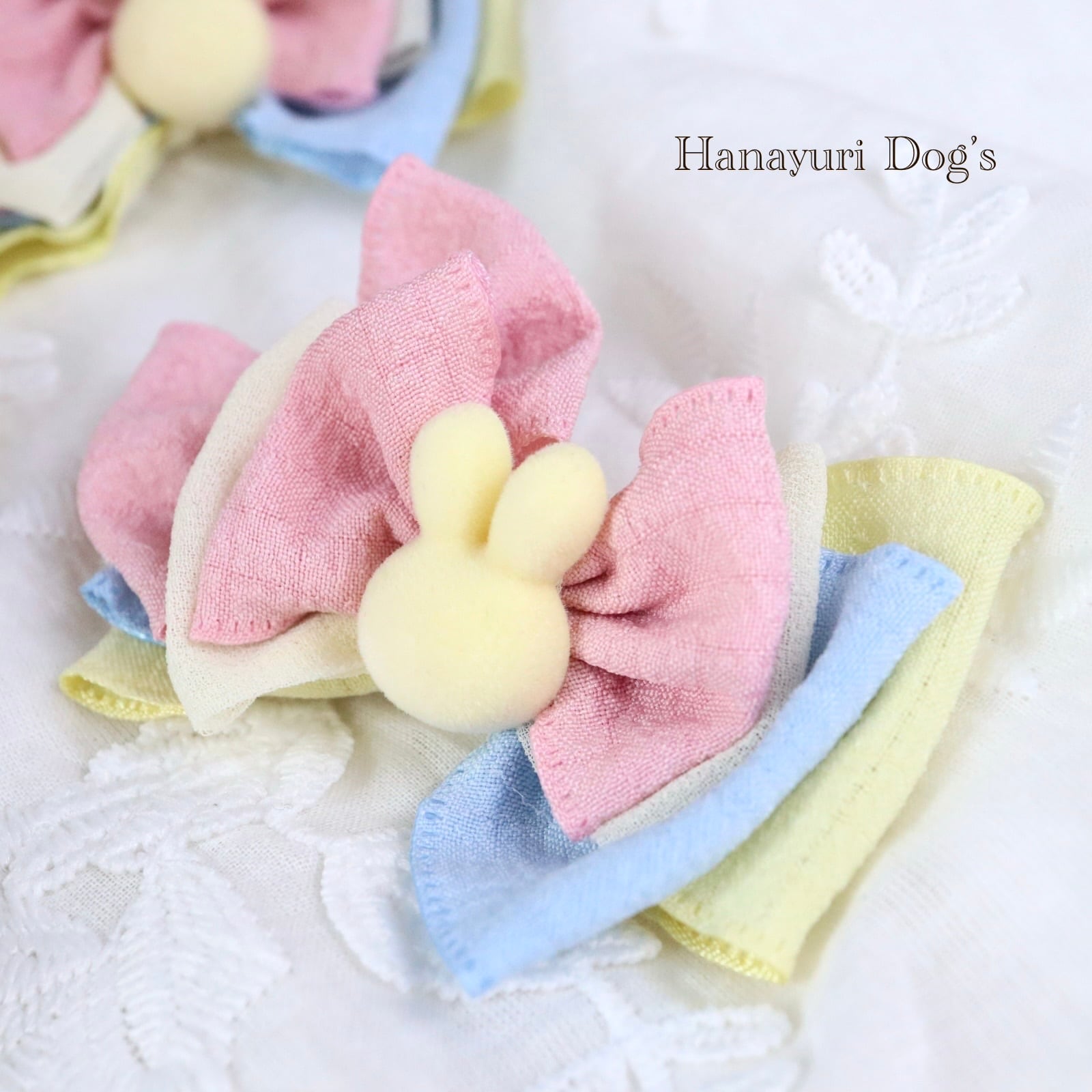 黄色いうさぎ カラフル 犬バレッタ キッズ・子供リボン ペット ぬいぐるみ イースター ヘアアクセサリー 髪飾り 誕生日 記念日 プレゼント オフ会 うちの子記念日 イベント 撮影