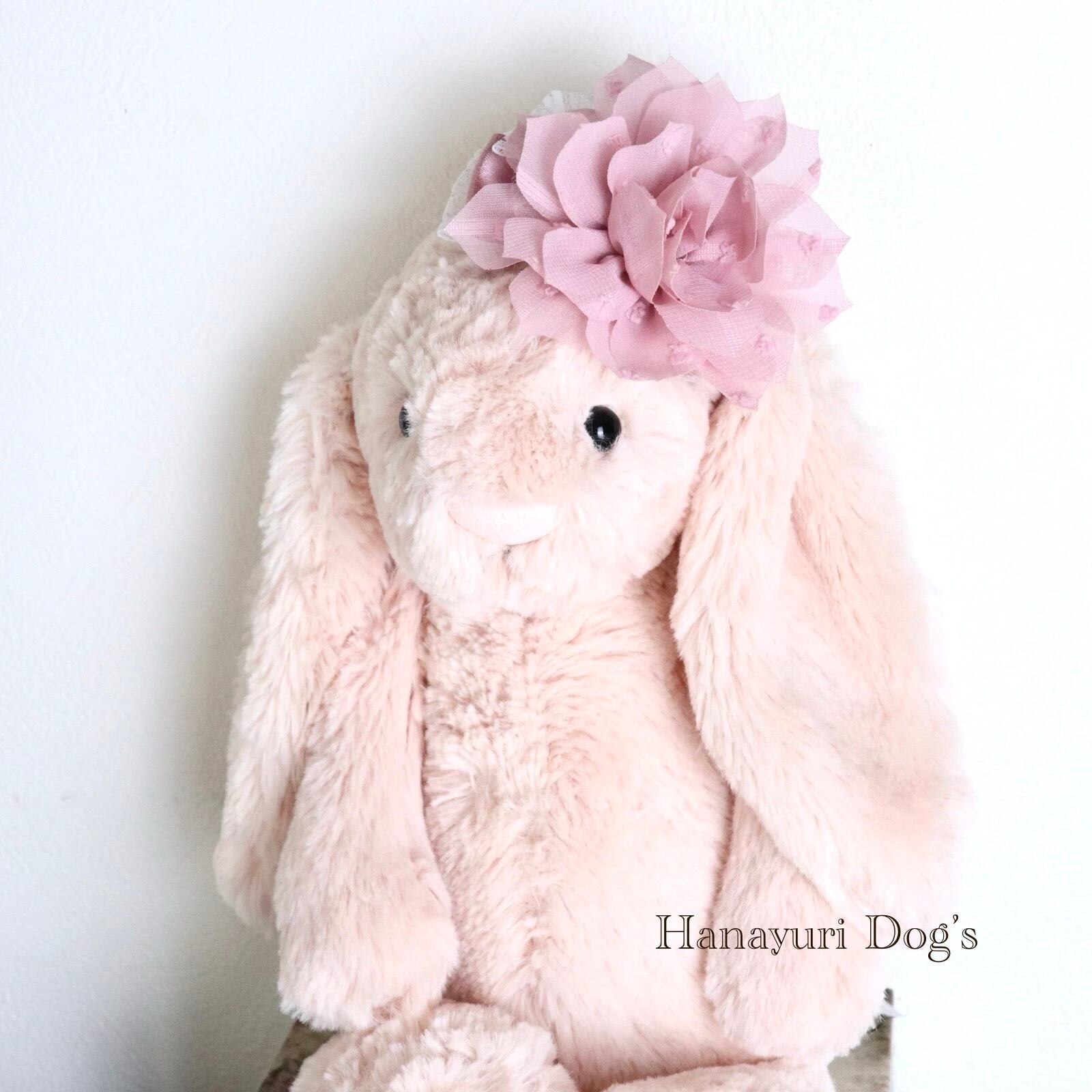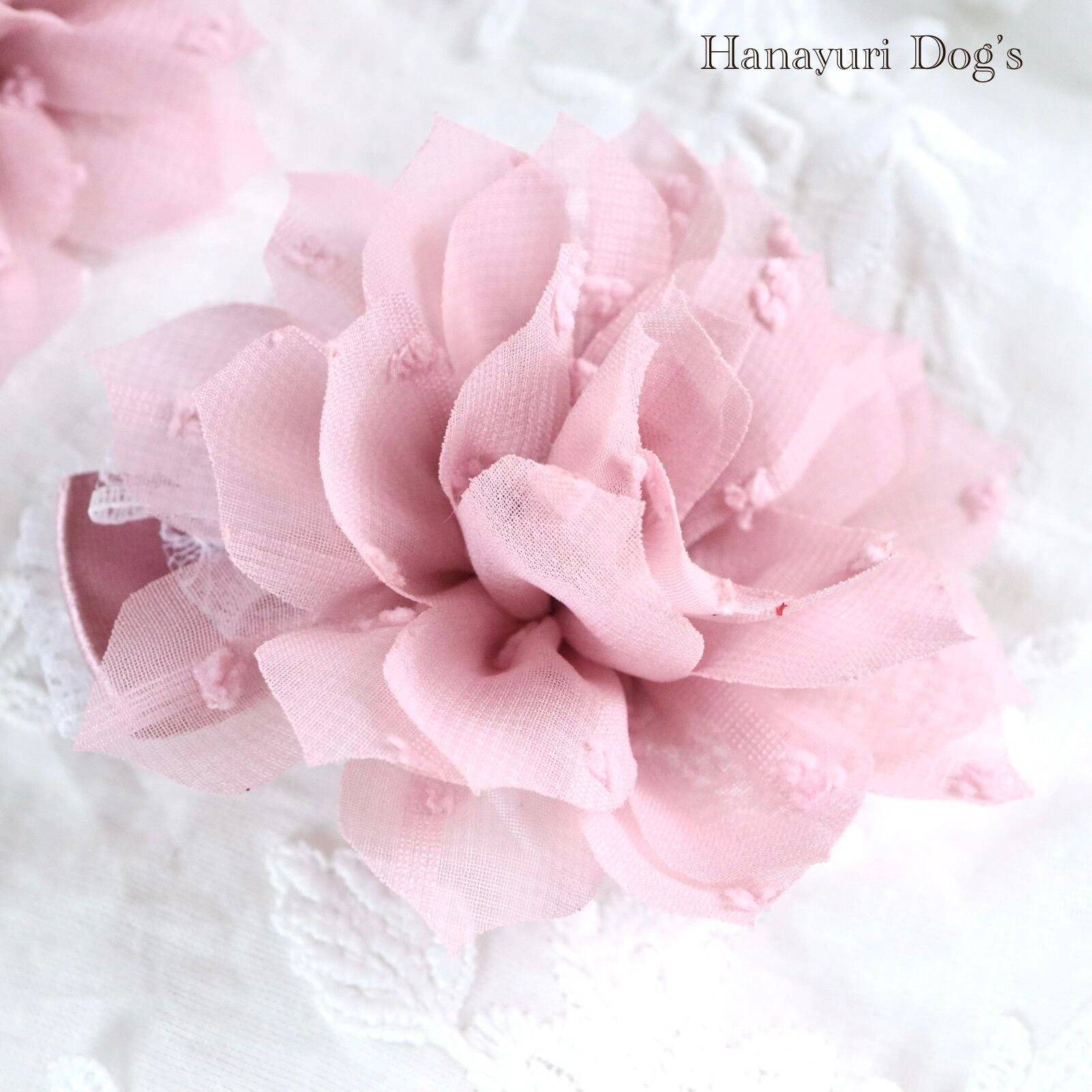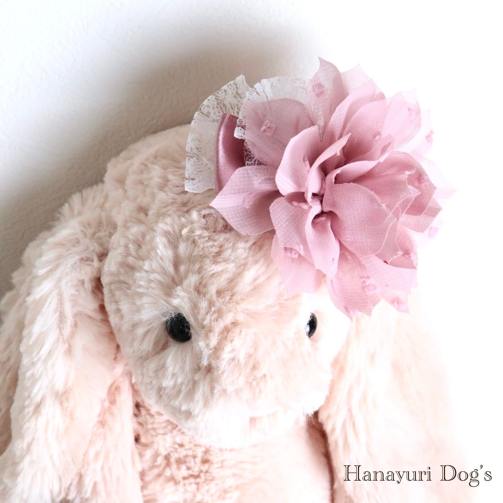 ベージュピンク 布花 犬バレッタ キッズ・子供リボン ペット ぬいぐるみ ヘアアクセサリー 髪飾り 誕生日 記念日 プレゼント オフ会 うちの子記念日 イベント 撮影
