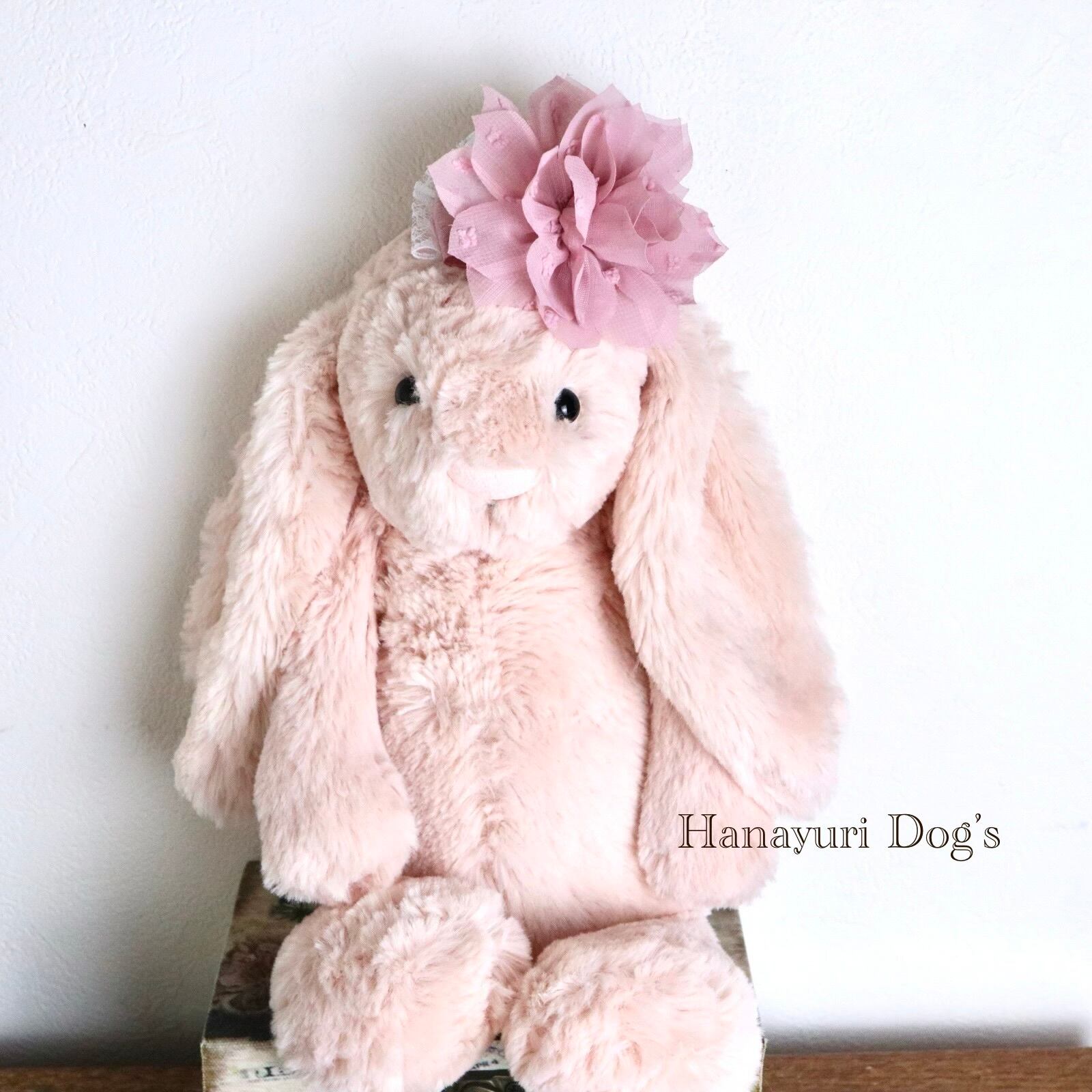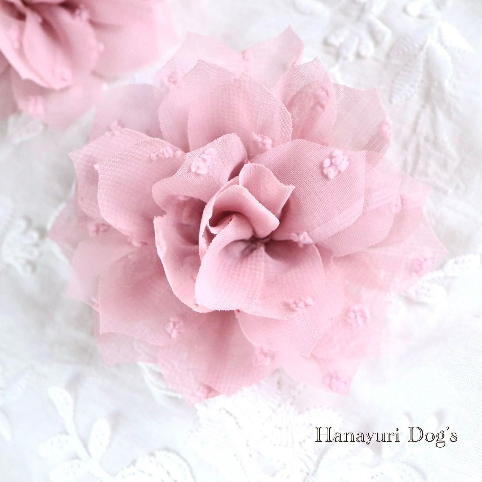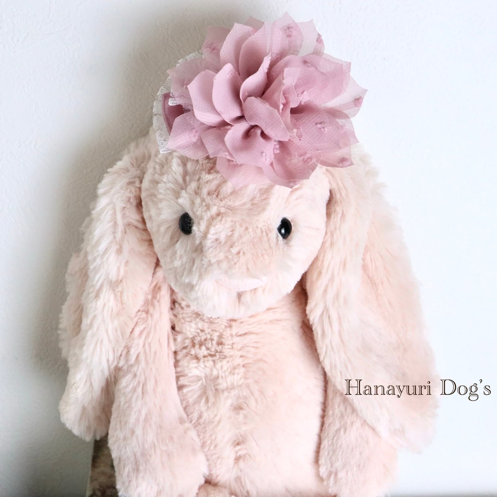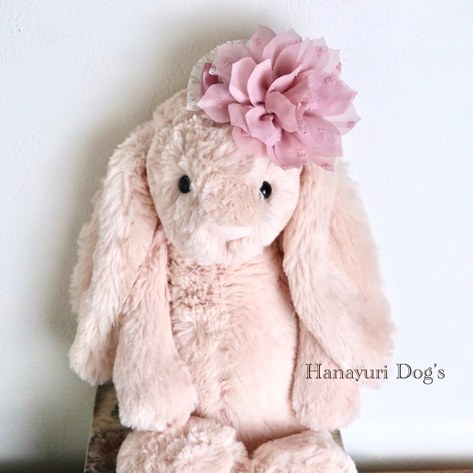 ベージュピンク 布花 犬バレッタ キッズ・子供リボン ペット ぬいぐるみ ヘアアクセサリー 髪飾り 誕生日 記念日 プレゼント オフ会 うちの子記念日 イベント 撮影