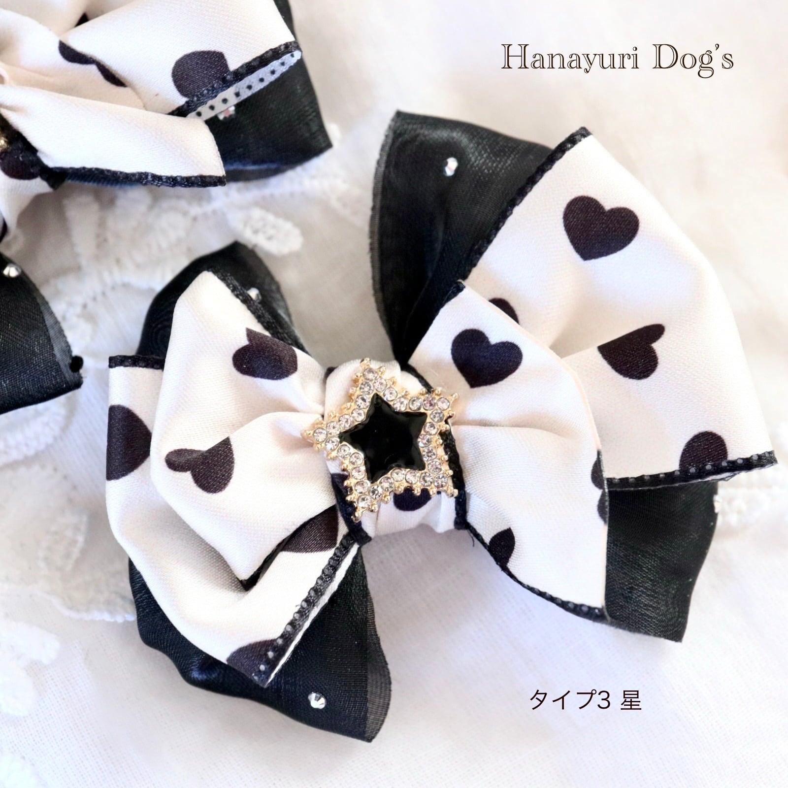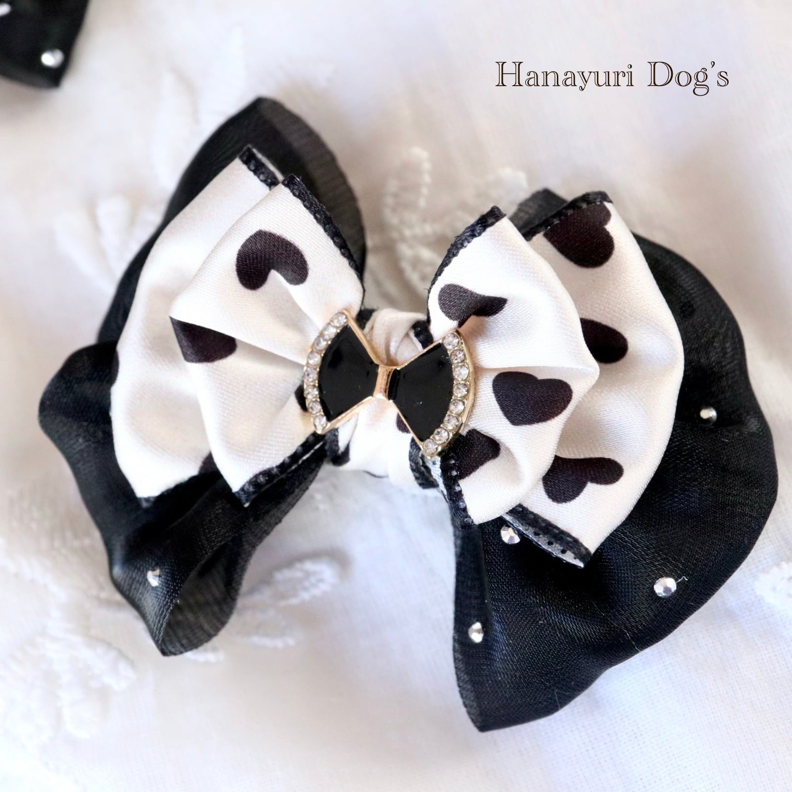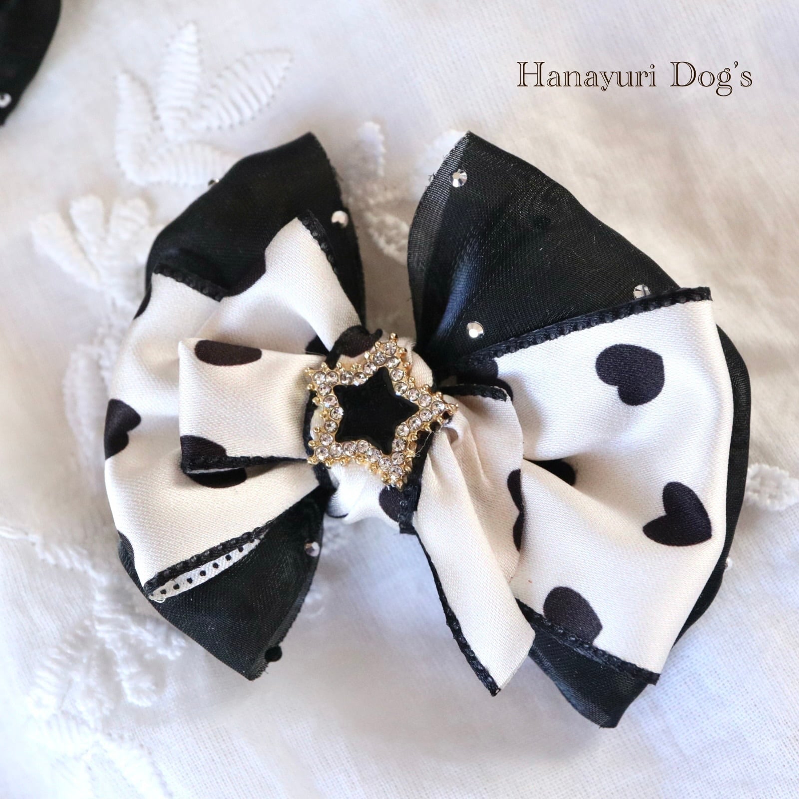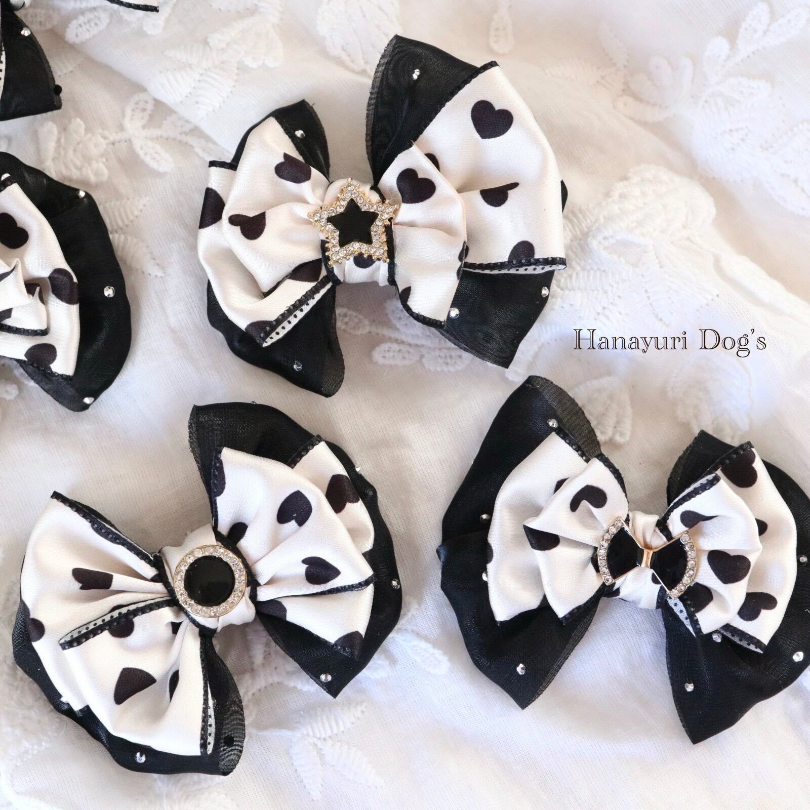 モノトーン ブラックハートとラインストーン 3種1P 犬バレッタ キッズ・子供リボン ペット ぬいぐるみ ヘアアクセサリー 髪飾り 誕生日 記念日 プレゼント オフ会 うちの子記念日 イベント 撮影