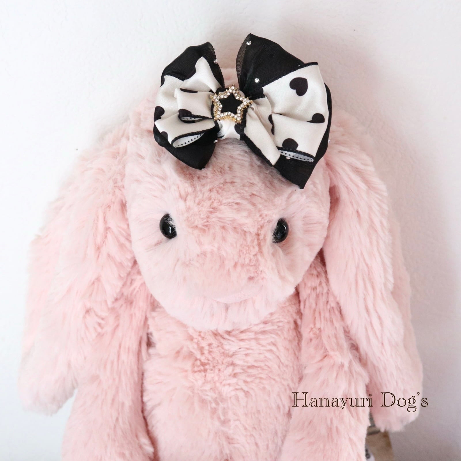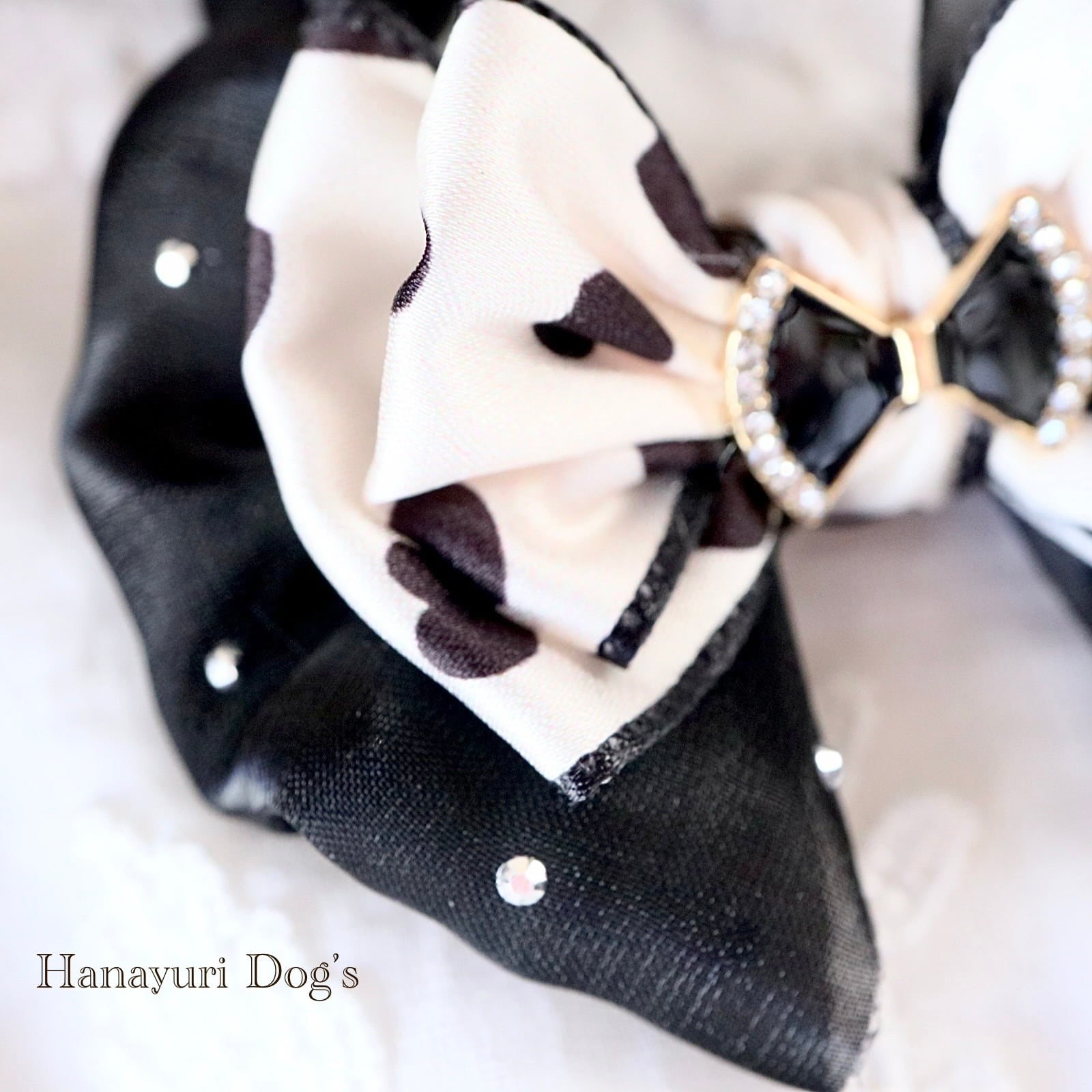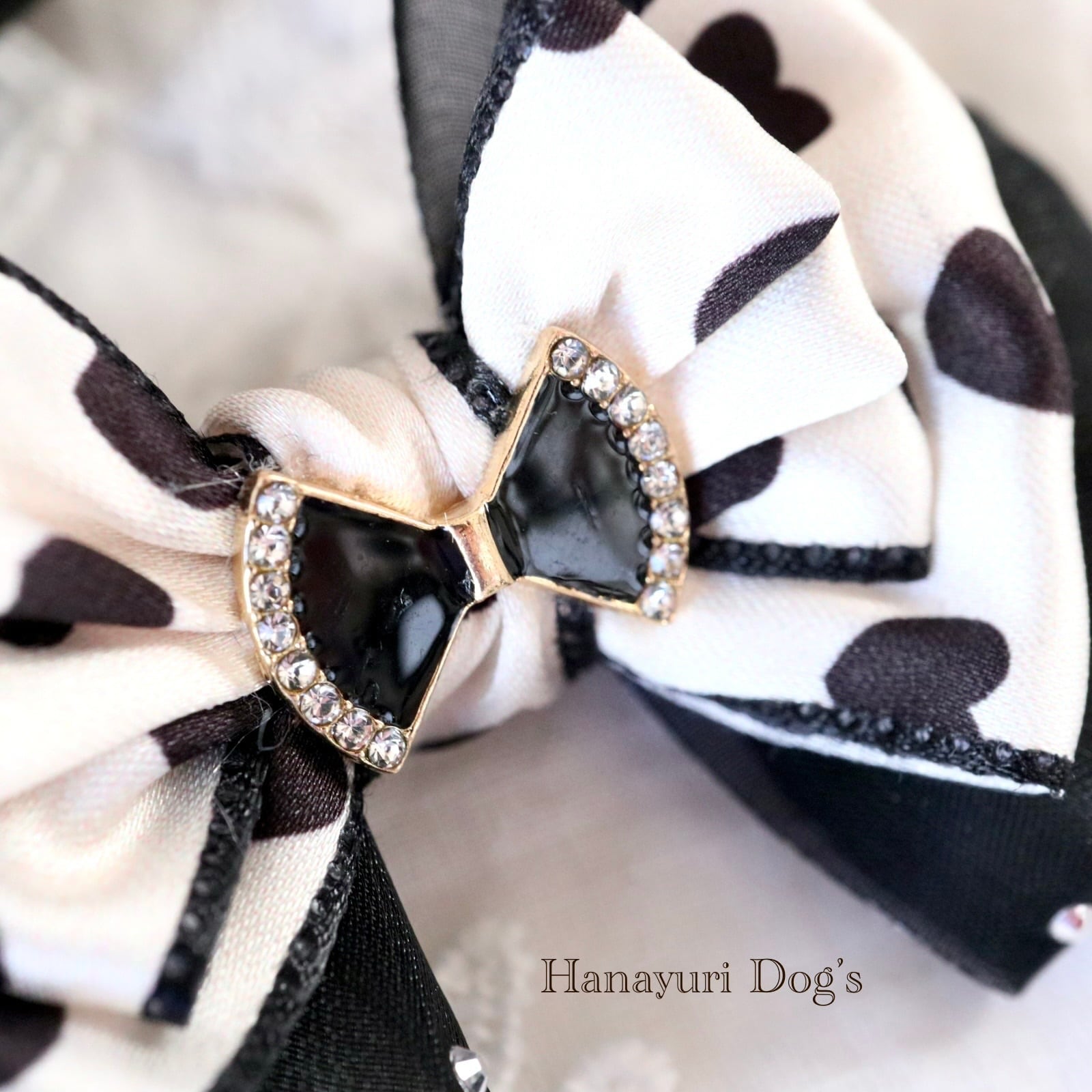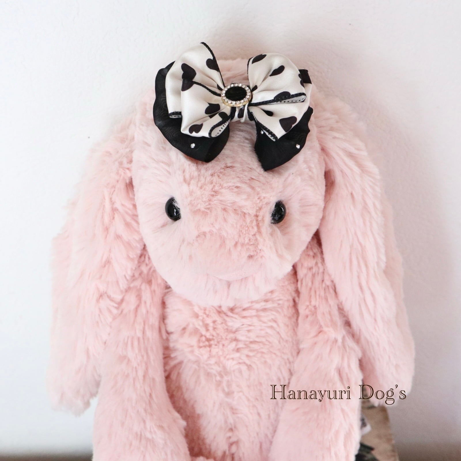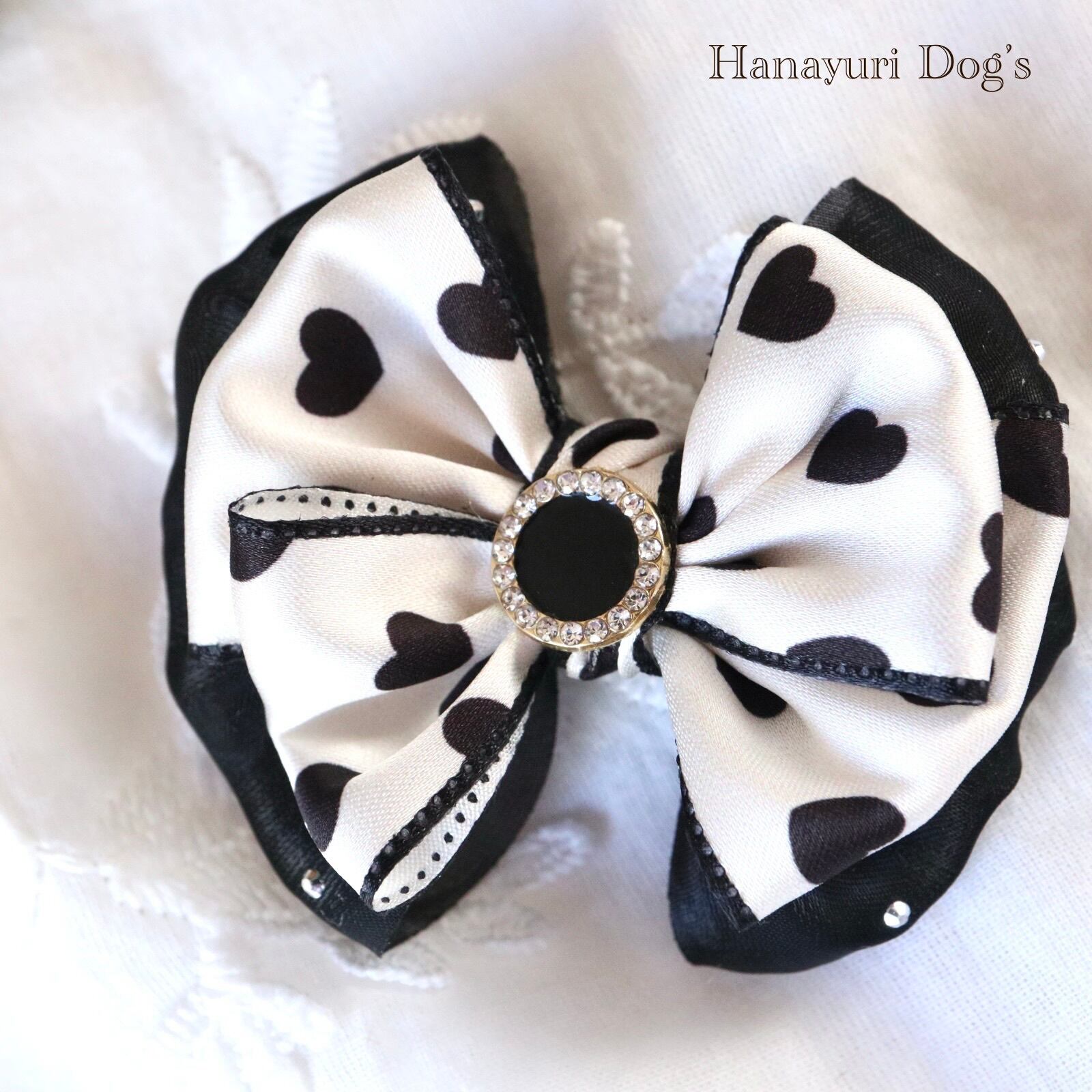 モノトーン ブラックハートとラインストーン 3種1P 犬バレッタ キッズ・子供リボン ペット ぬいぐるみ ヘアアクセサリー 髪飾り 誕生日 記念日 プレゼント オフ会 うちの子記念日 イベント 撮影