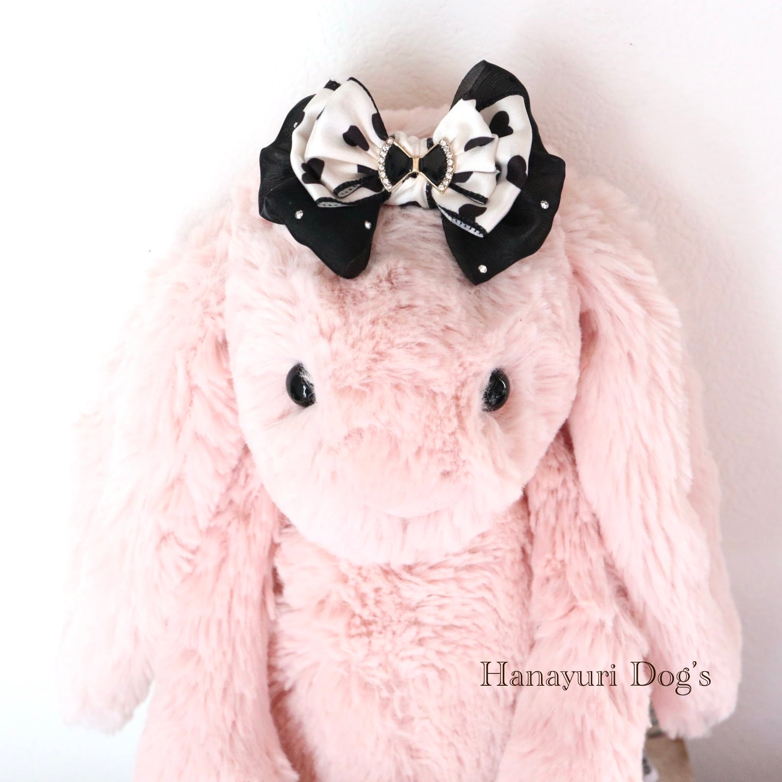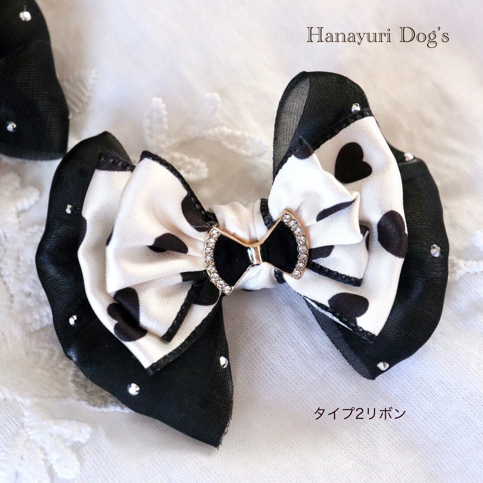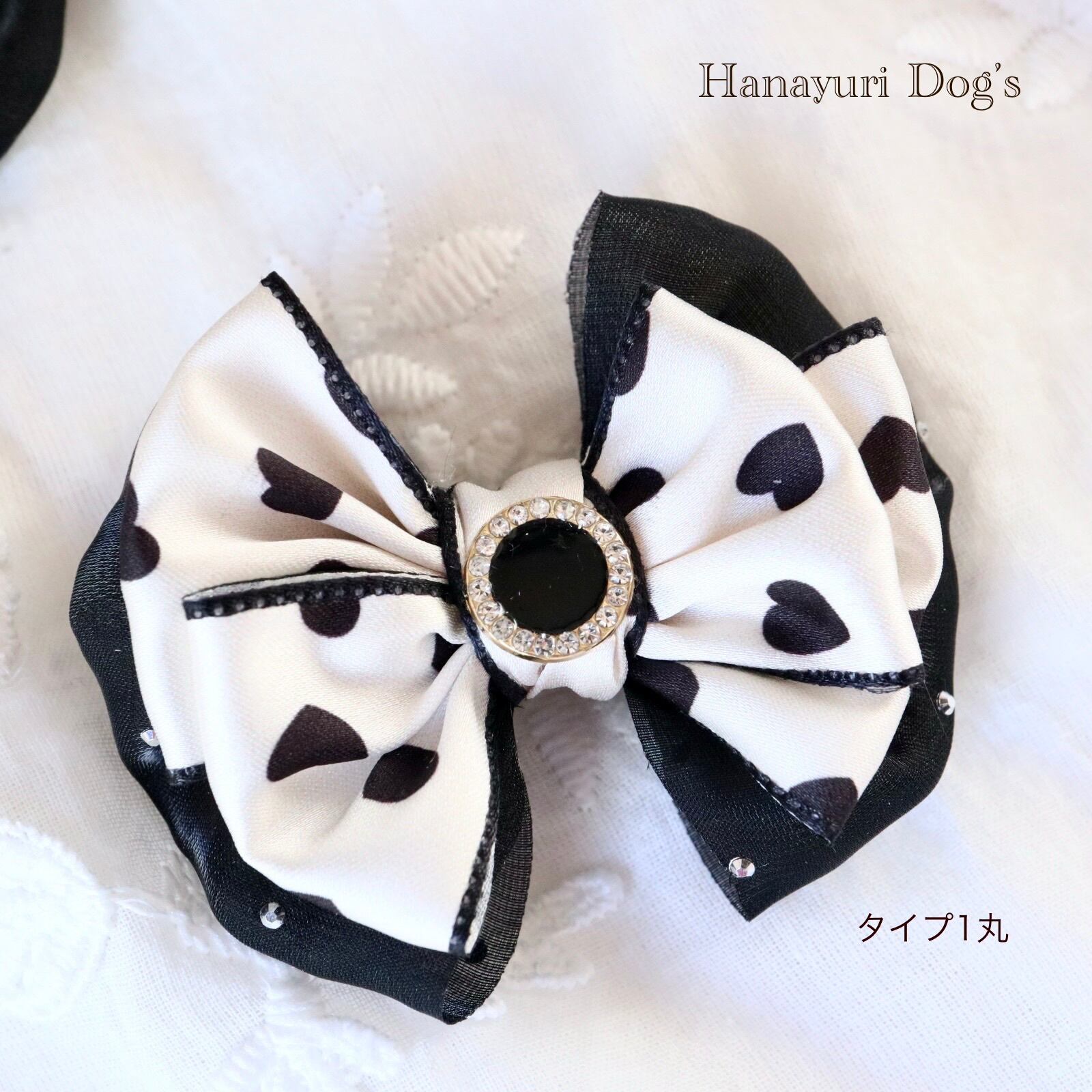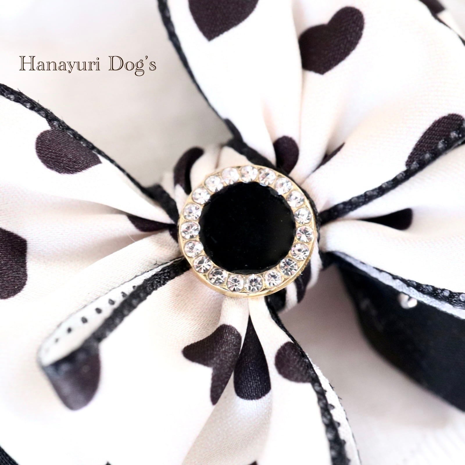 モノトーン ブラックハートとラインストーン 3種1P 犬バレッタ キッズ・子供リボン ペット ぬいぐるみ ヘアアクセサリー 髪飾り 誕生日 記念日 プレゼント オフ会 うちの子記念日 イベント 撮影