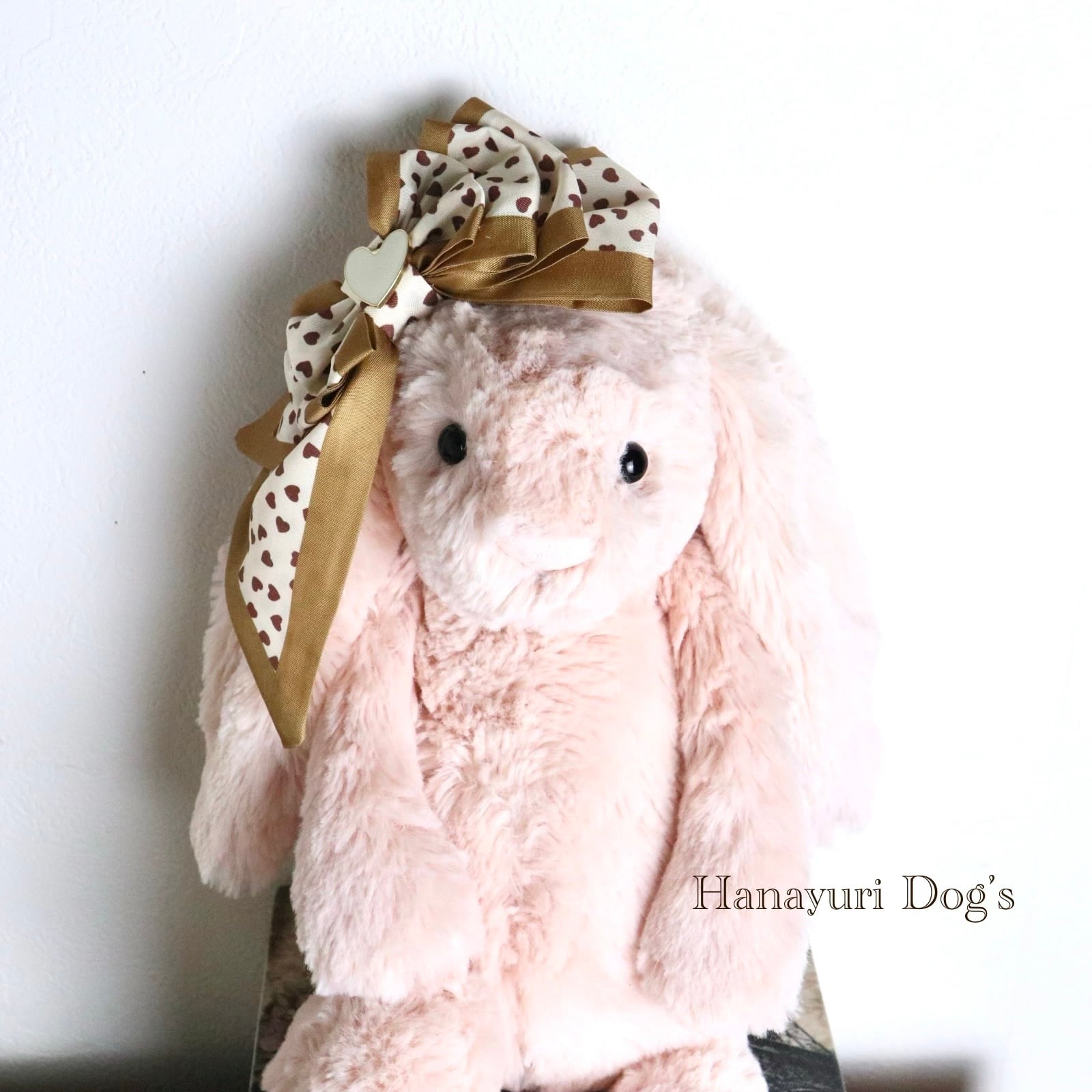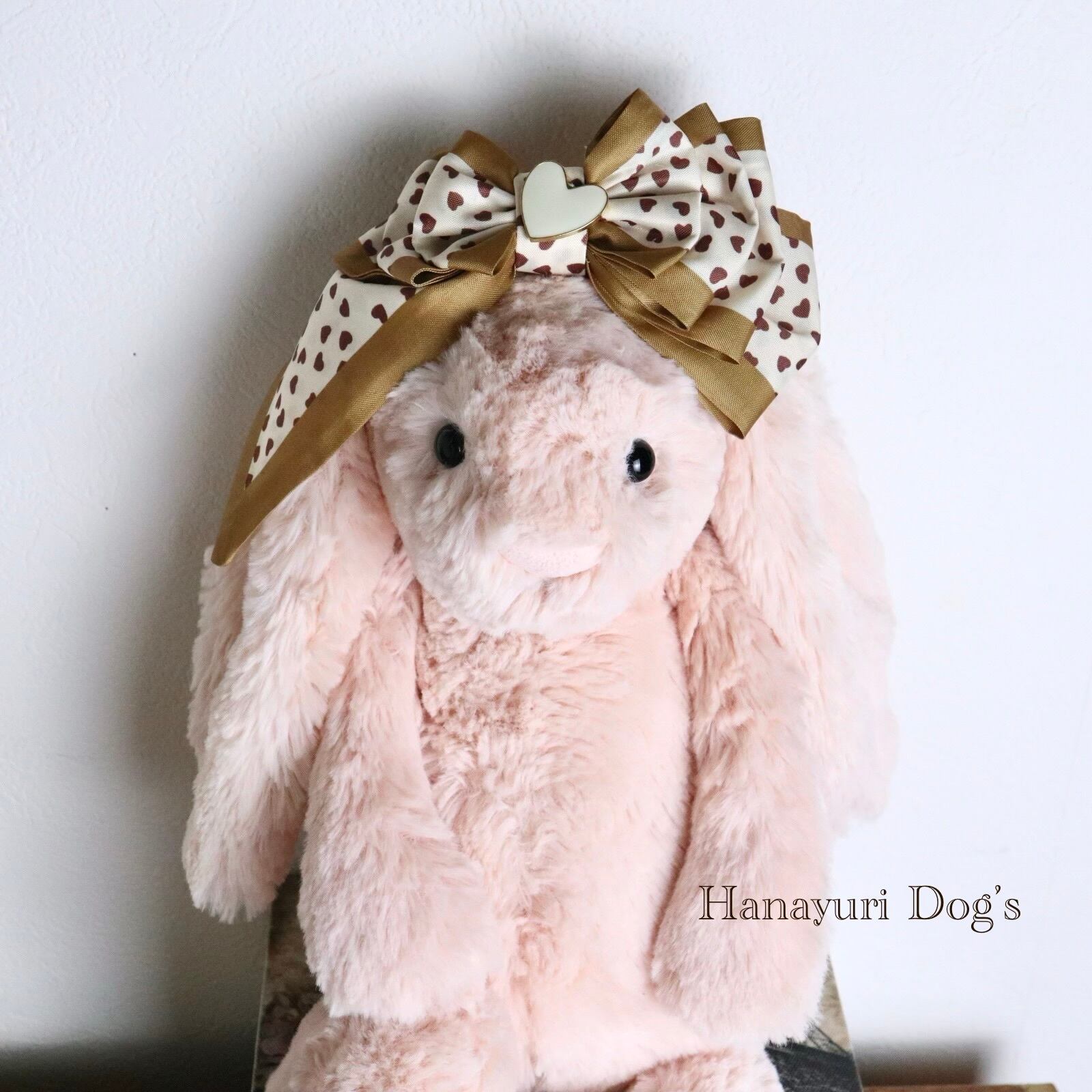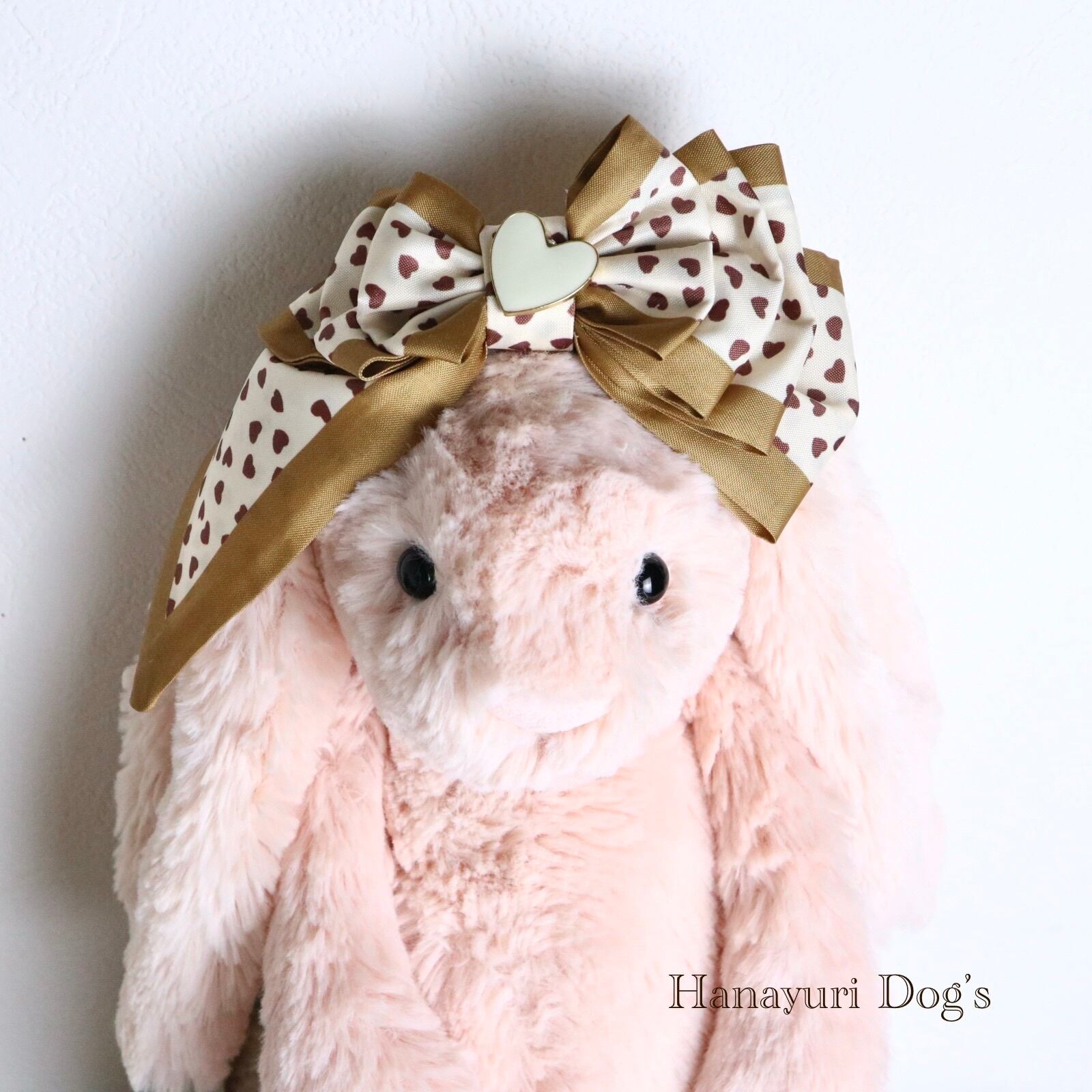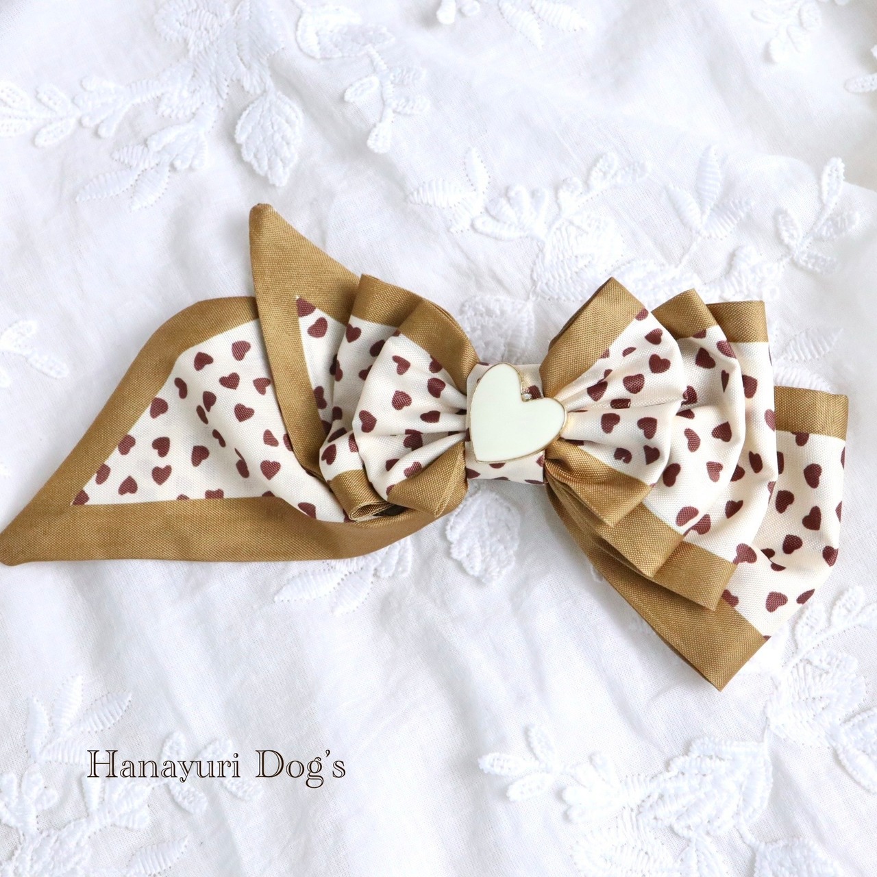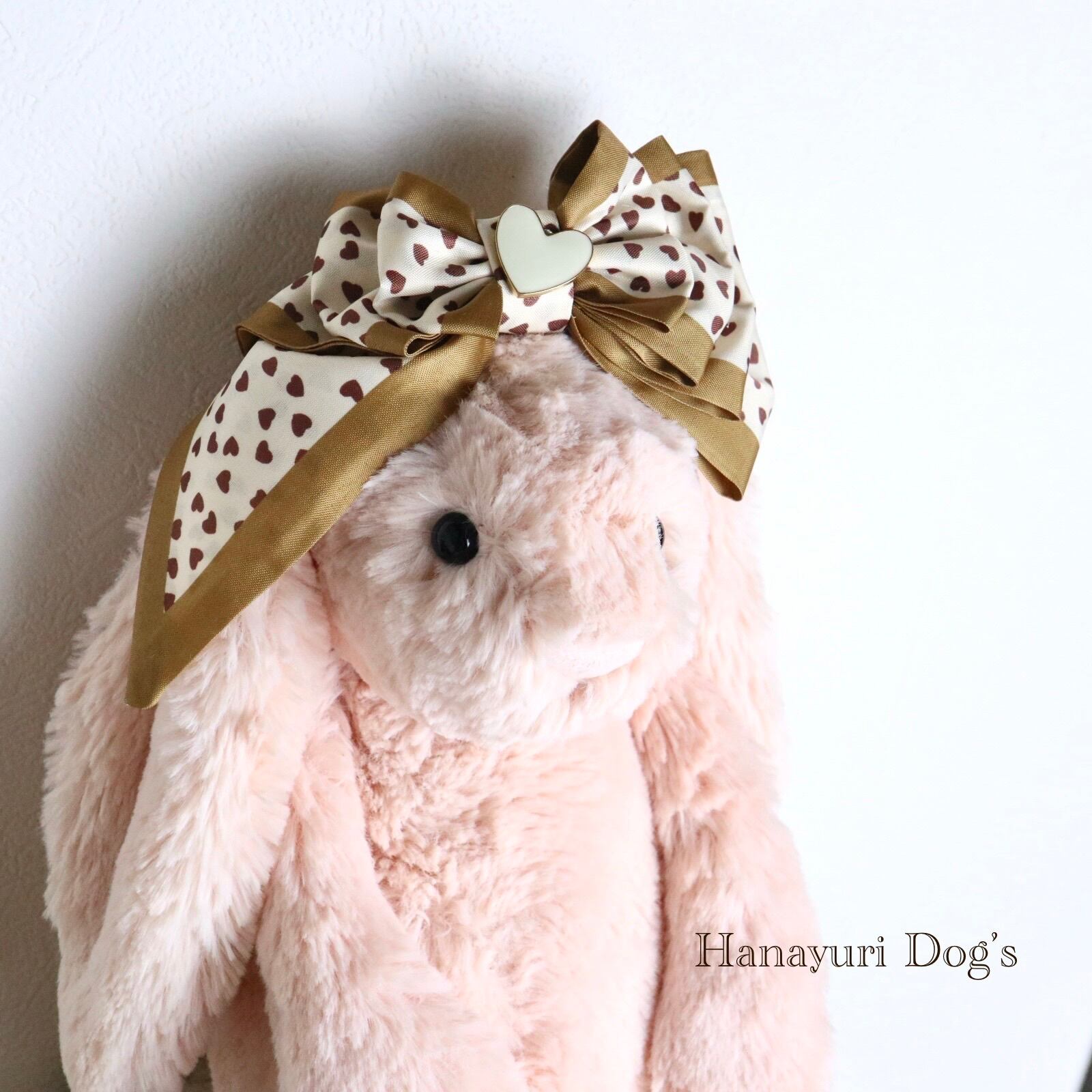昭和レトロファッション スカーフリボン ハート 犬バレッタ キッズ・子供リボン ペット ぬいぐるみ ヘアアクセサリー 髪飾り 誕生日 記念日 プレゼント オフ会 うちの子記念日 イベント 撮影
