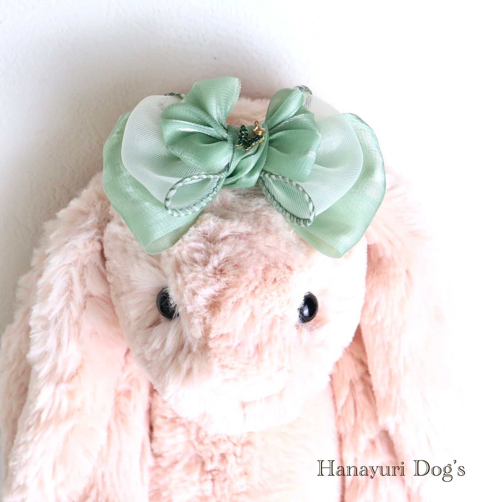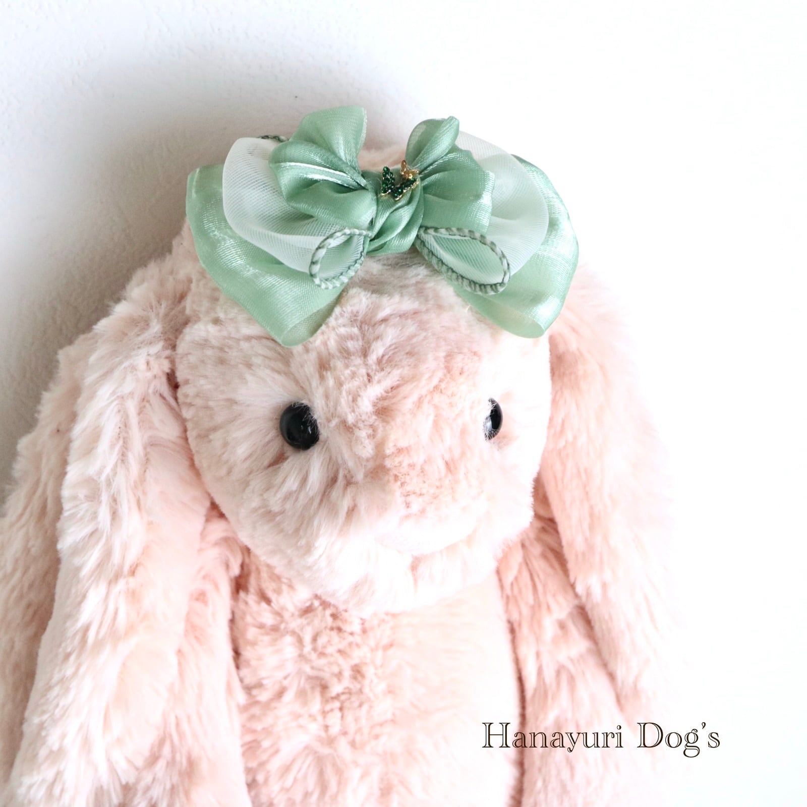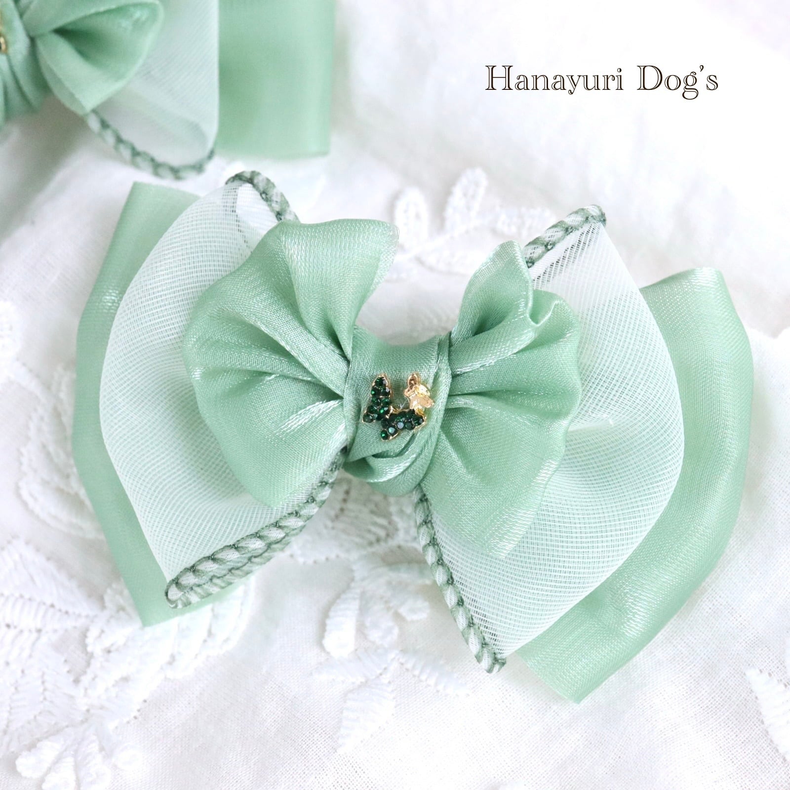 グリーングラデーション 蝶ビジュー 犬バレッタ キッズ・子供リボン ペット ぬいぐるみ ヘアアクセサリー 髪飾り 誕生日 記念日 プレゼント オフ会 うちの子記念日 イベント 撮影