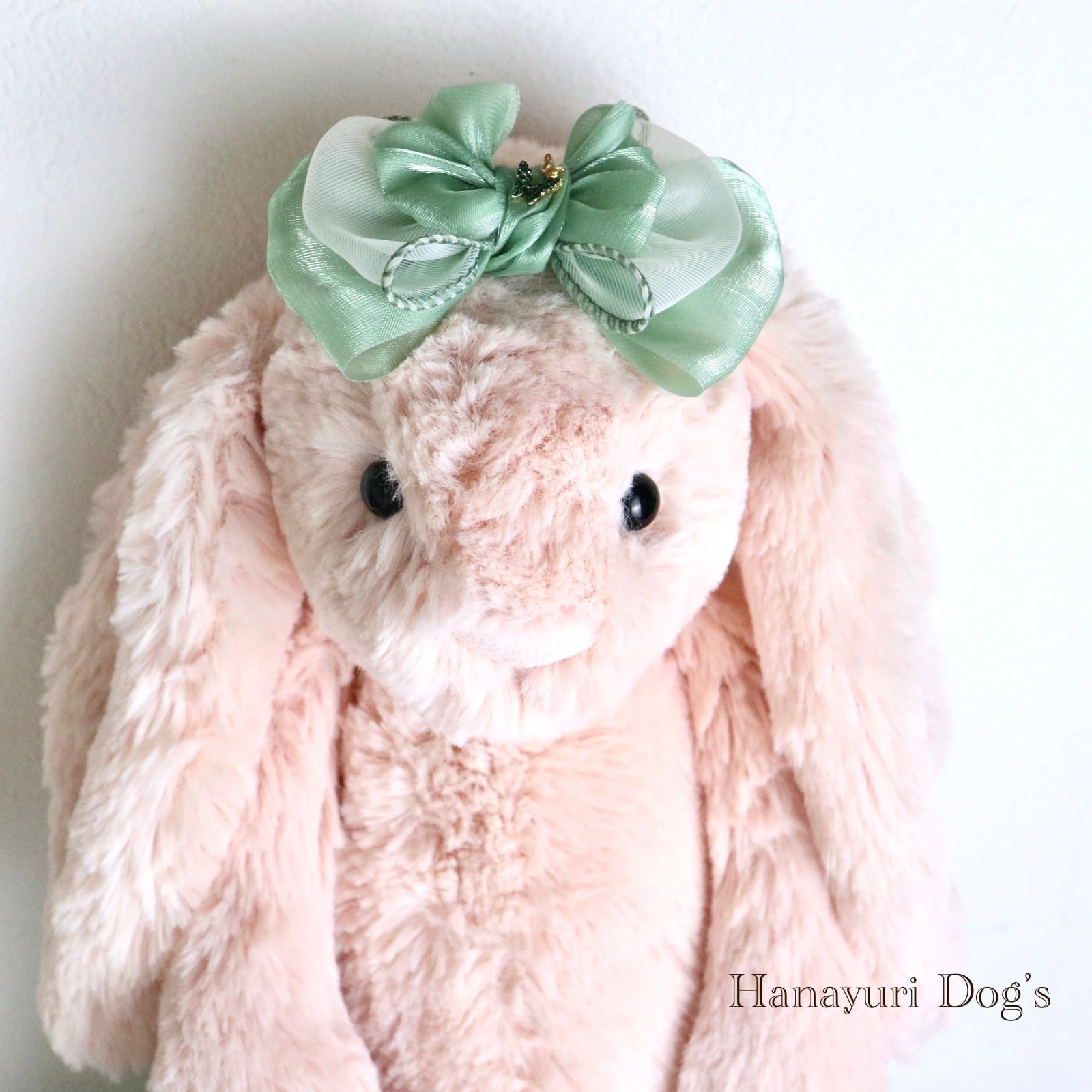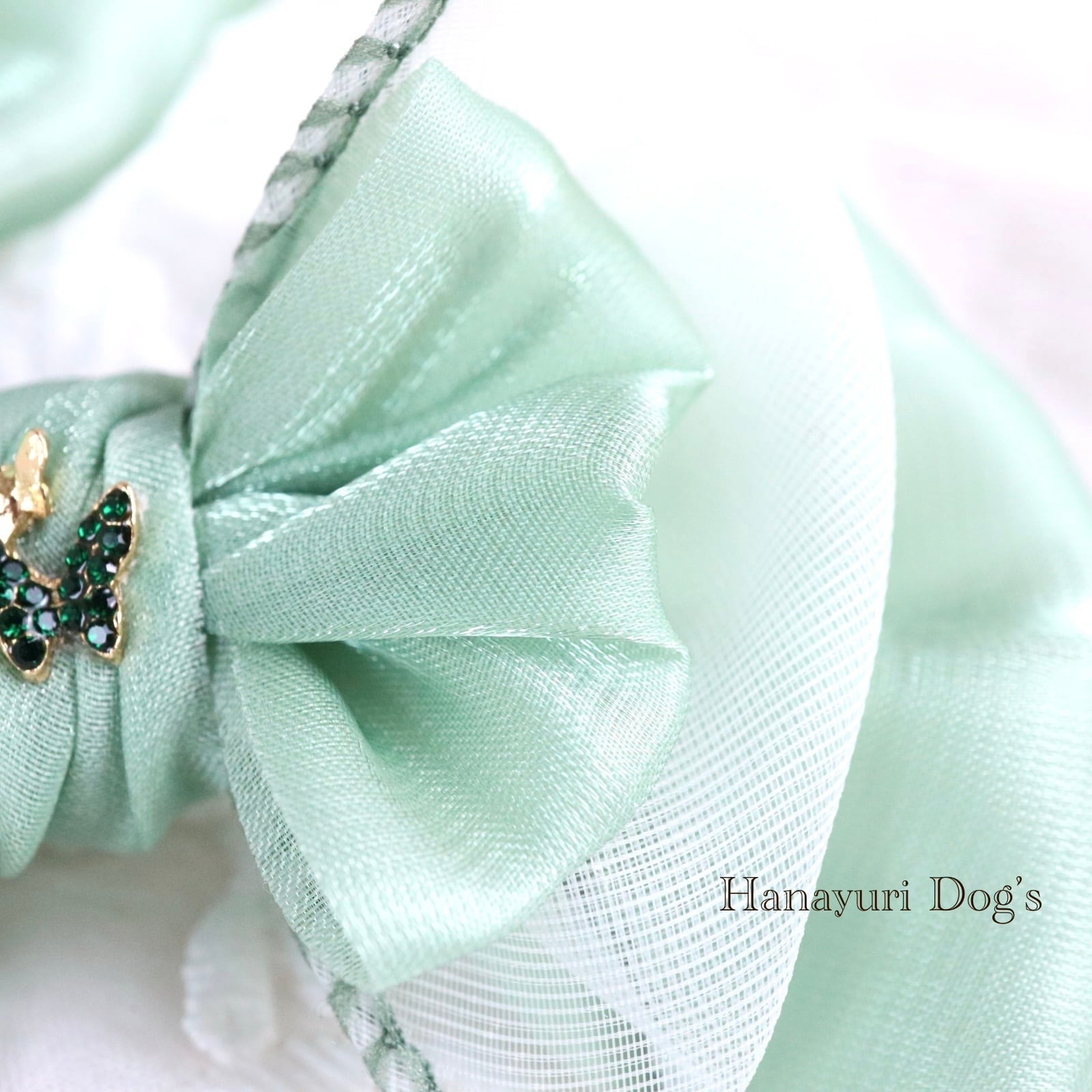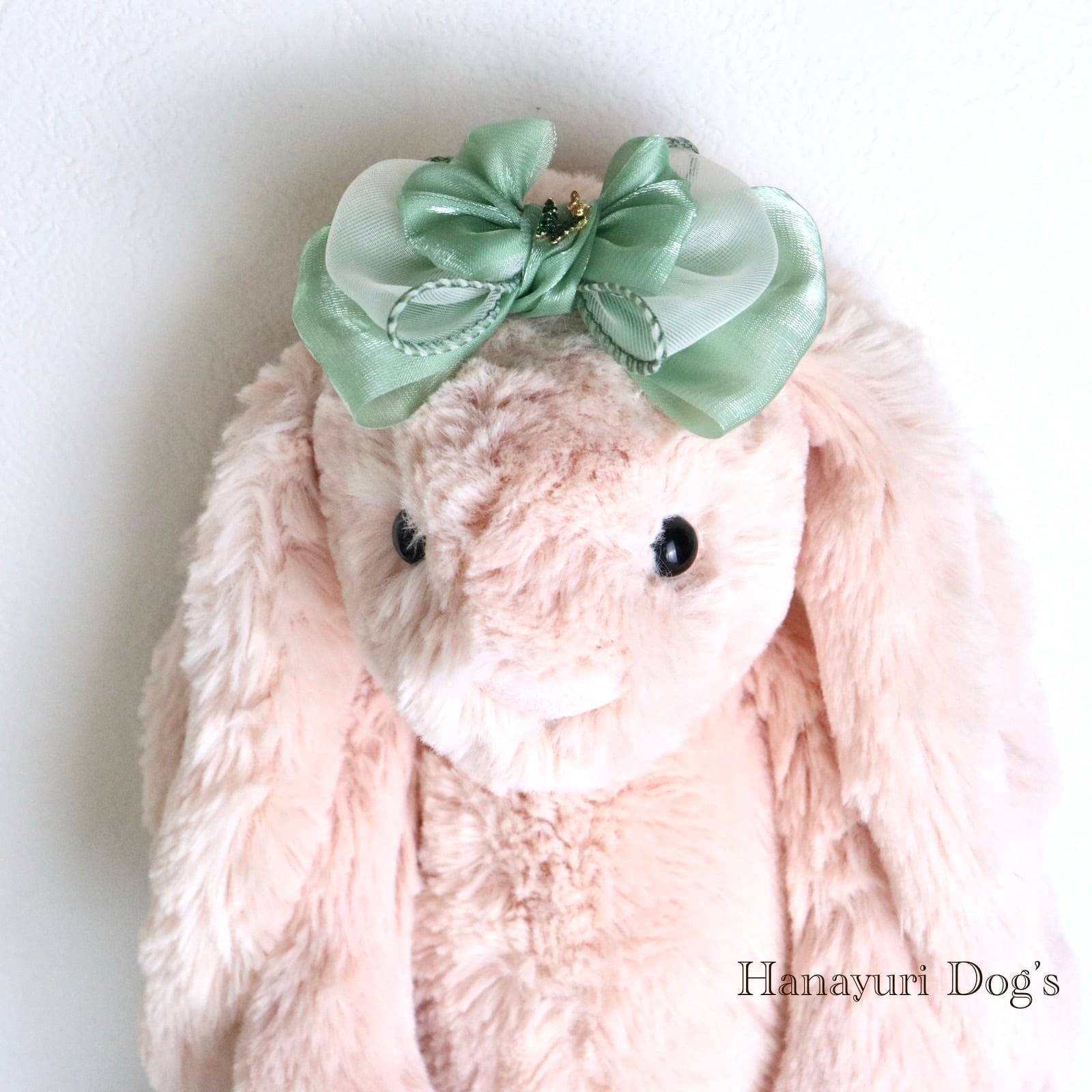 グリーングラデーション 蝶ビジュー 犬バレッタ キッズ・子供リボン ペット ぬいぐるみ ヘアアクセサリー 髪飾り 誕生日 記念日 プレゼント オフ会 うちの子記念日 イベント 撮影