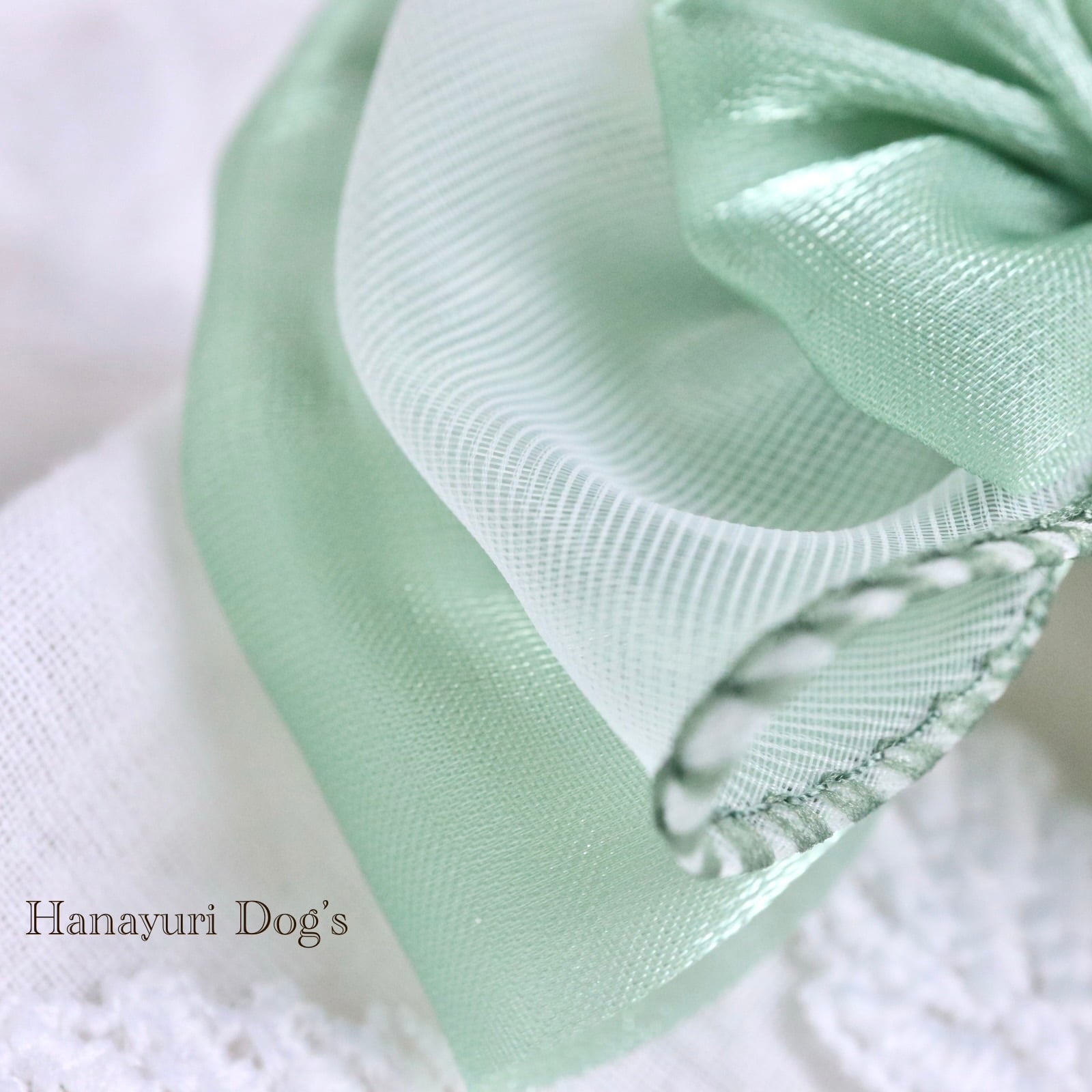 うっとりする光沢のオーガンジーとごく淡いグリーンのチュール。