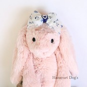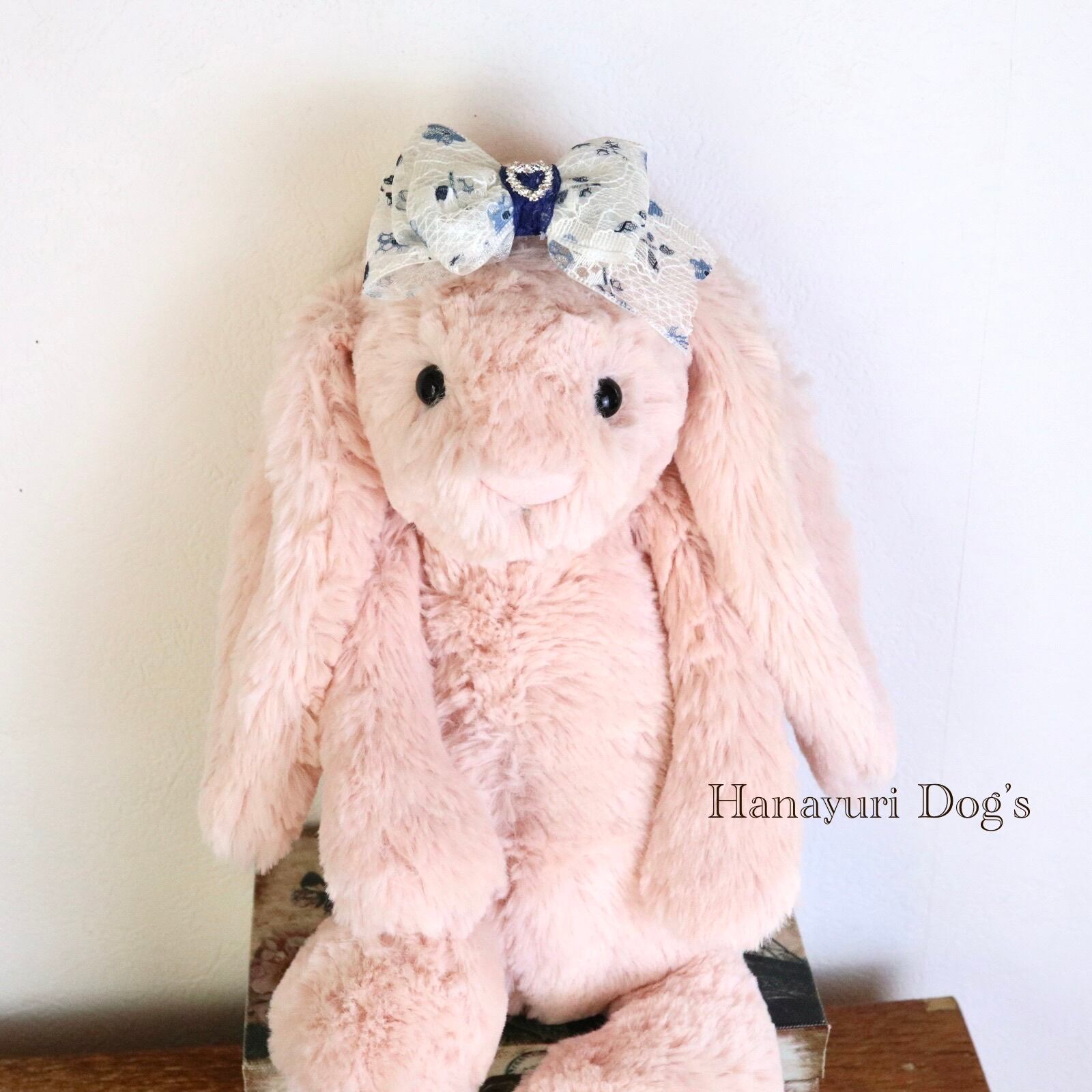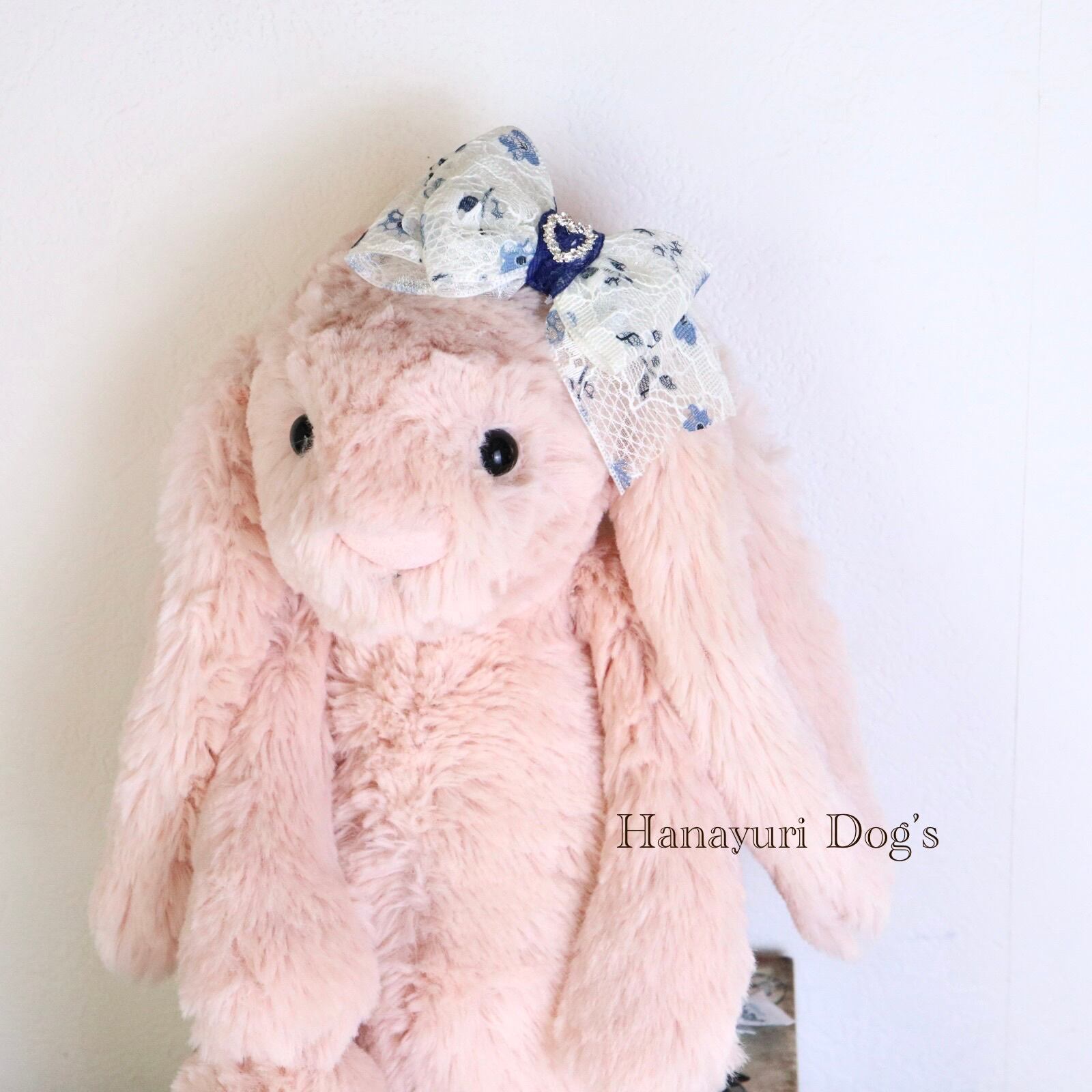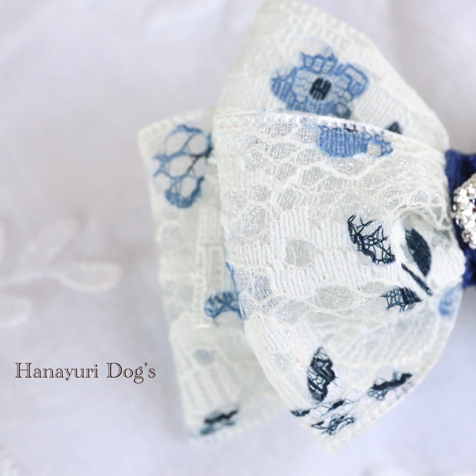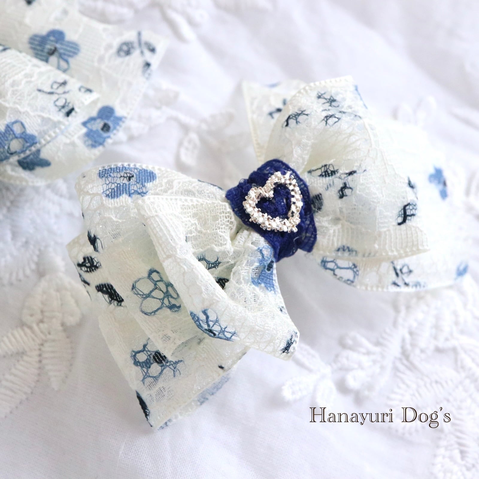 二枚重ねリボン 青い花 ハートビジュー 犬バレッタ キッズ・子供リボン ペット ぬいぐるみ ヘアアクセサリー 髪飾り 誕生日 記念日 プレゼント オフ会 うちの子記念日 イベント 撮影