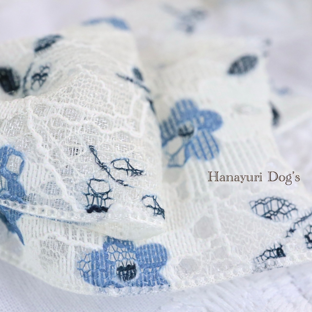 オーガンジーとレースの二枚重ねのブルーの花柄リボンです。