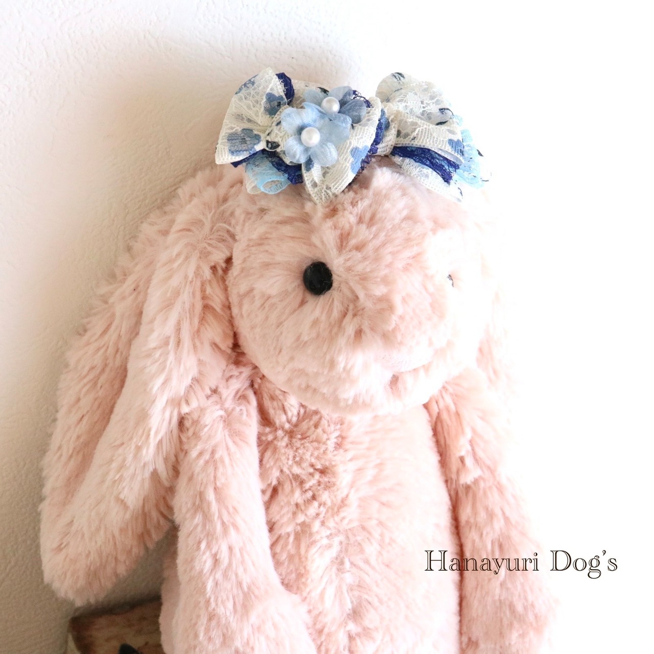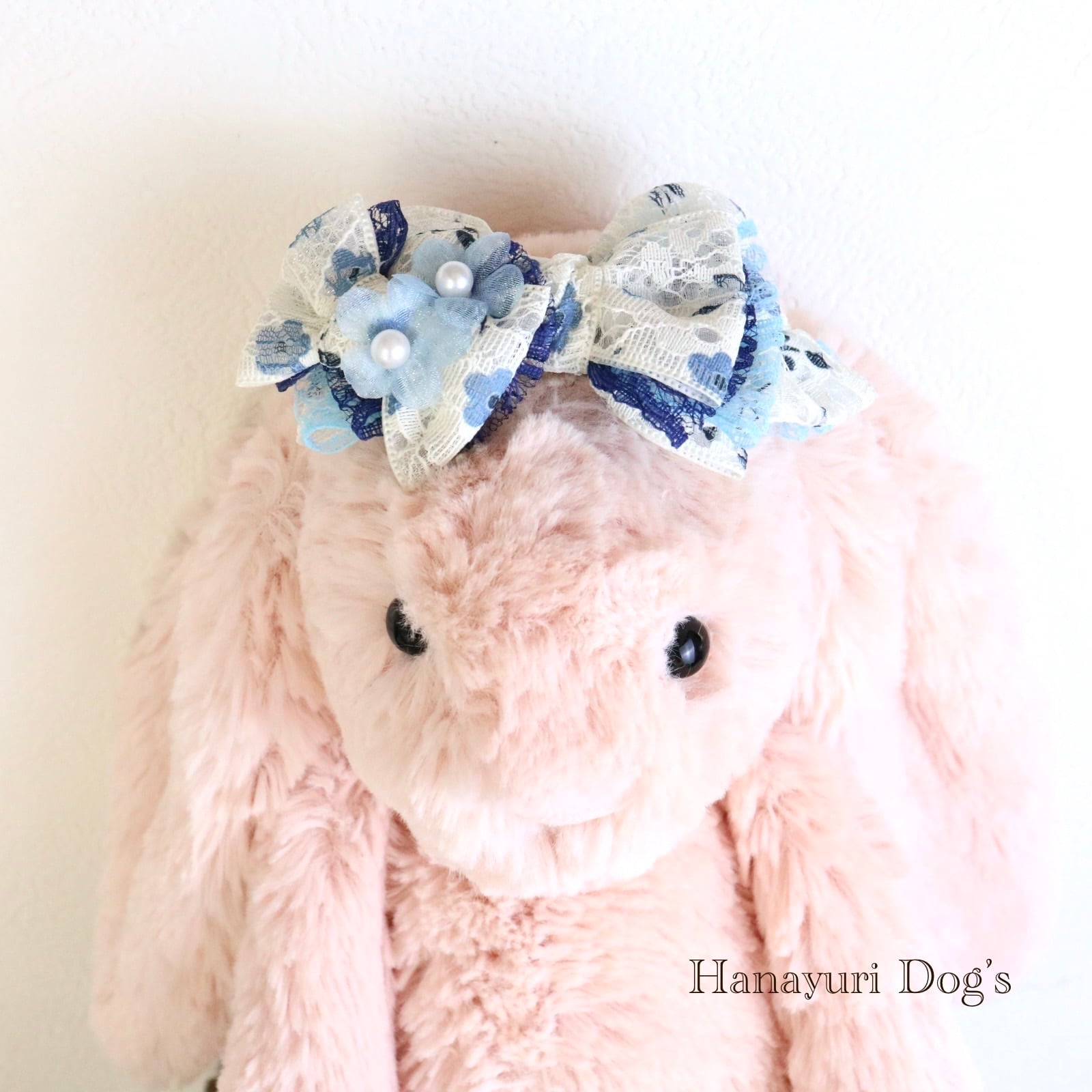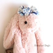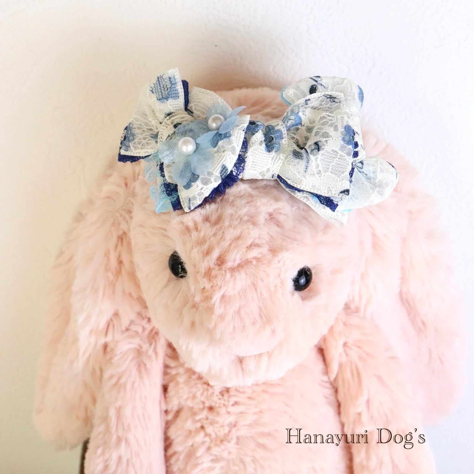 二枚重ねリボン 青い花 パールの花2 犬バレッタ キッズ・子供リボン ペット ぬいぐるみ ヘアアクセサリー 髪飾り 誕生日 記念日 プレゼント オフ会 うちの子記念日 イベント 撮影