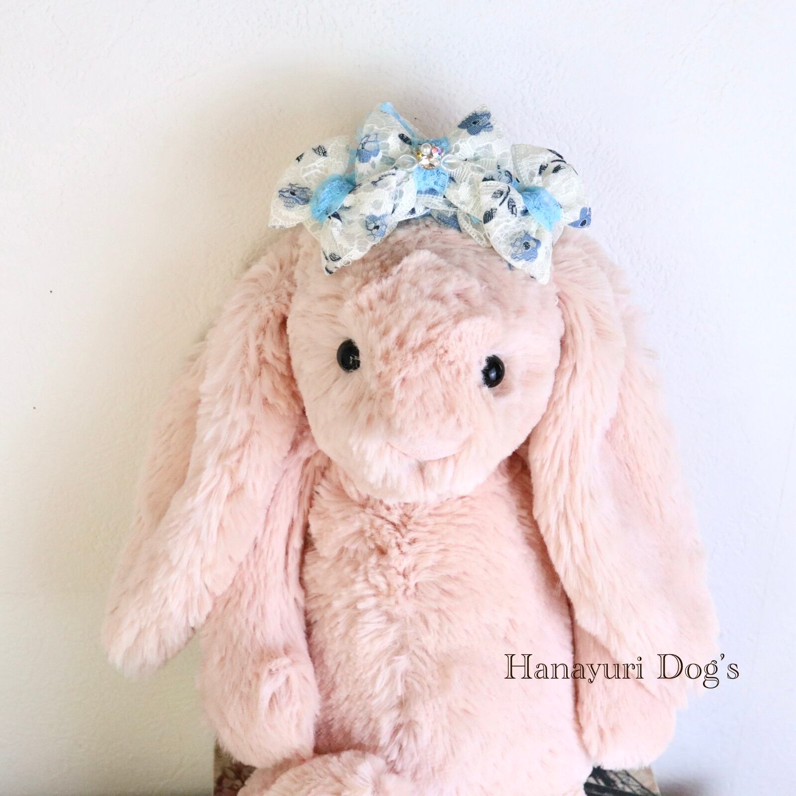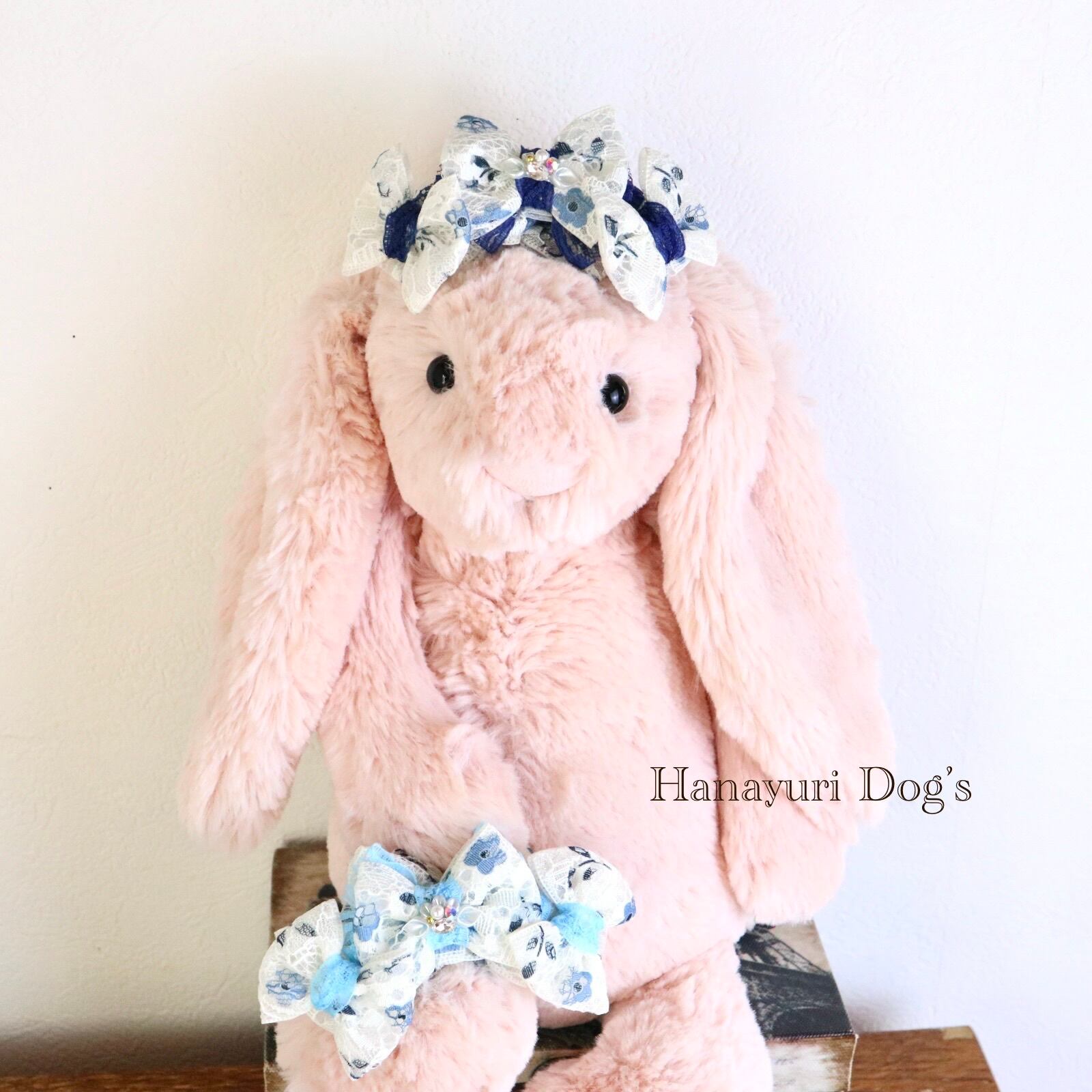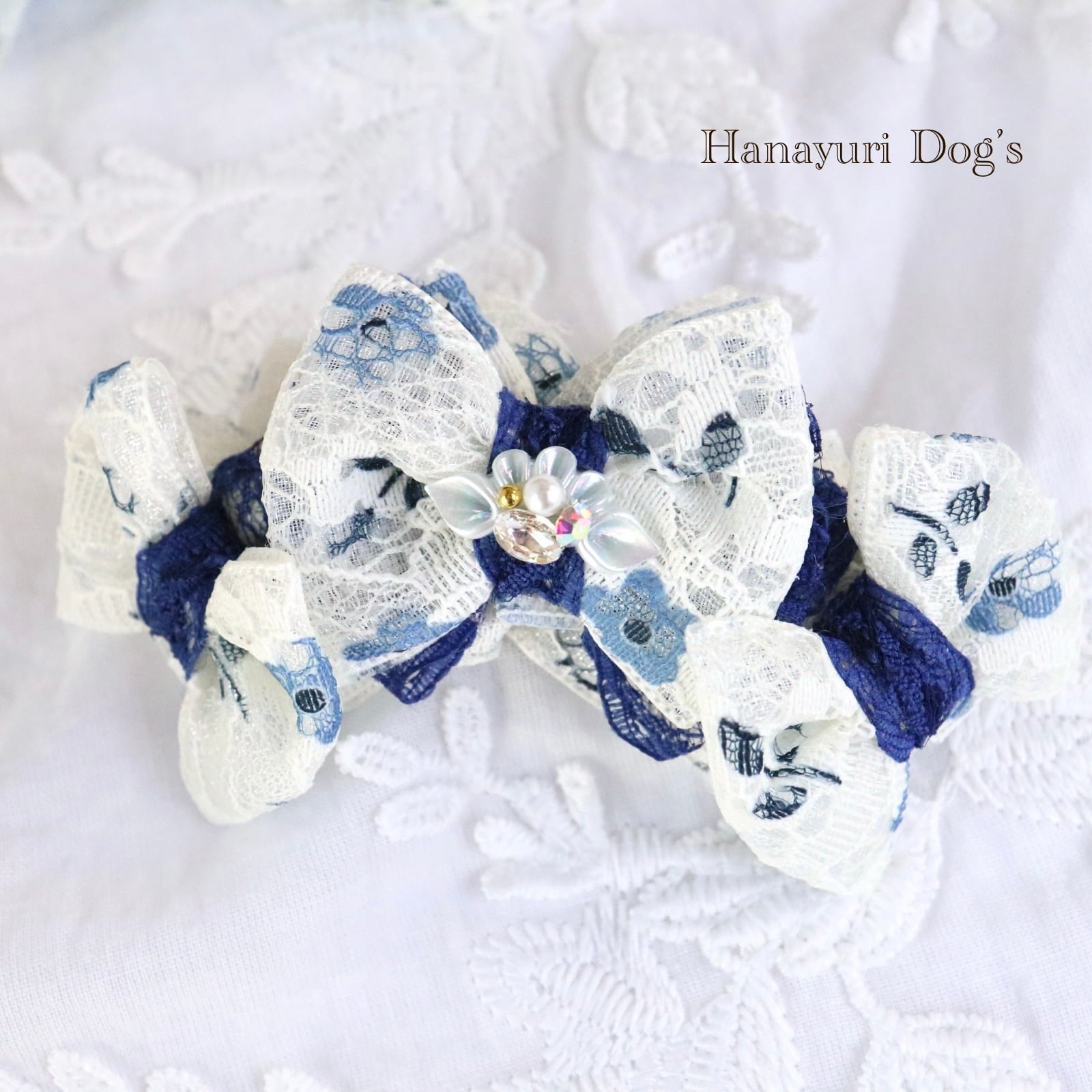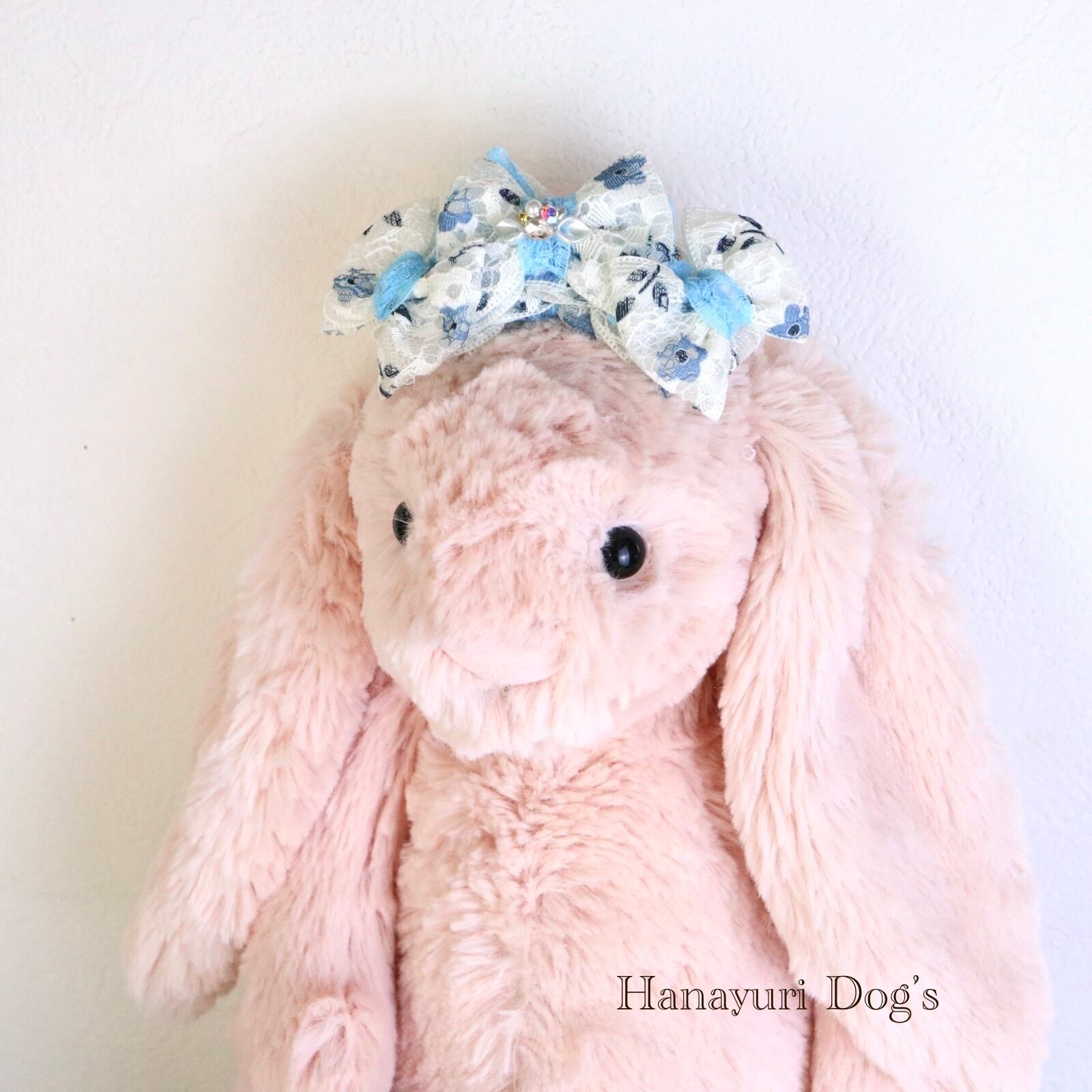 二枚重ねリボン 青い花 2色1P パール貝ビジュー 犬バレッタ キッズ・子供リボン ペット ぬいぐるみ ヘアアクセサリー 髪飾り 誕生日 記念日 プレゼント オフ会 うちの子記念日 イベント 撮影