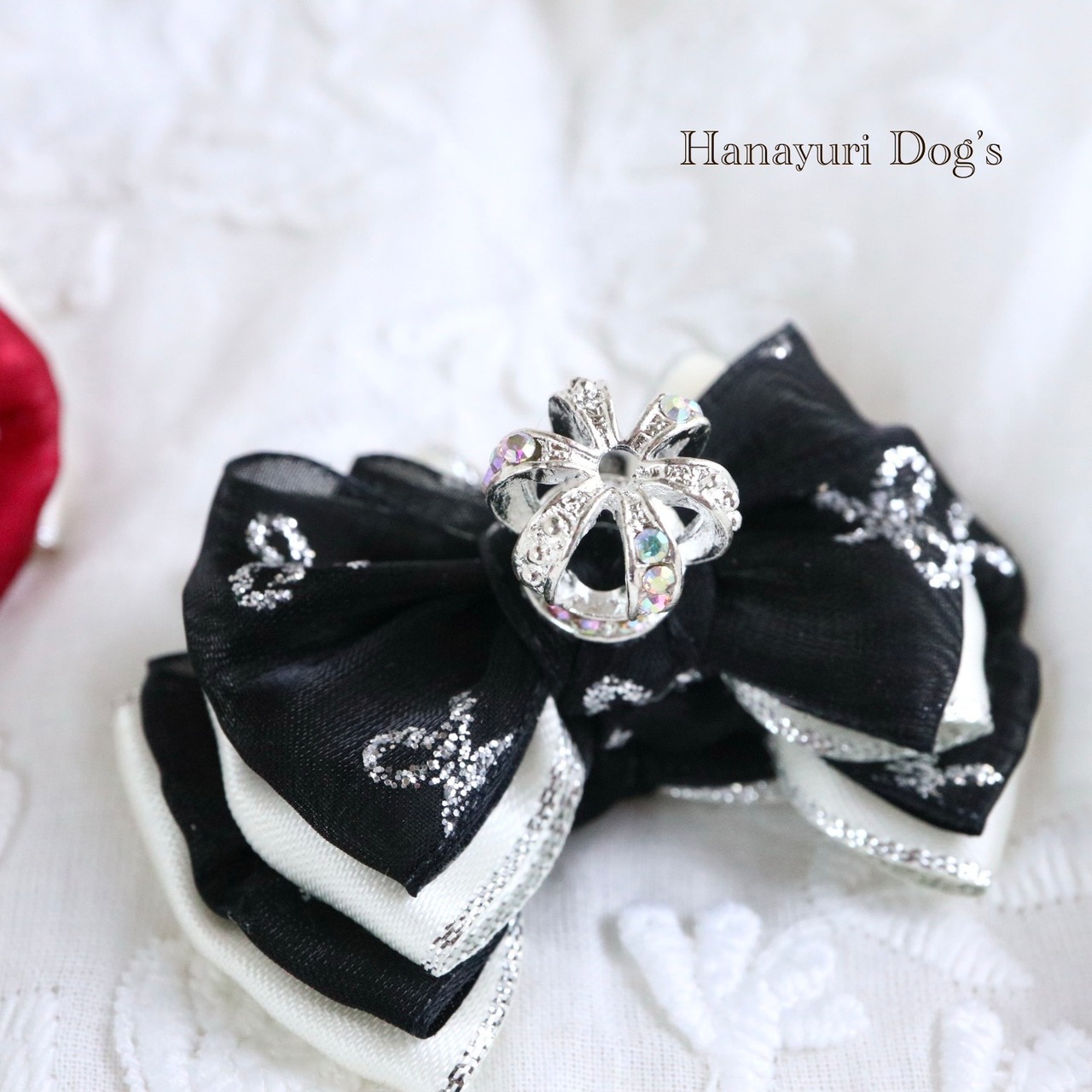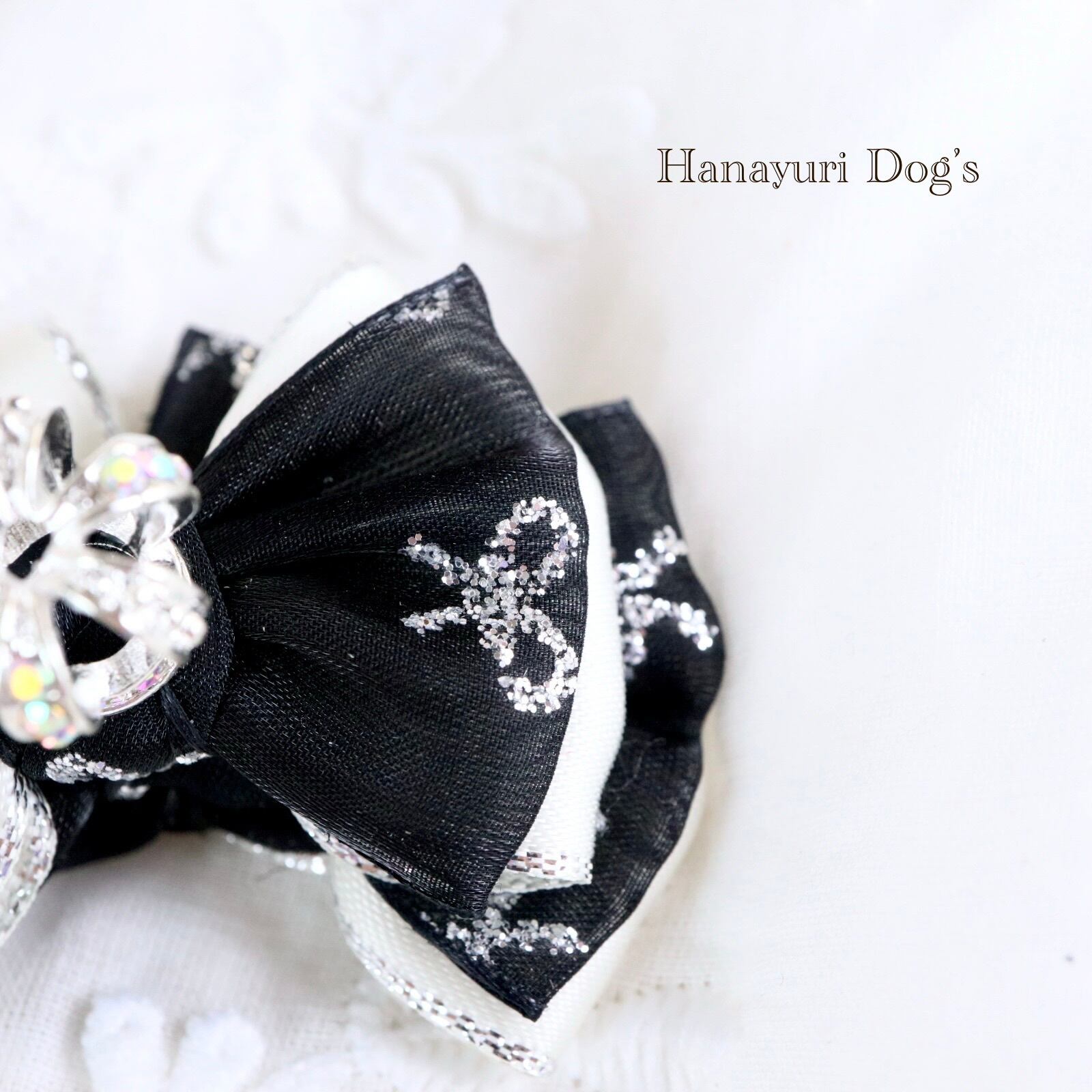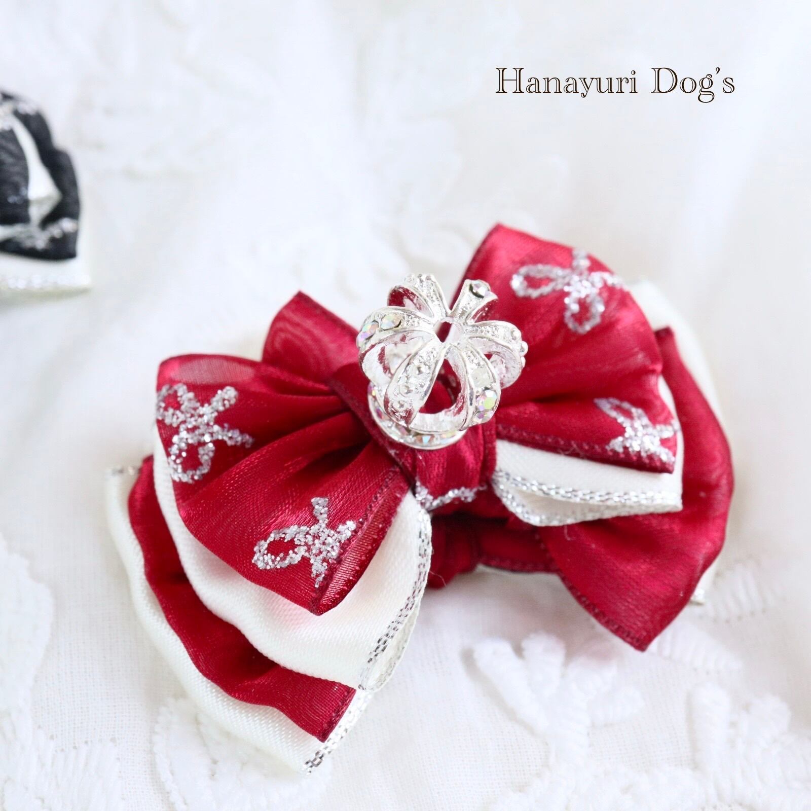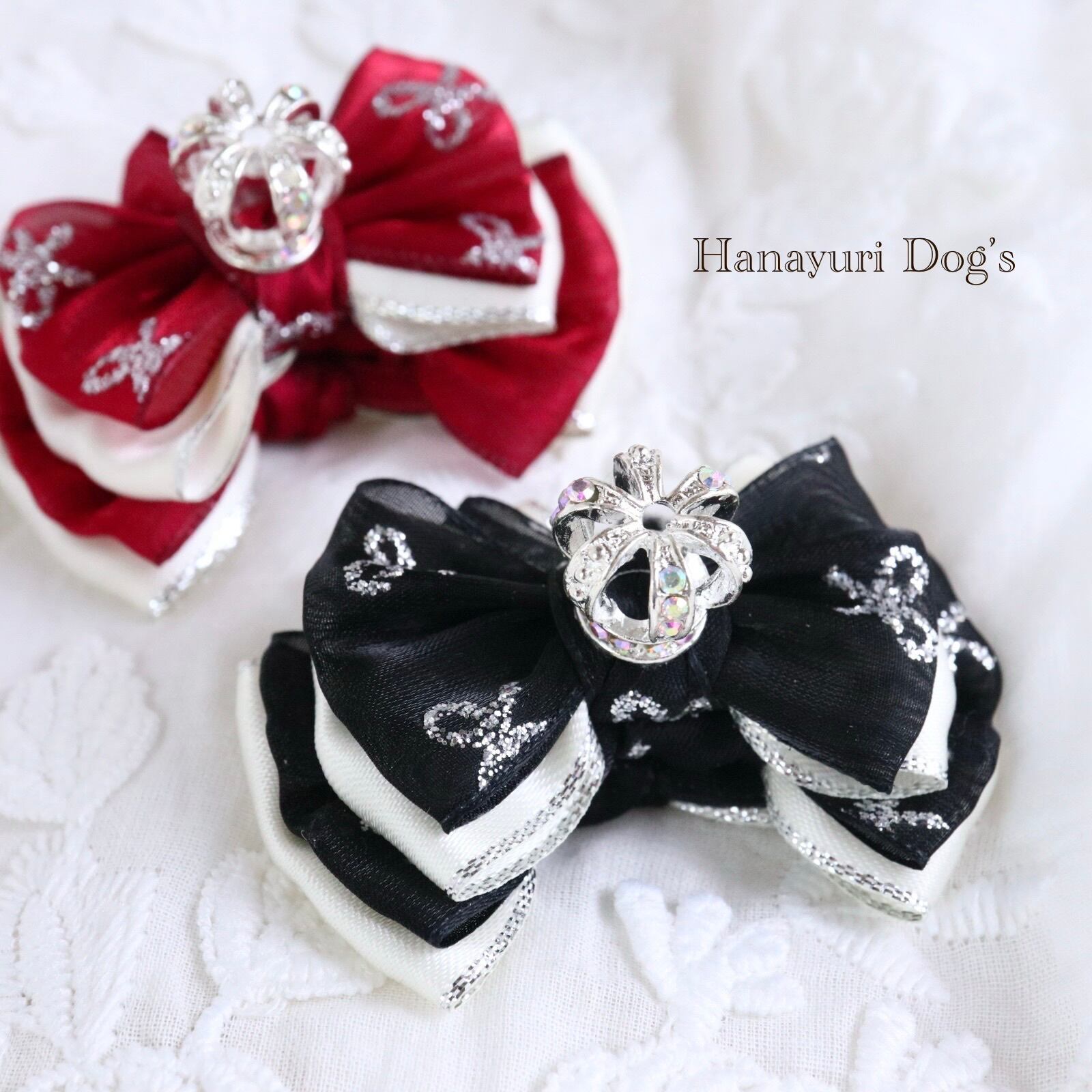 銀ラメリボン柄のオーガンジーと銀エッジのサテンも煌びやかでお誕生日や記念日などの主役の日にぴったりなアイテムです。