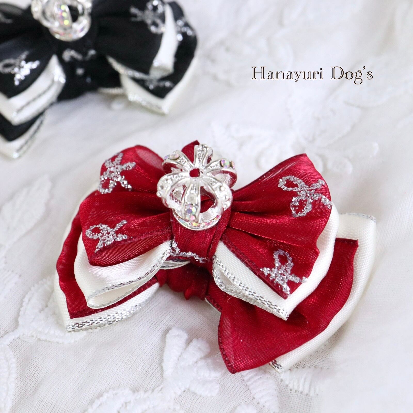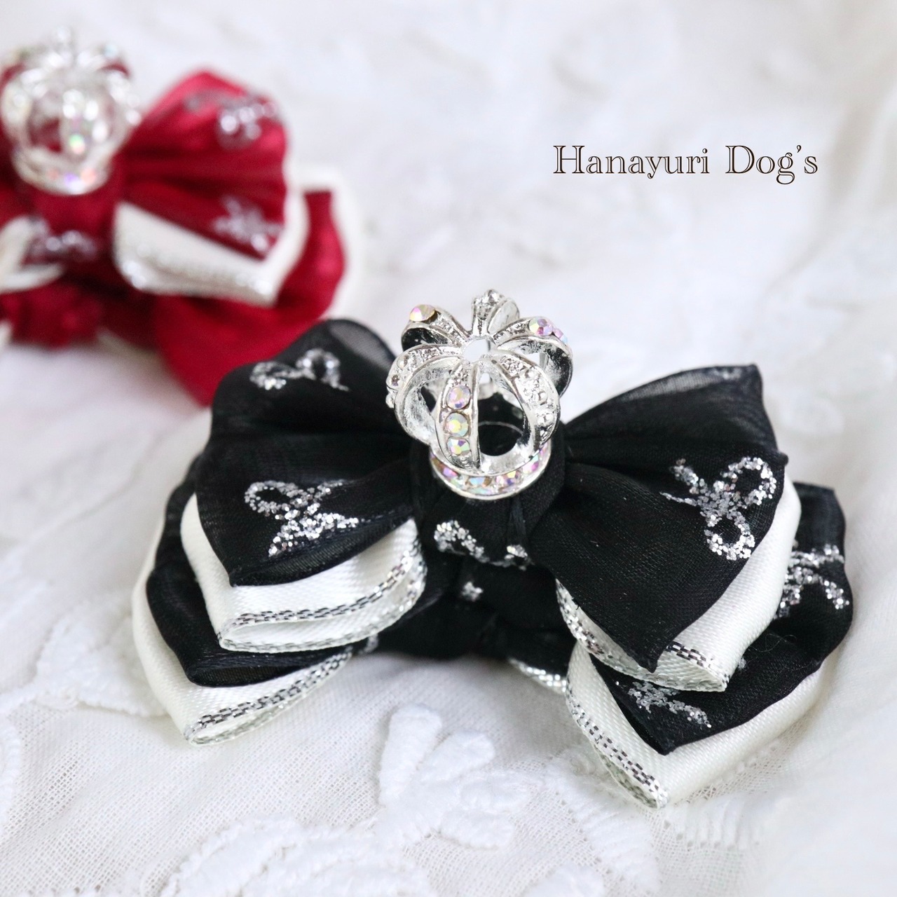 ブラックまたはレッド1P 王冠 クラウン 犬バレッタ キッズ・子供リボン ペット ぬいぐるみ ヘアアクセサリー 髪飾り 誕生日 記念日 プレゼント オフ会 うちの子記念日 イベント 撮影
