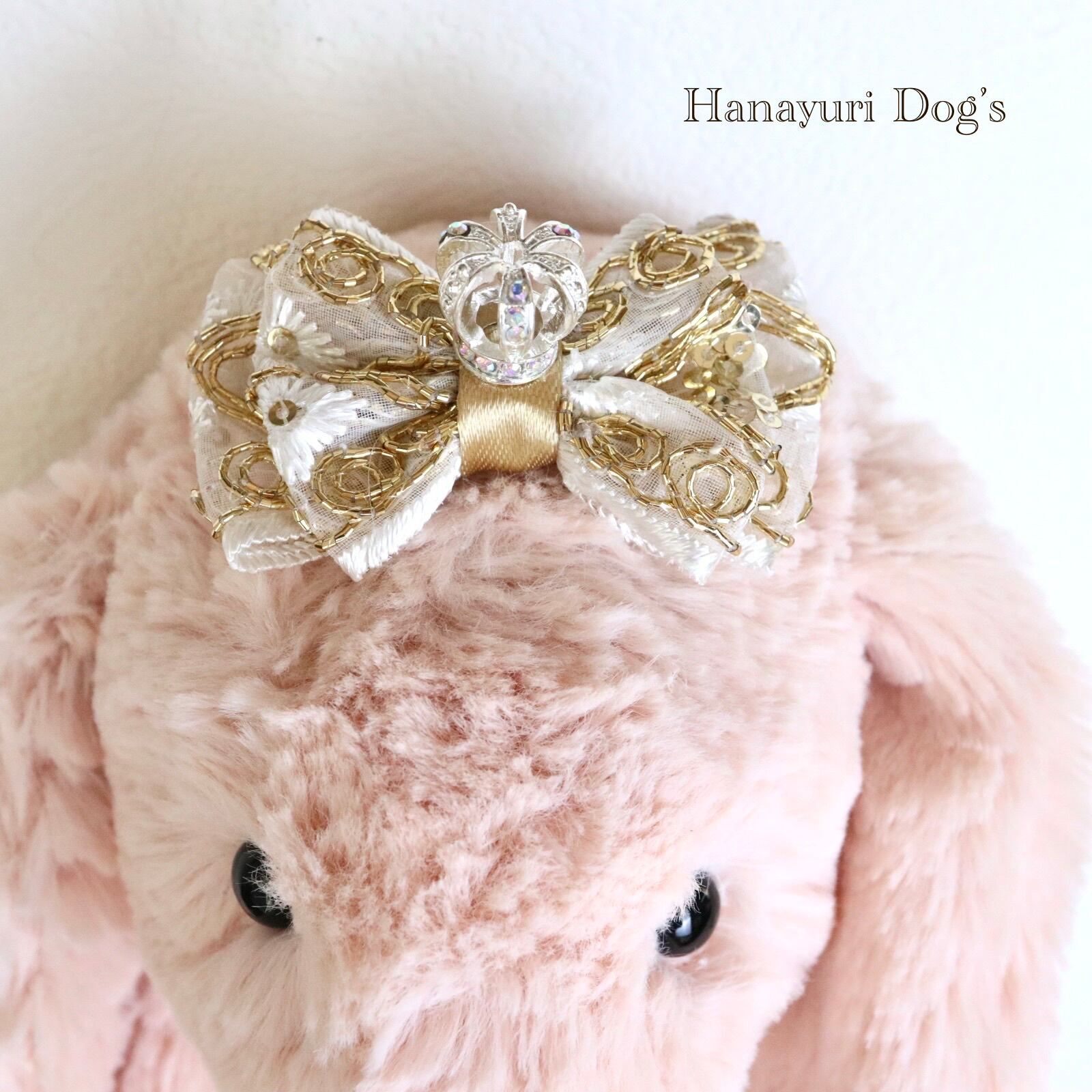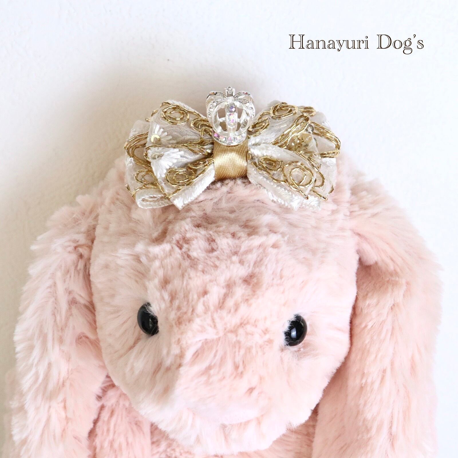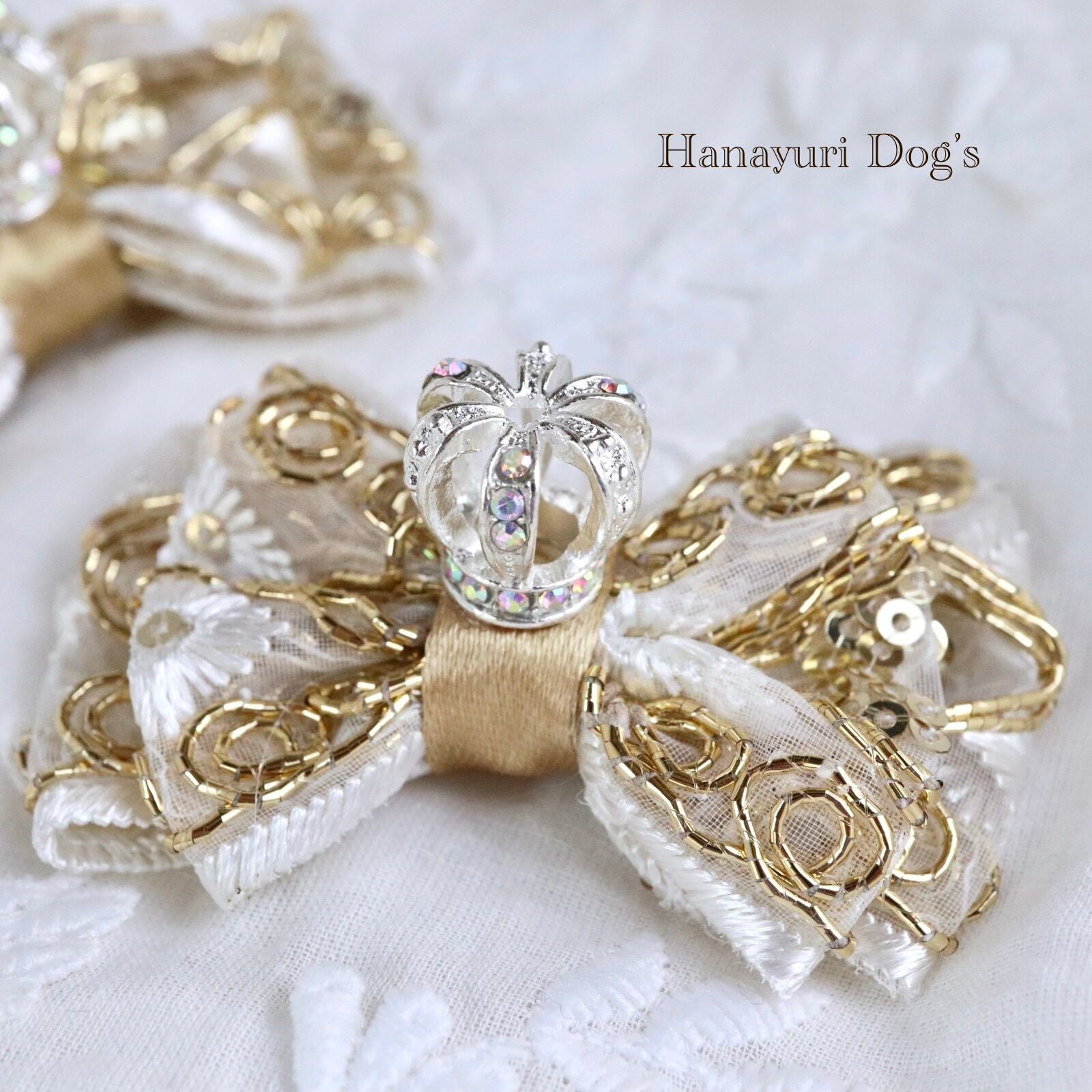 ゴールドスパンコールと花刺繍 王冠 クラウン 犬バレッタ キッズ・子供リボン ペット ぬいぐるみ ヘアアクセサリー 髪飾り 誕生日 記念日 プレゼント オフ会 うちの子記念日 イベント 撮影