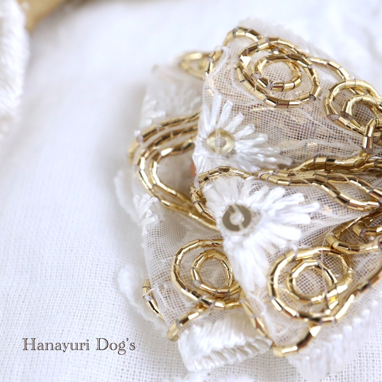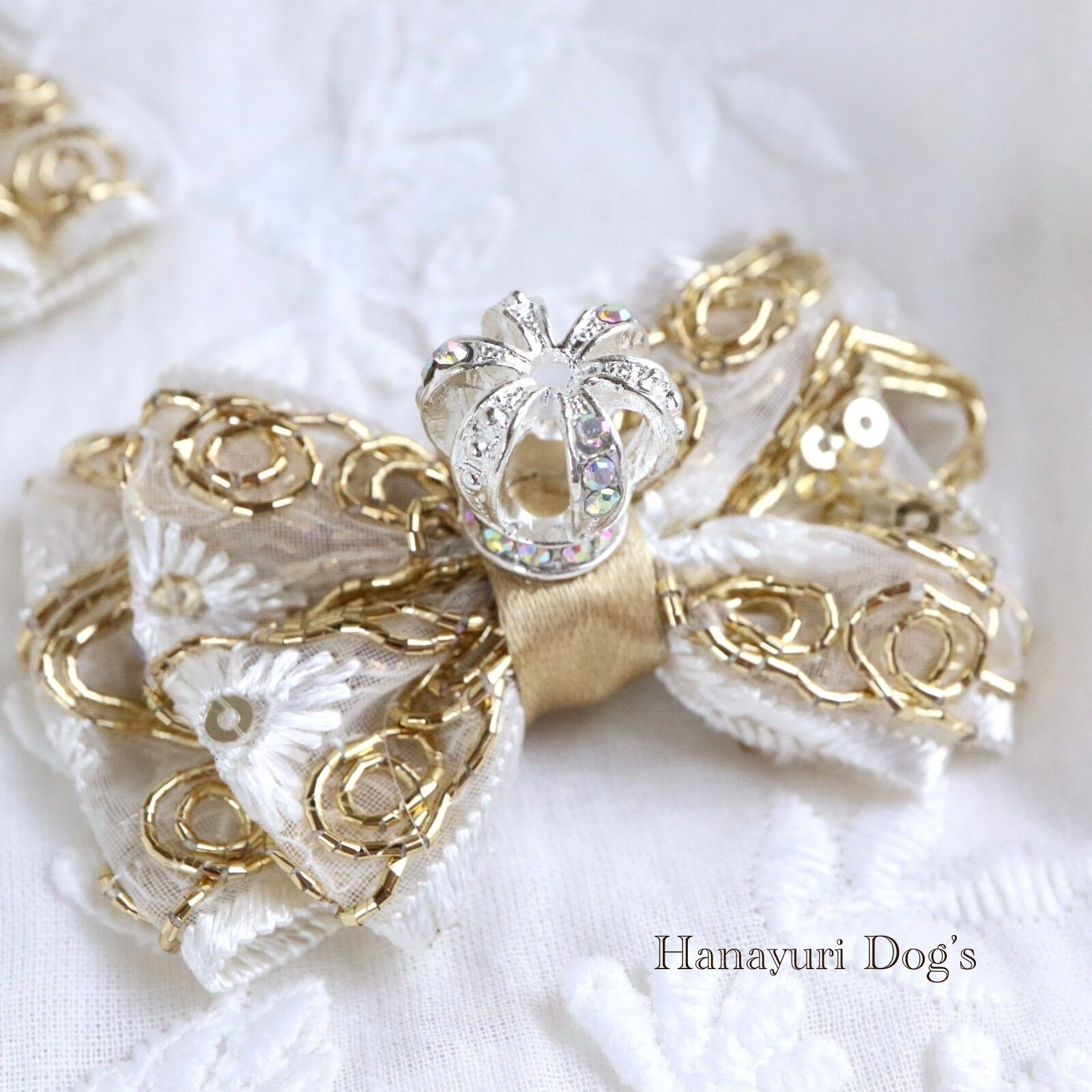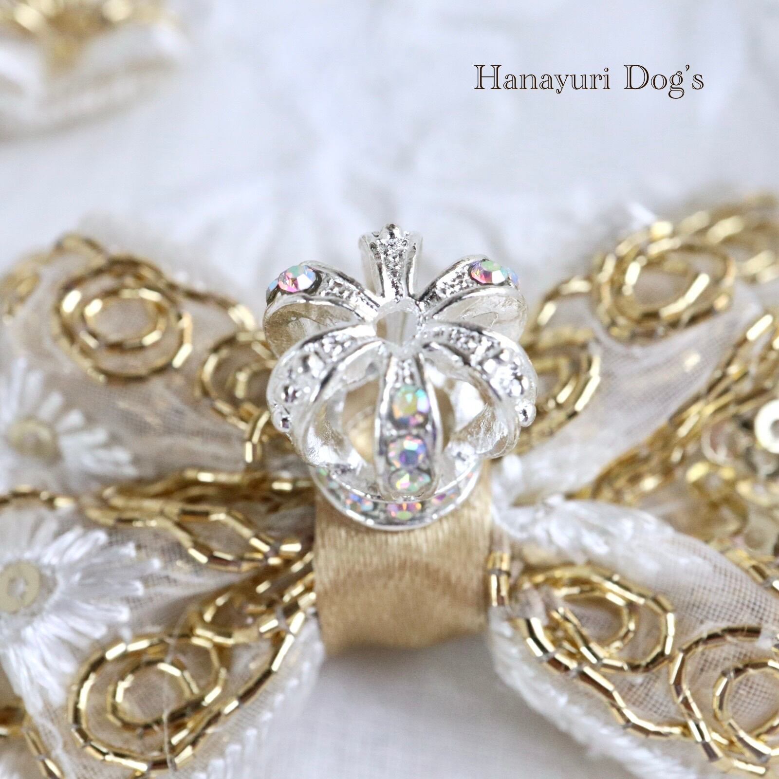 ゴールドスパンコールと花刺繍 王冠 クラウン 犬バレッタ キッズ・子供リボン ペット ぬいぐるみ ヘアアクセサリー 髪飾り 誕生日 記念日 プレゼント オフ会 うちの子記念日 イベント 撮影