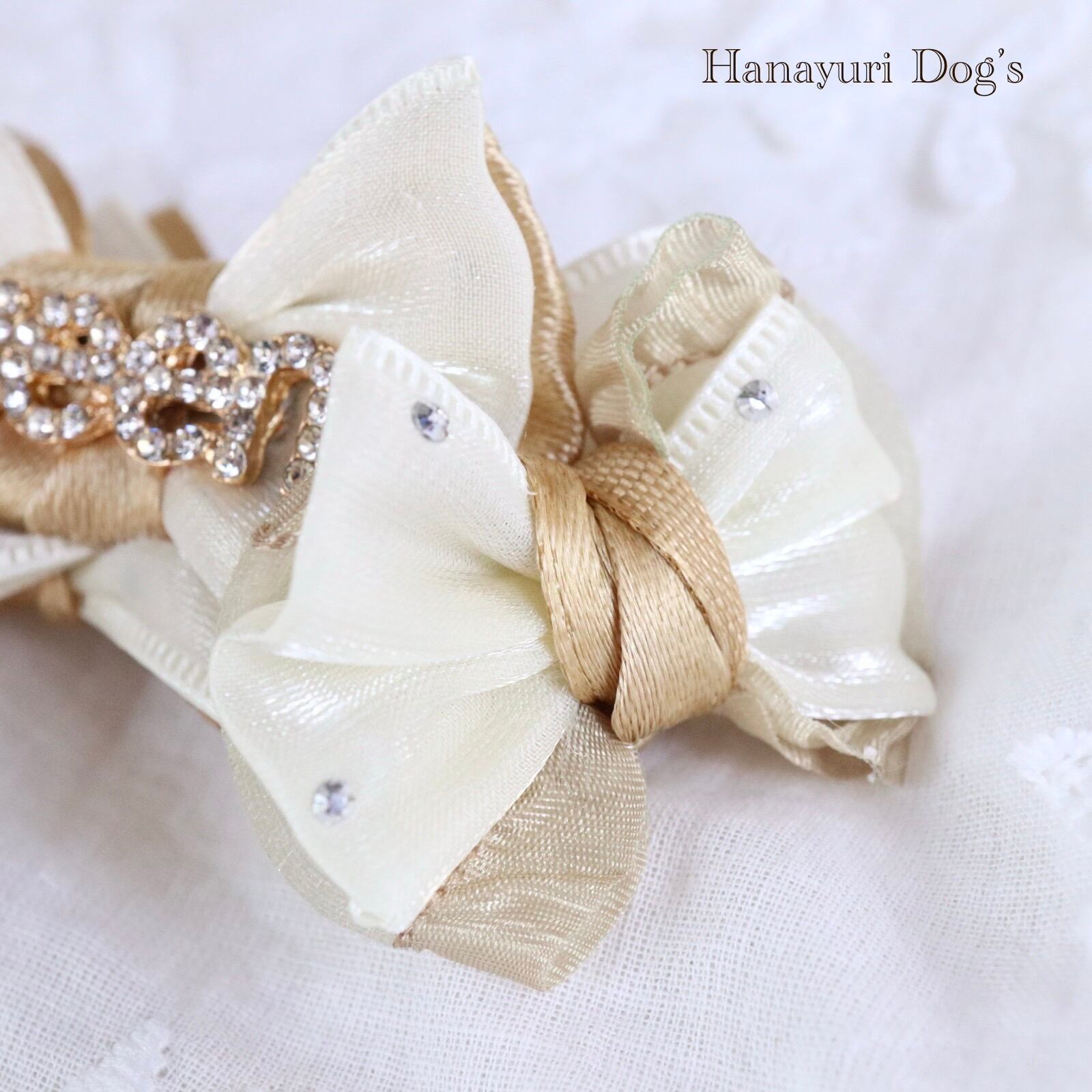落ち着いたゴールドサテンとラインストーン付きベージュのオーガンジーが上品な大人色。