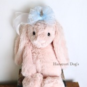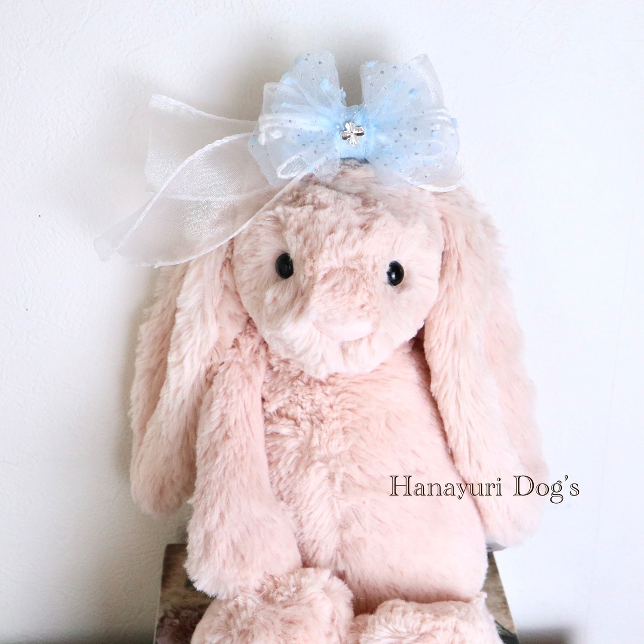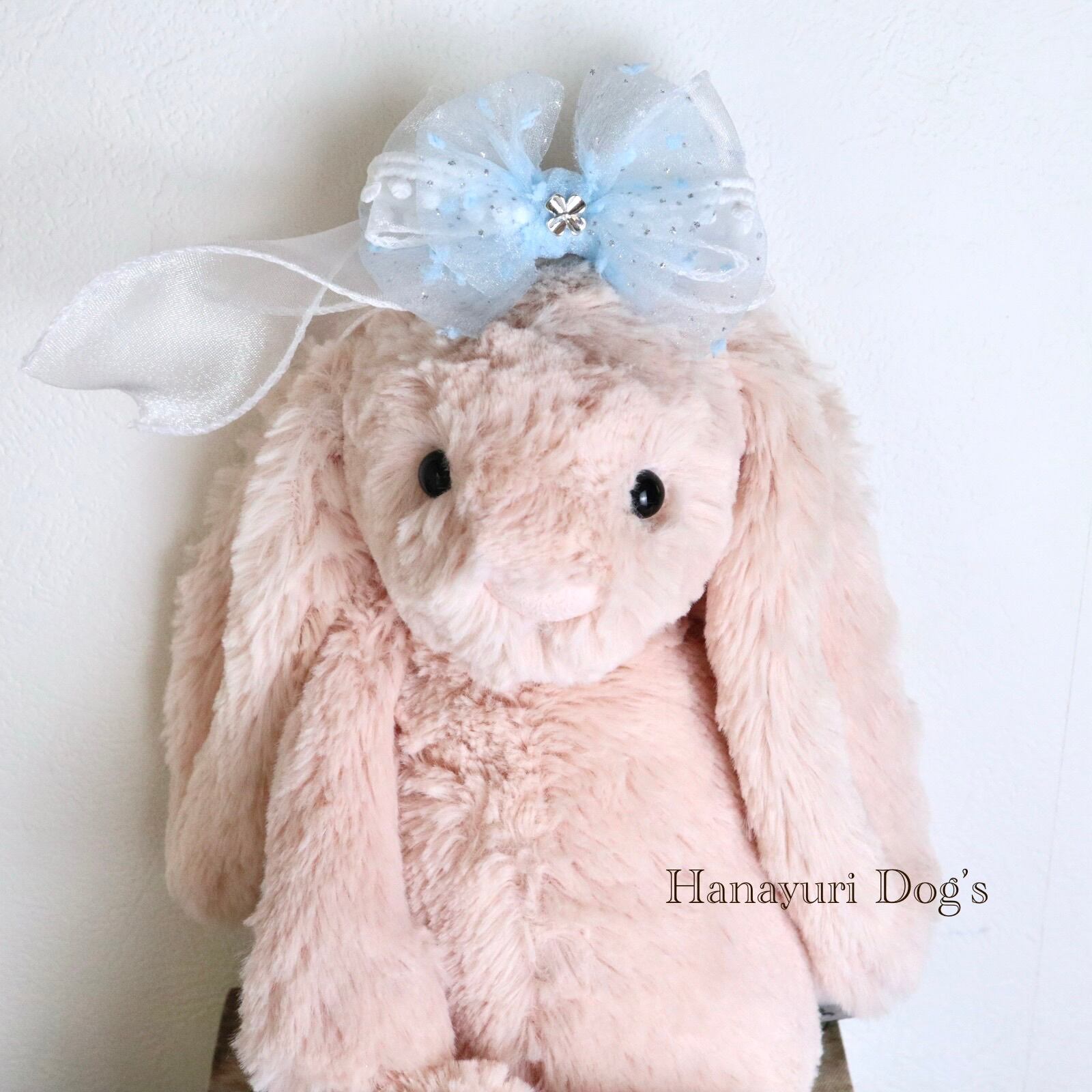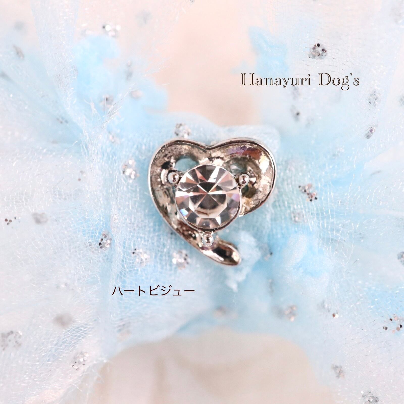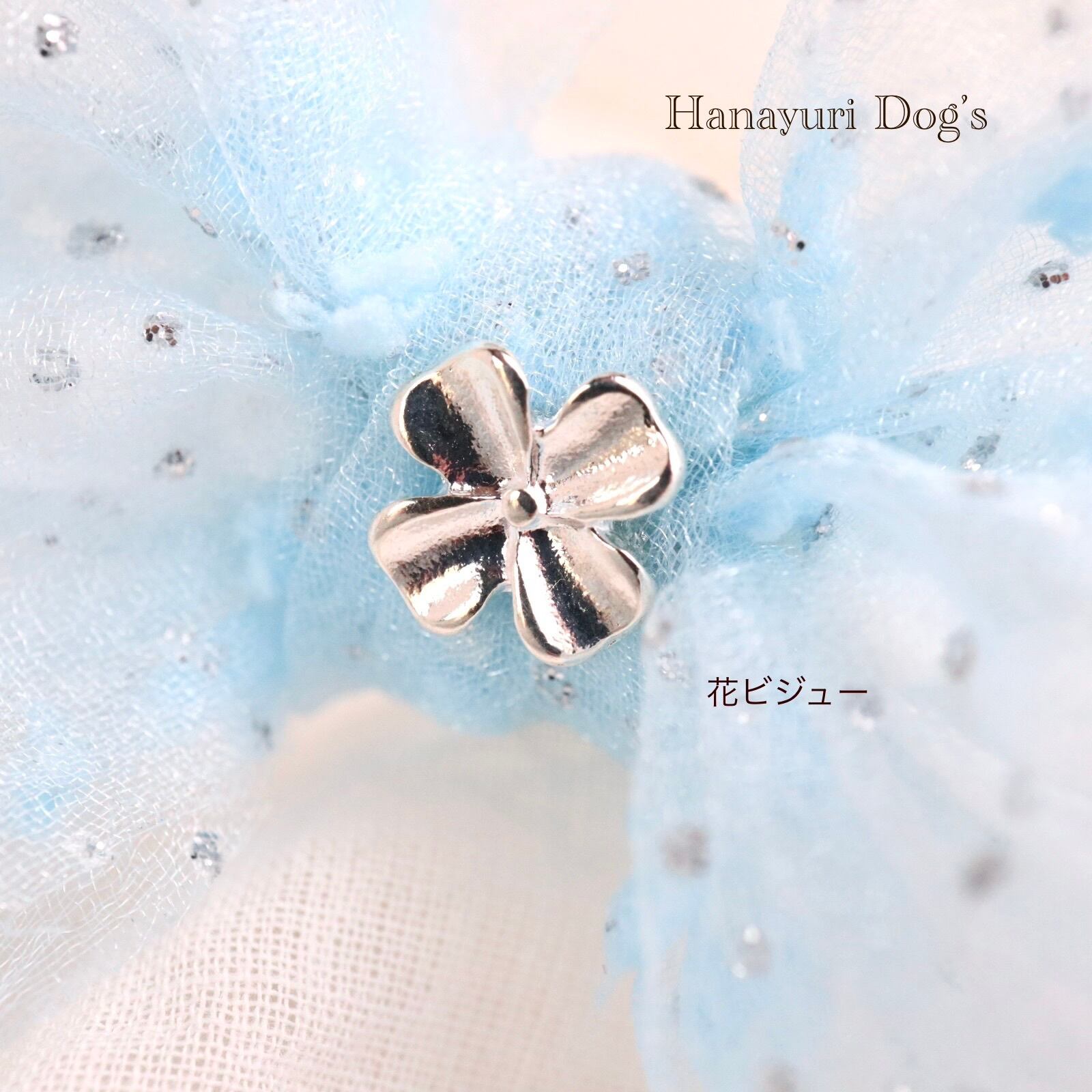 流れるオーガンジー ブルー×ホワイト ハート・花1P ラインストーン 犬バレッタ キッズ・子供リボン ペット ぬいぐるみ ヘアアクセサリー 髪飾り 誕生日 記念日 プレゼント オフ会 うちの子記念日 イベント 撮影