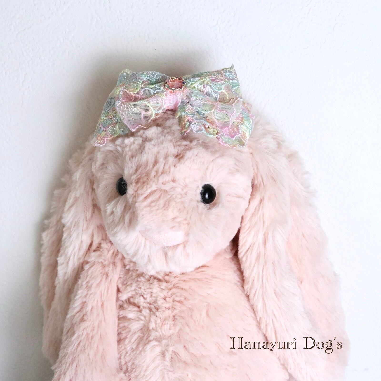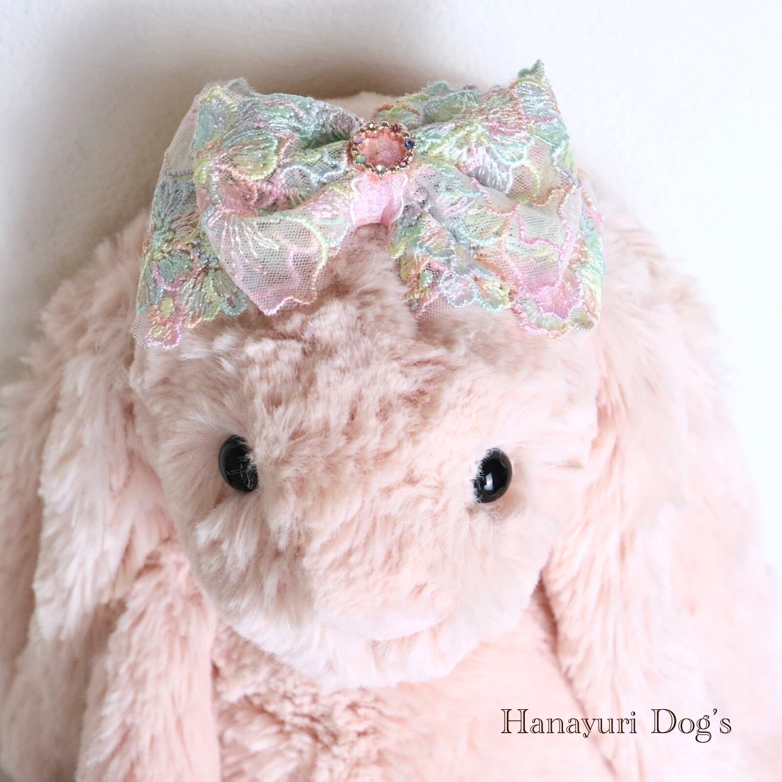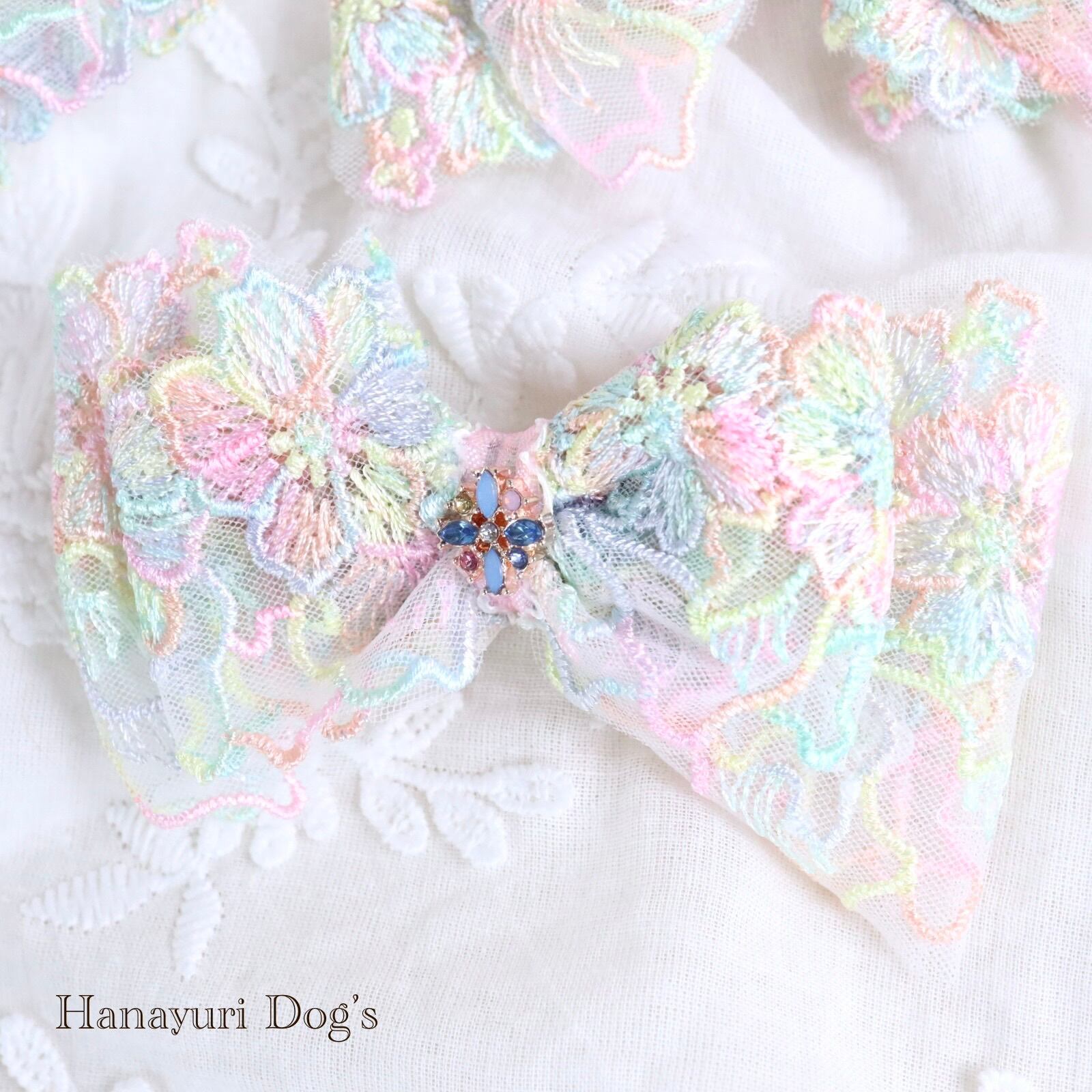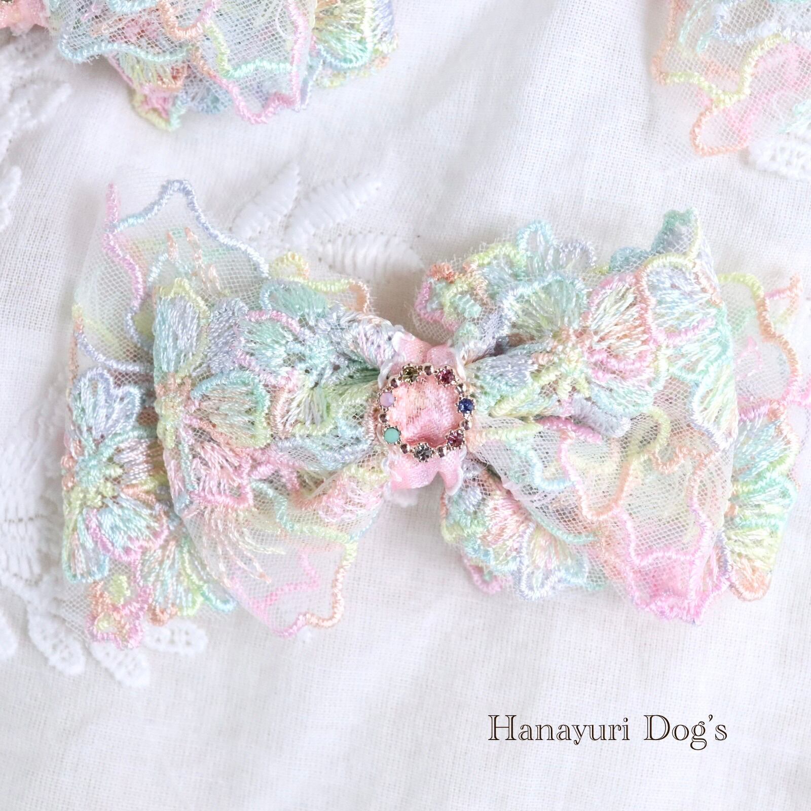 高級カラフル刺繍 リングと花ビジュー1P 犬バレッタ キッズ・子供リボン ペット ぬいぐるみ ヘアアクセサリー 髪飾り 誕生日 記念日 プレゼント オフ会 うちの子記念日 イベント 撮影