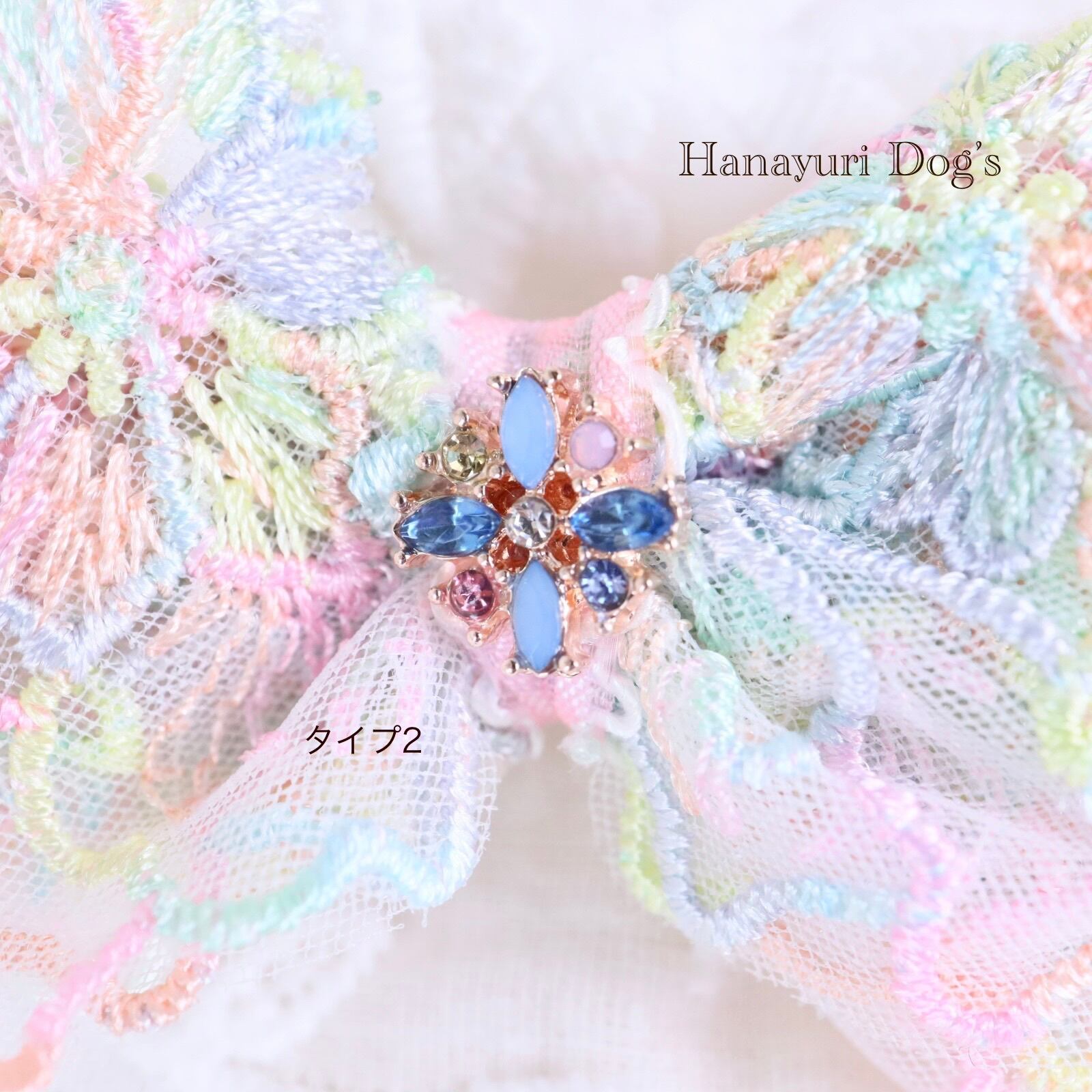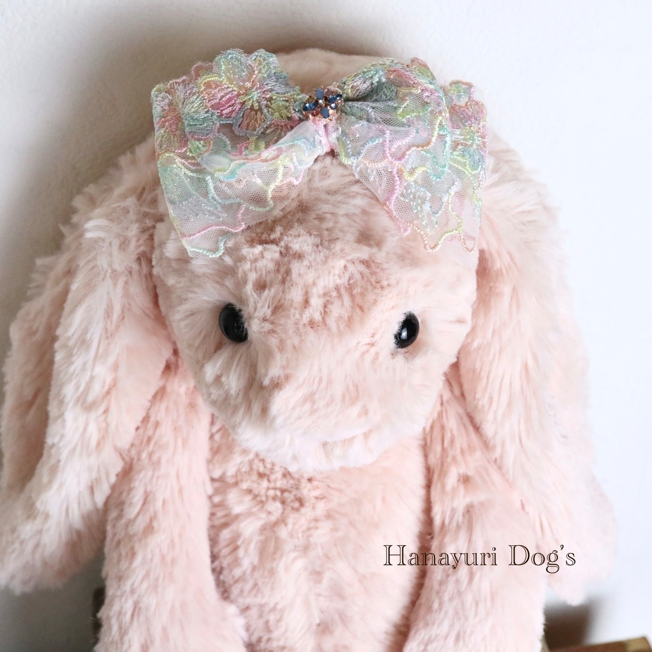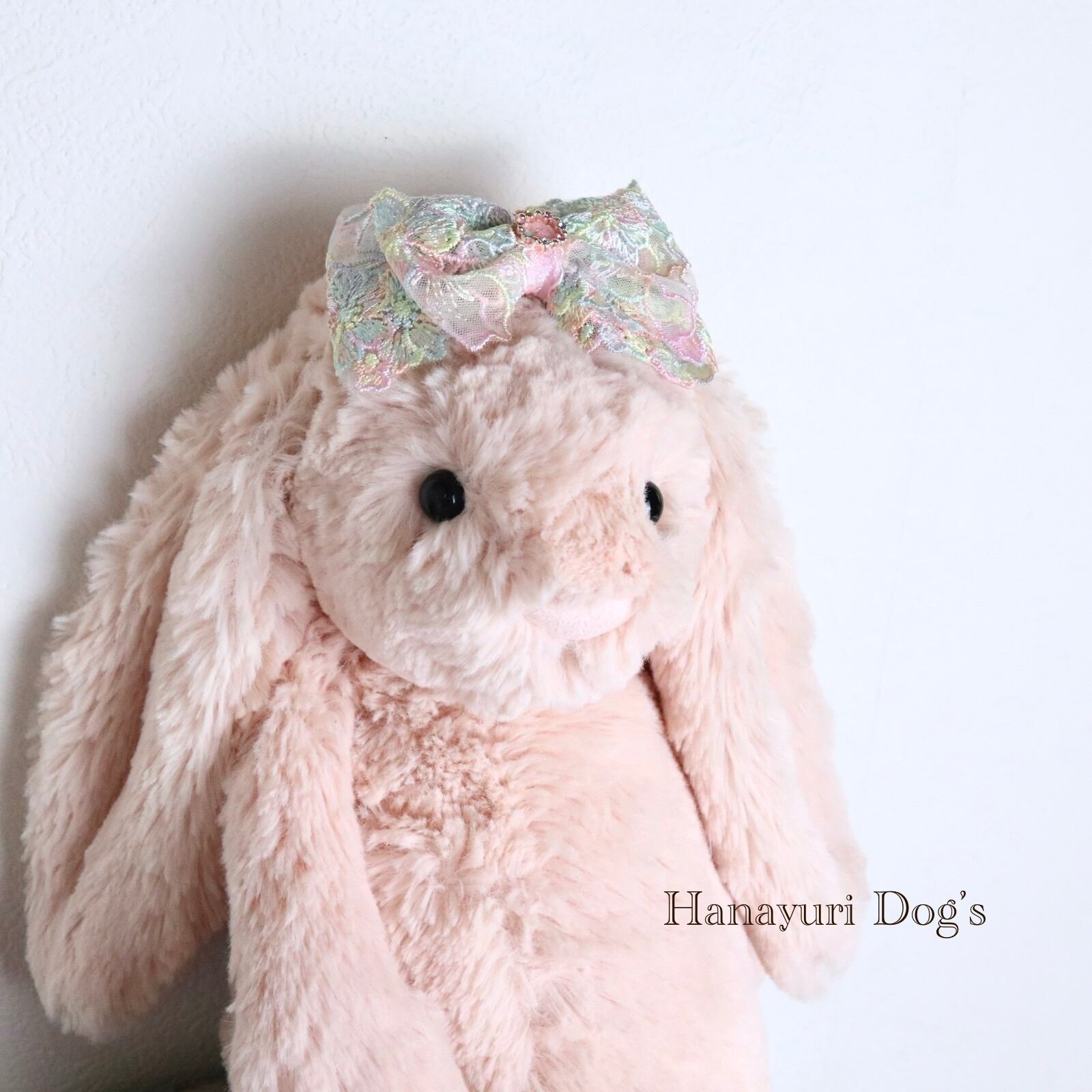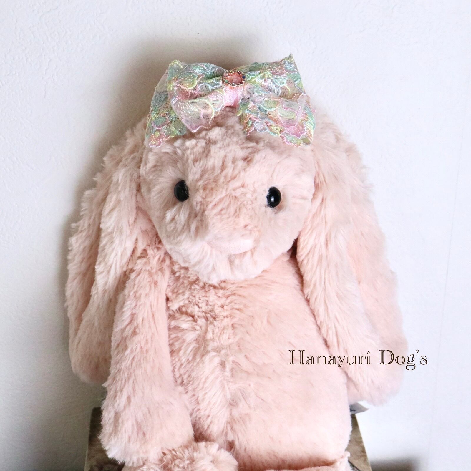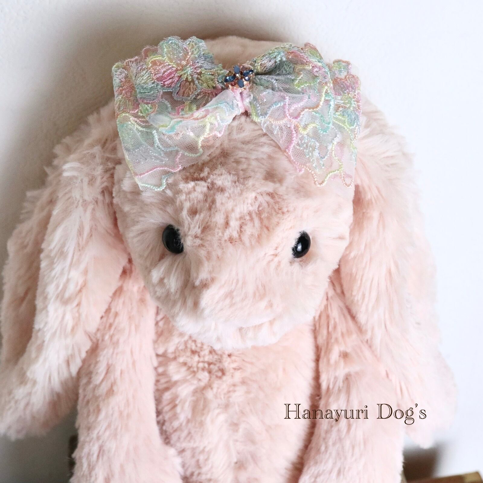 高級カラフル刺繍 リングと花ビジュー1P 犬バレッタ キッズ・子供リボン ペット ぬいぐるみ ヘアアクセサリー 髪飾り 誕生日 記念日 プレゼント オフ会 うちの子記念日 イベント 撮影