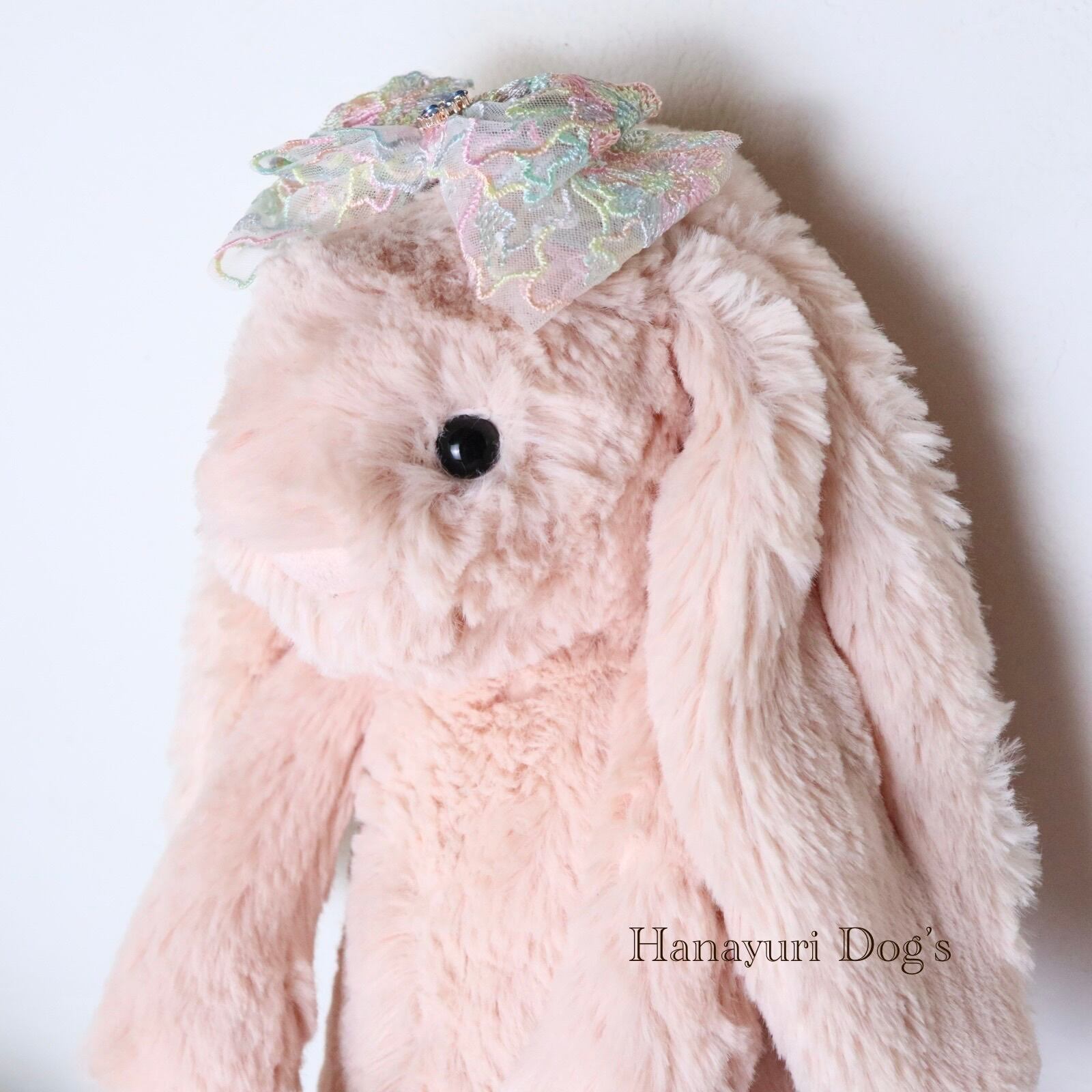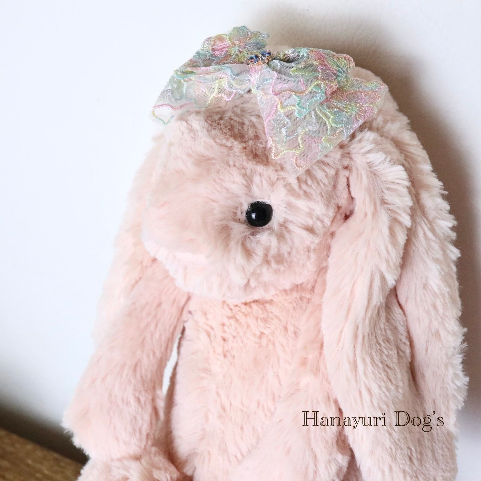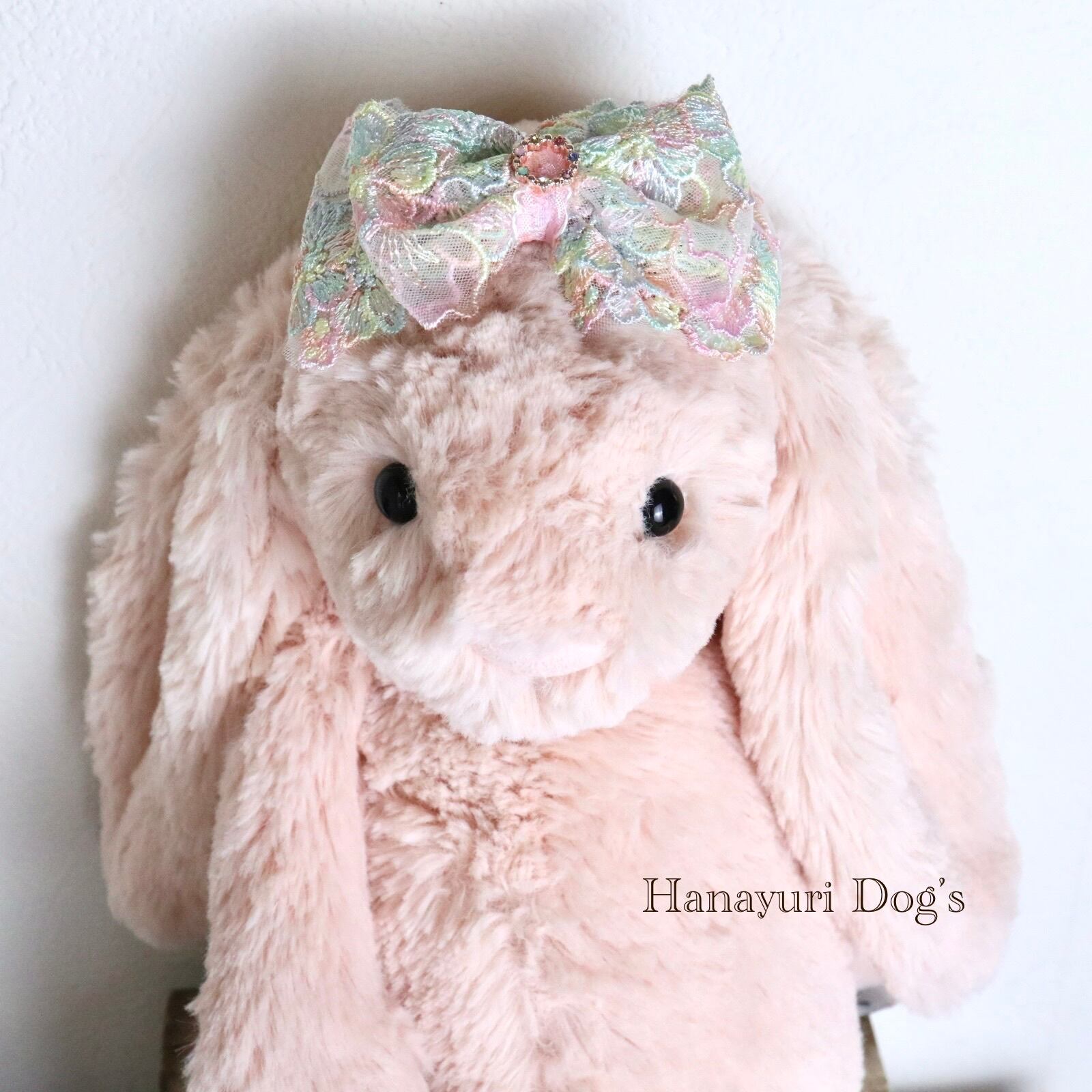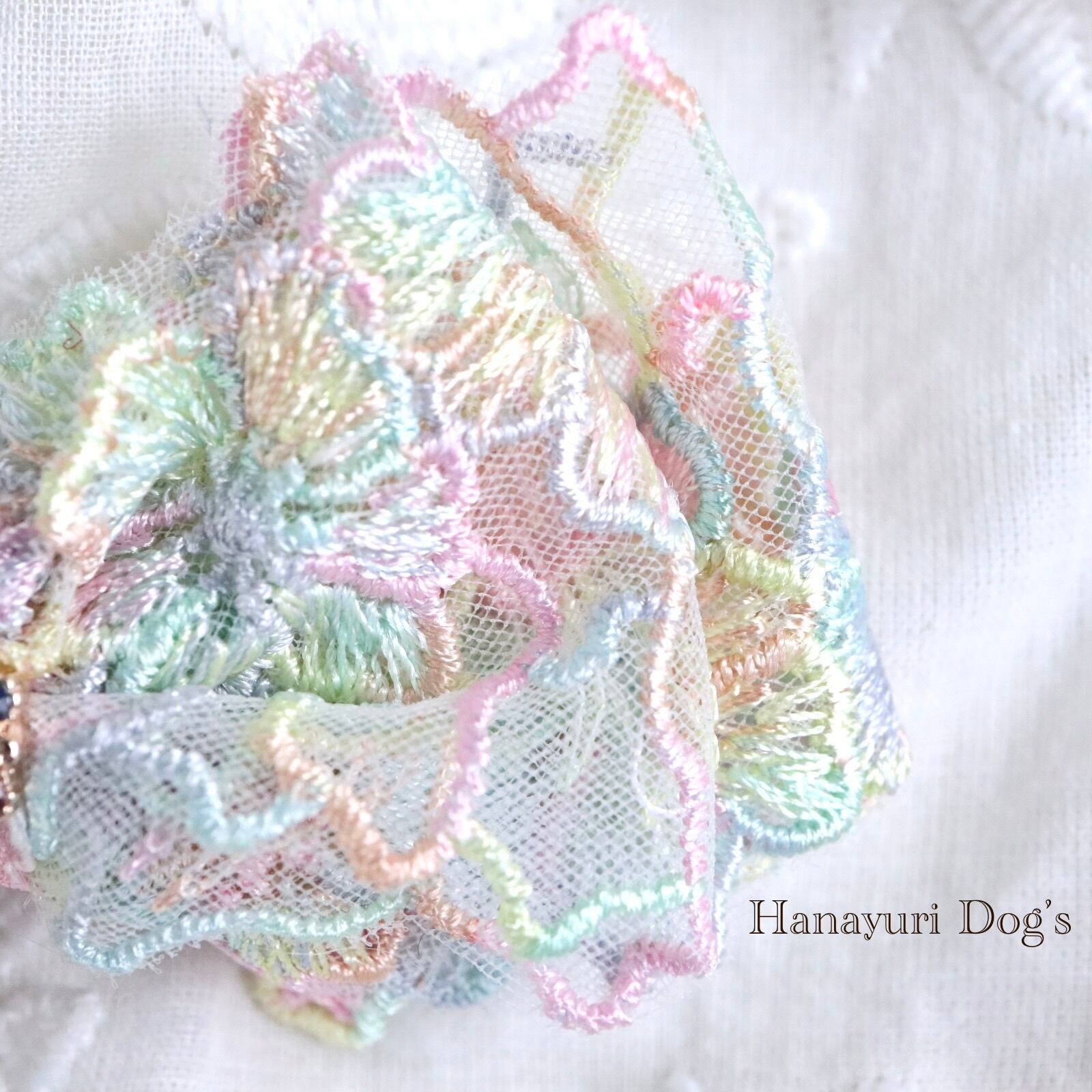 高級カラフル刺繍 リングと花ビジュー1P 犬バレッタ キッズ・子供リボン ペット ぬいぐるみ ヘアアクセサリー 髪飾り 誕生日 記念日 プレゼント オフ会 うちの子記念日 イベント 撮影