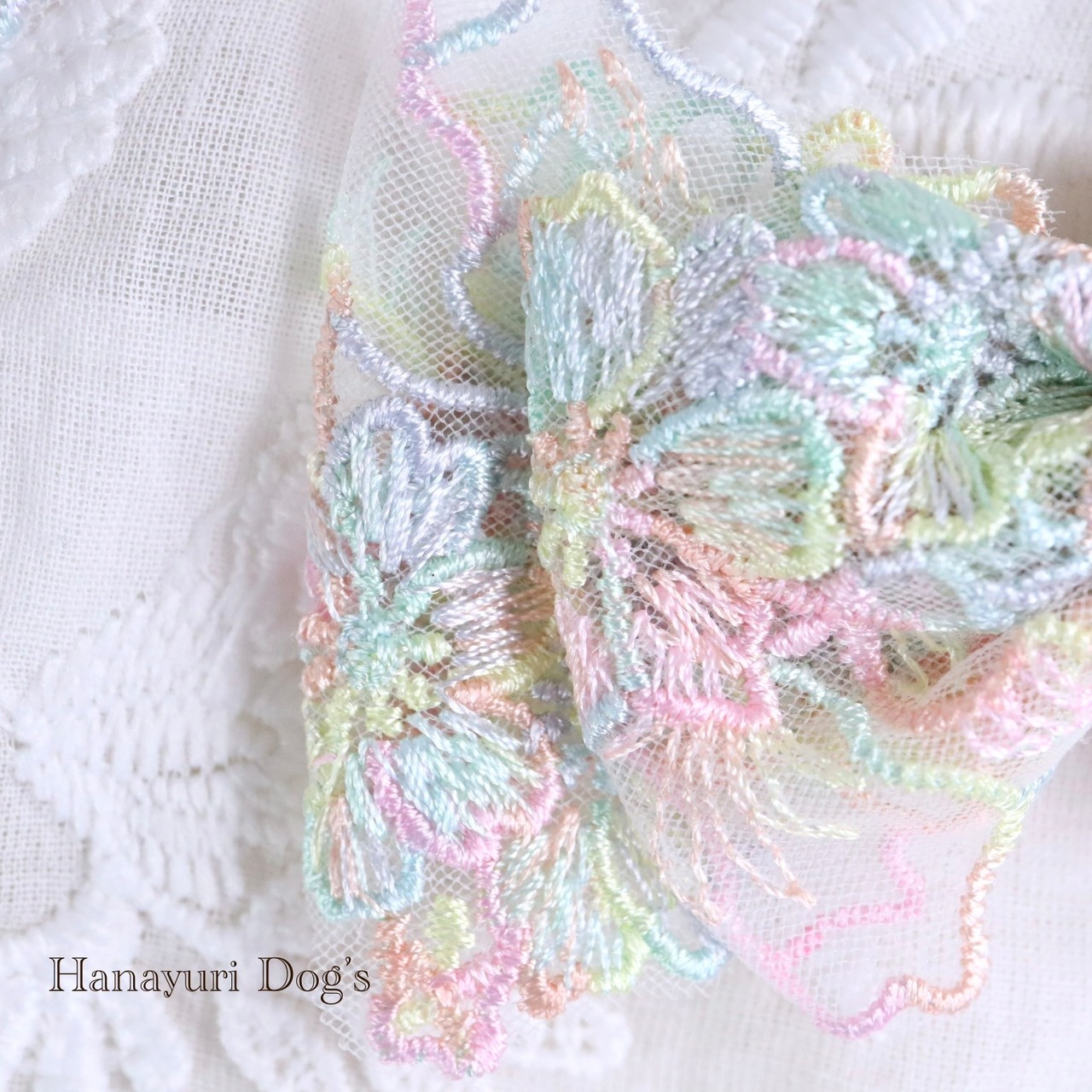 チュールに施されたカラフルな刺繍が可憐なバレッタリボンです。