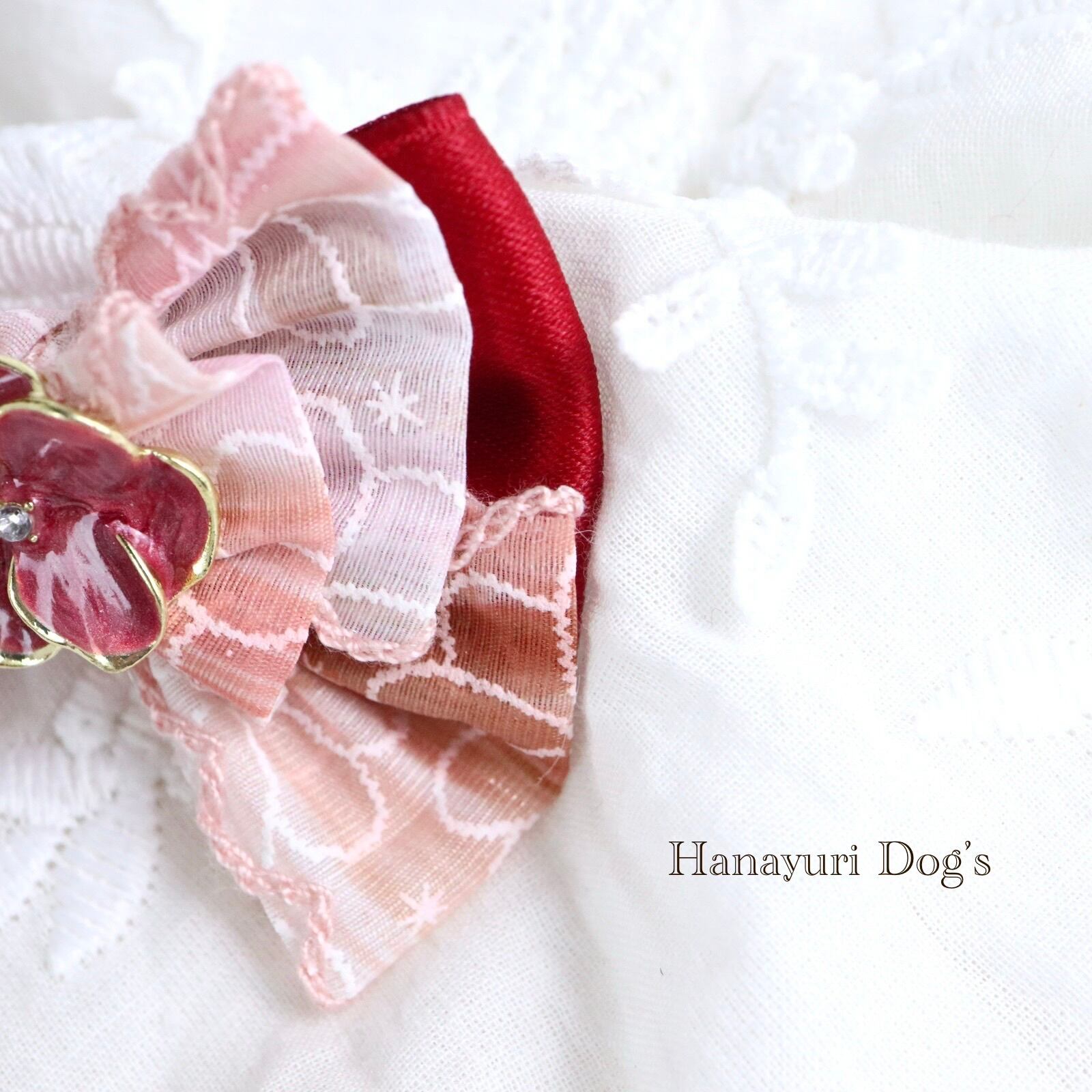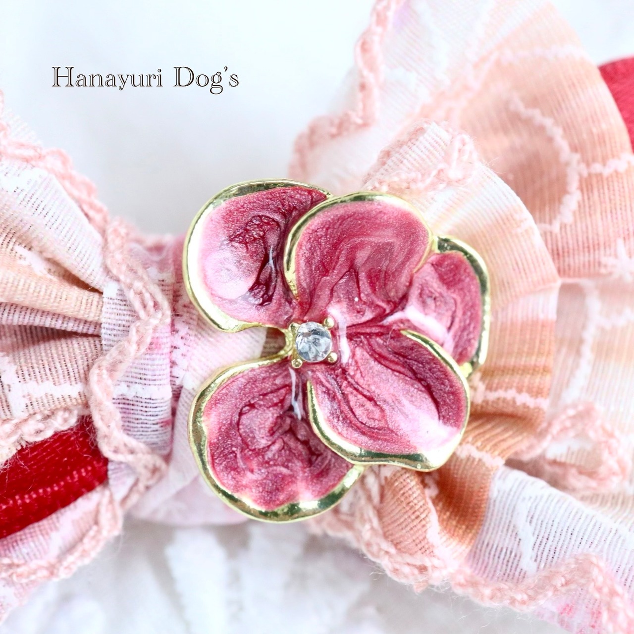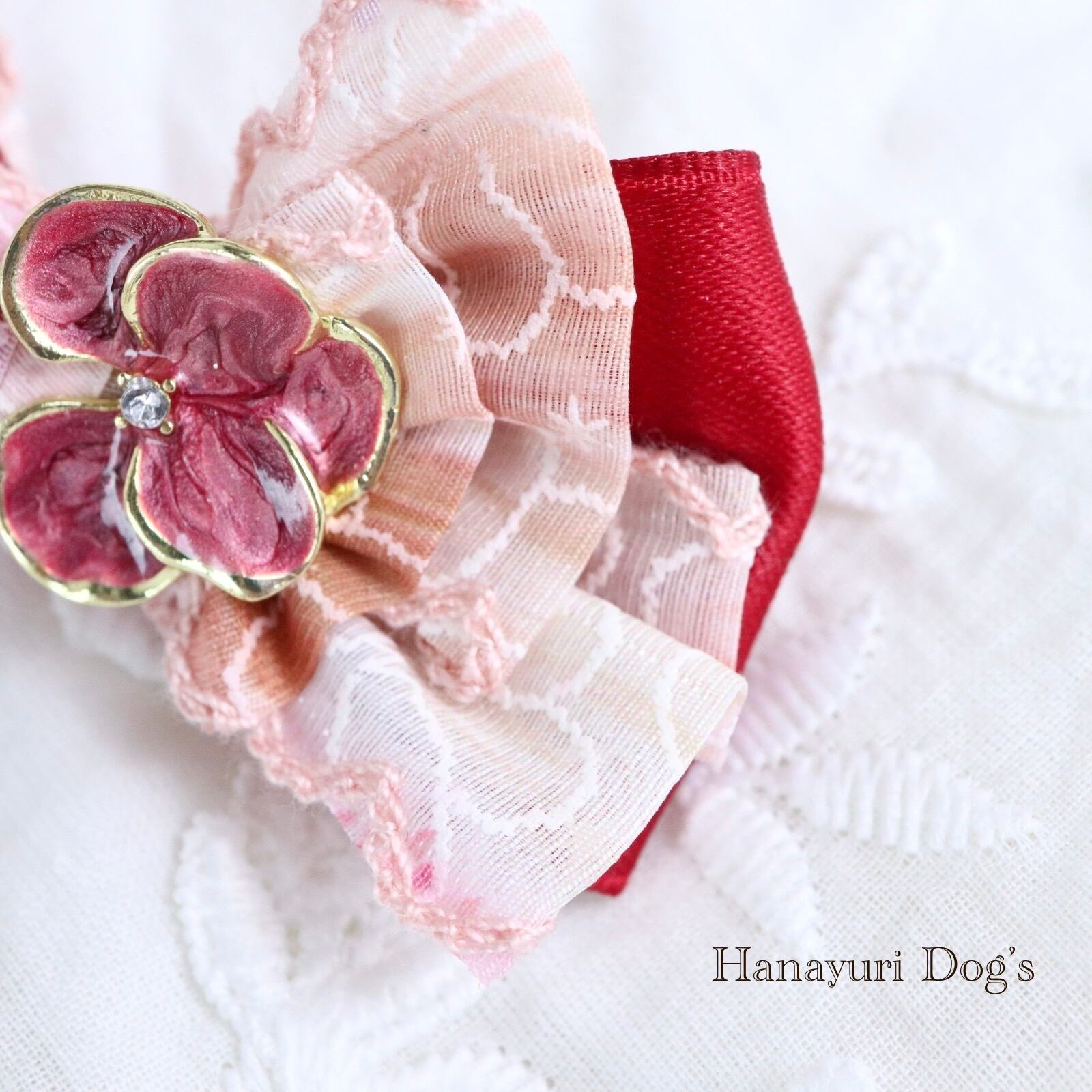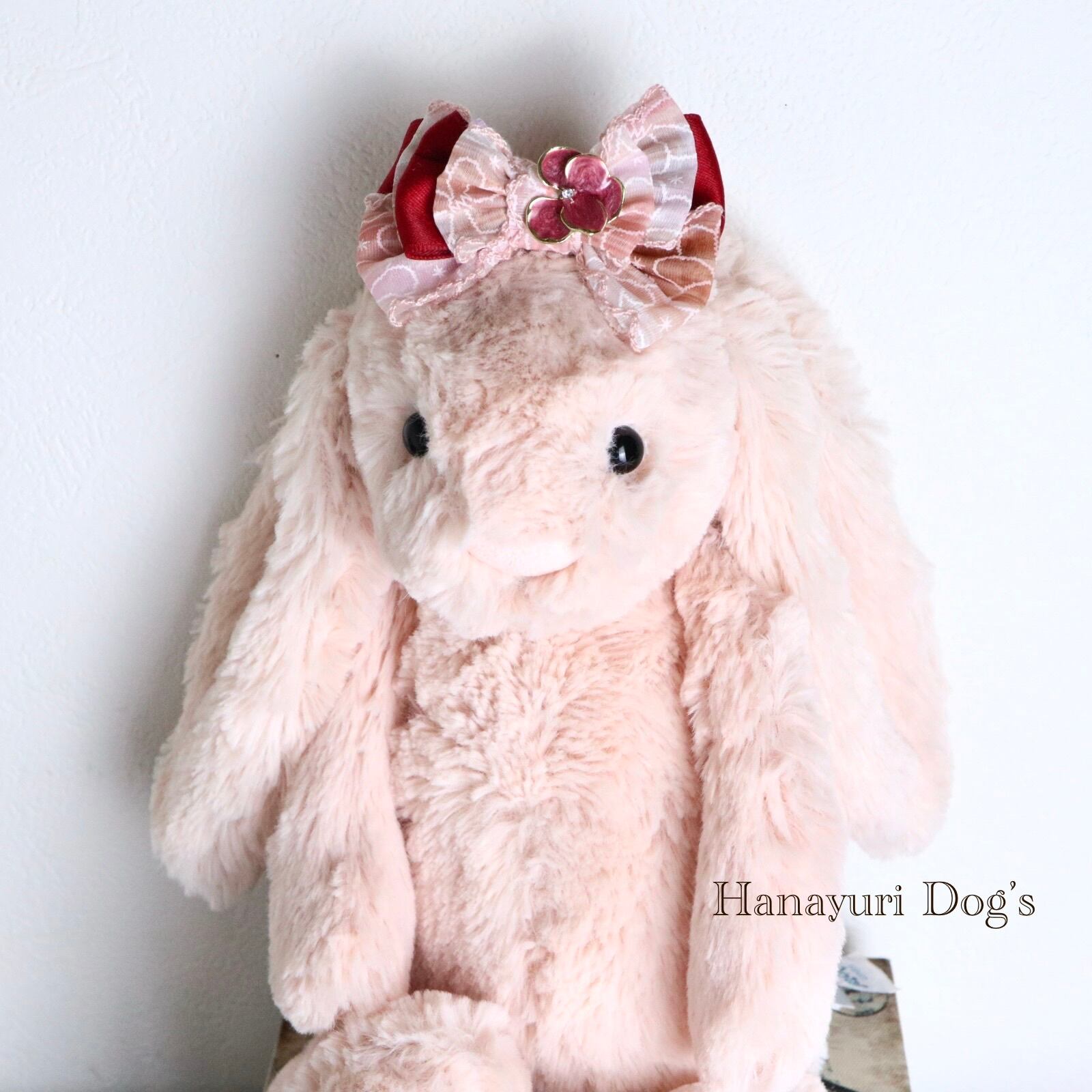 ピンク×ワインレッド 花ビジュー 犬バレッタ キッズ・子供リボン ペット ぬいぐるみ ヘアアクセサリー 髪飾り 誕生日 記念日 プレゼント オフ会 うちの子記念日 イベント 撮影