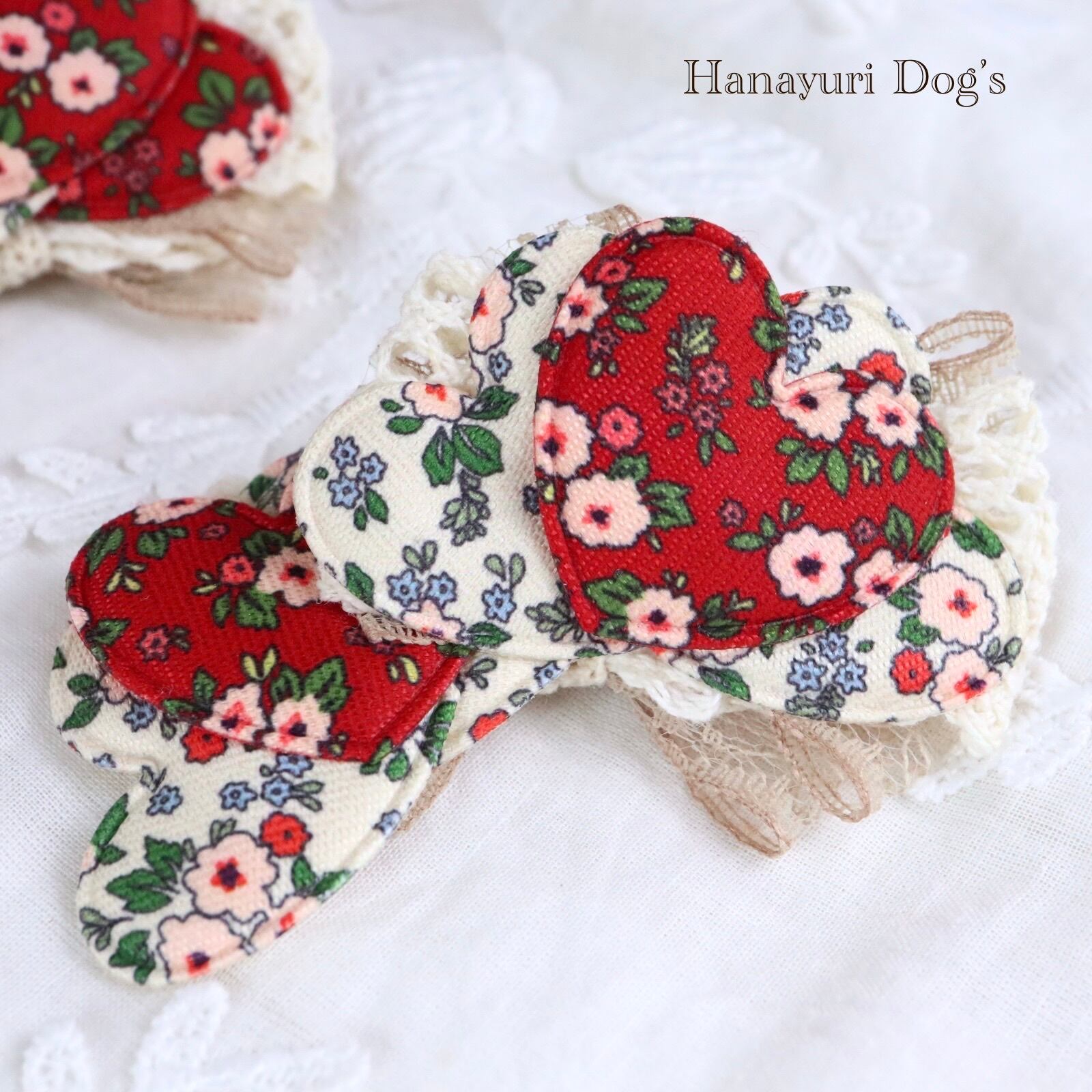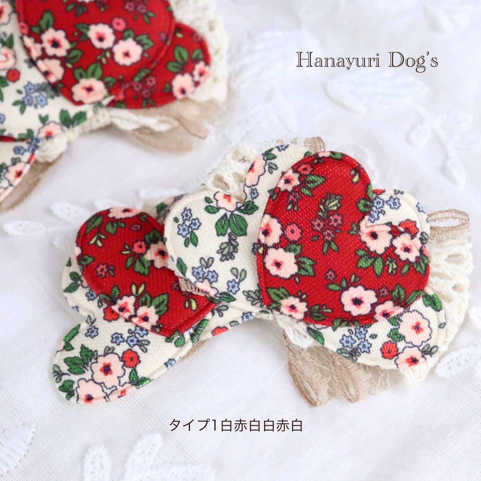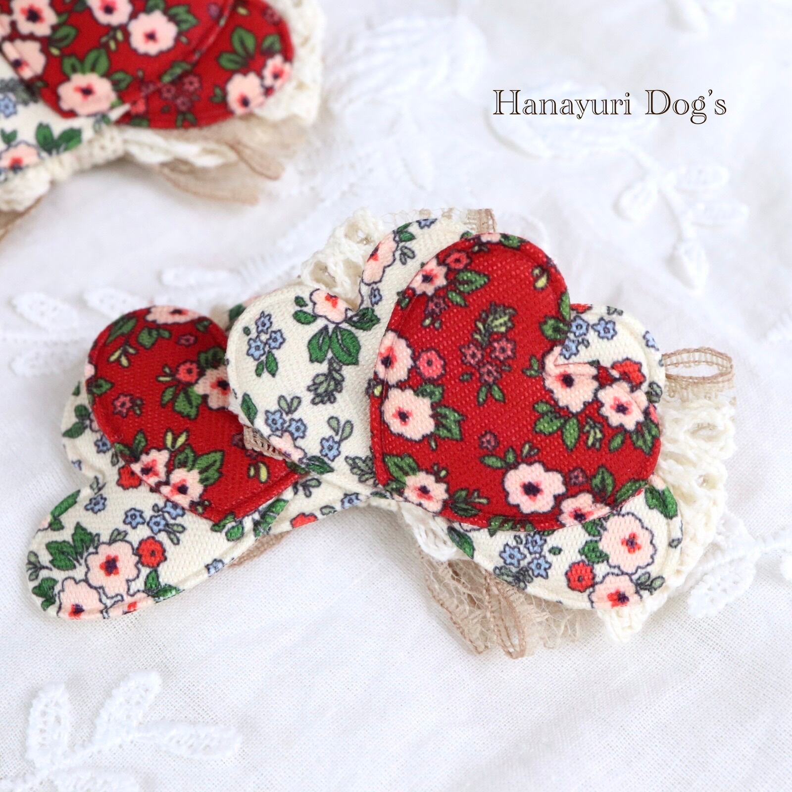 レトロフラワー ハート フレンチシック 2種1P 赤と白 犬バレッタ キッズ・子供リボン ペット ぬいぐるみ ヘアアクセサリー 髪飾り 誕生日 記念日 プレゼント オフ会 うちの子記念日 イベント 撮影