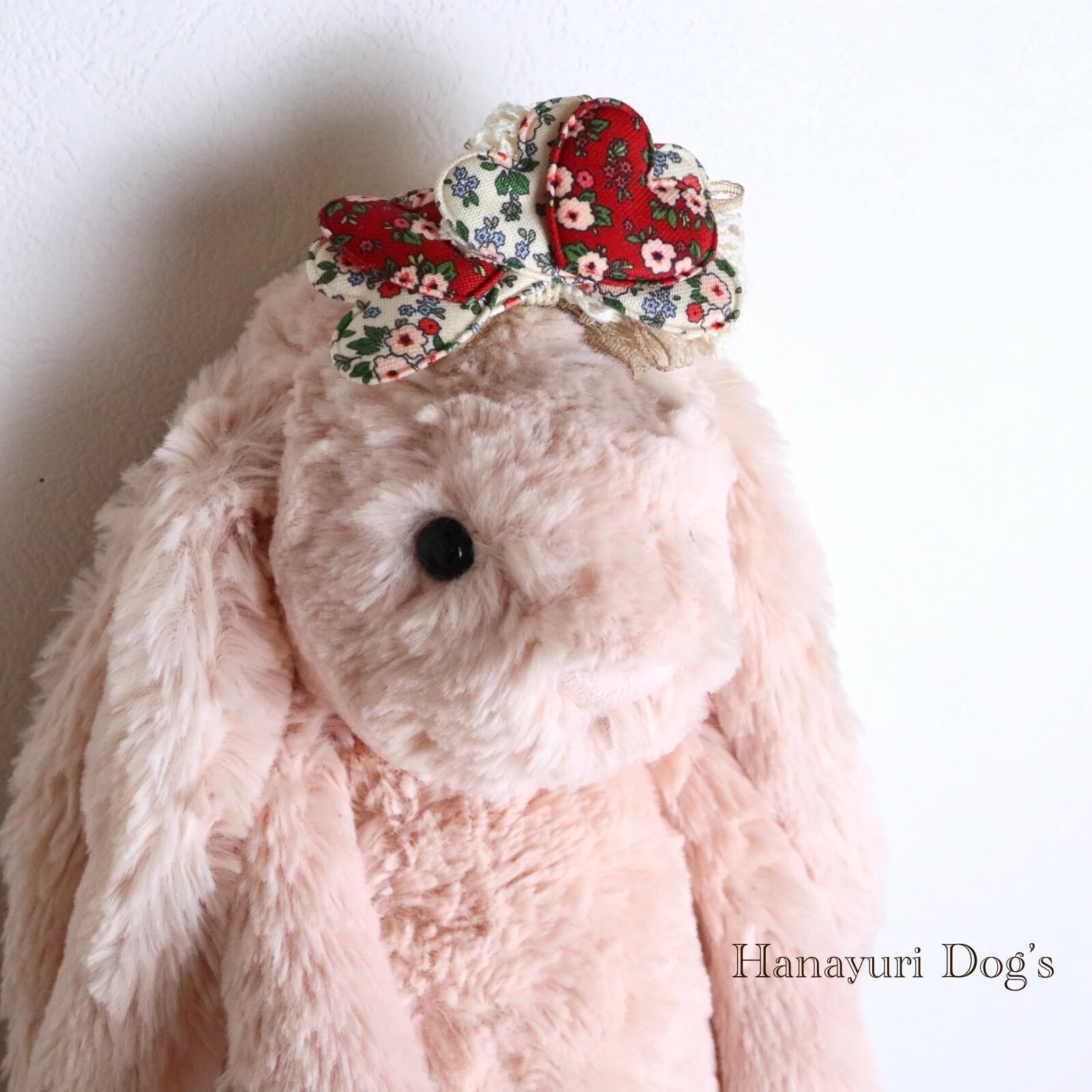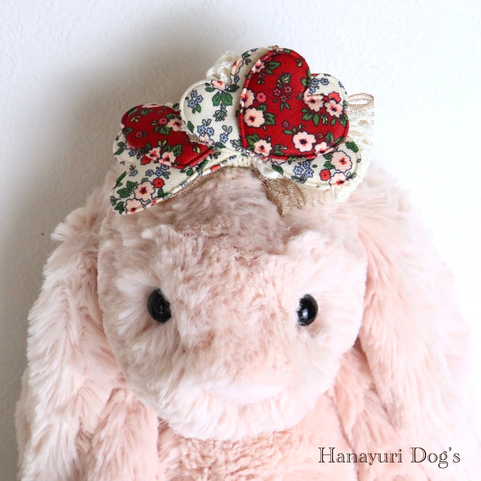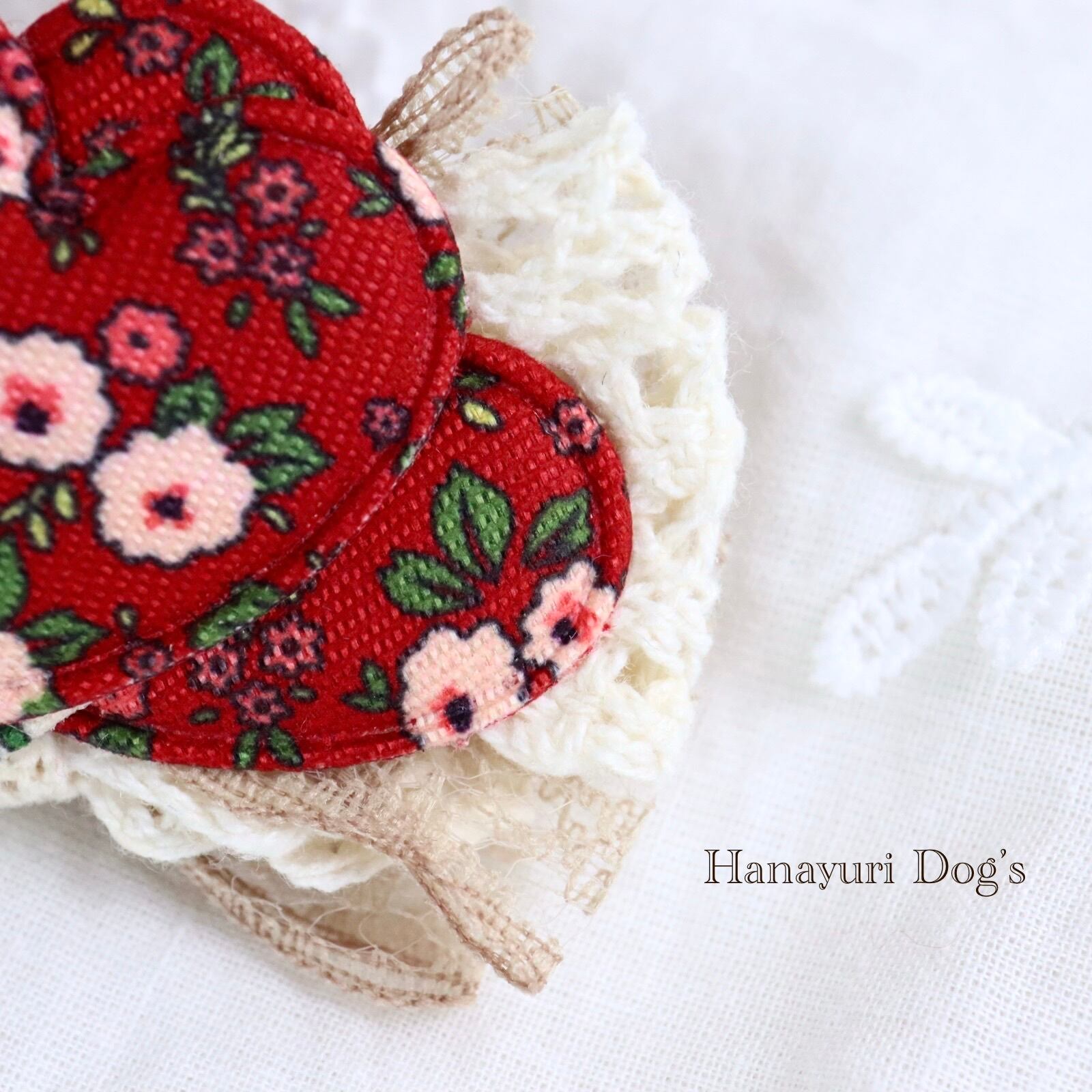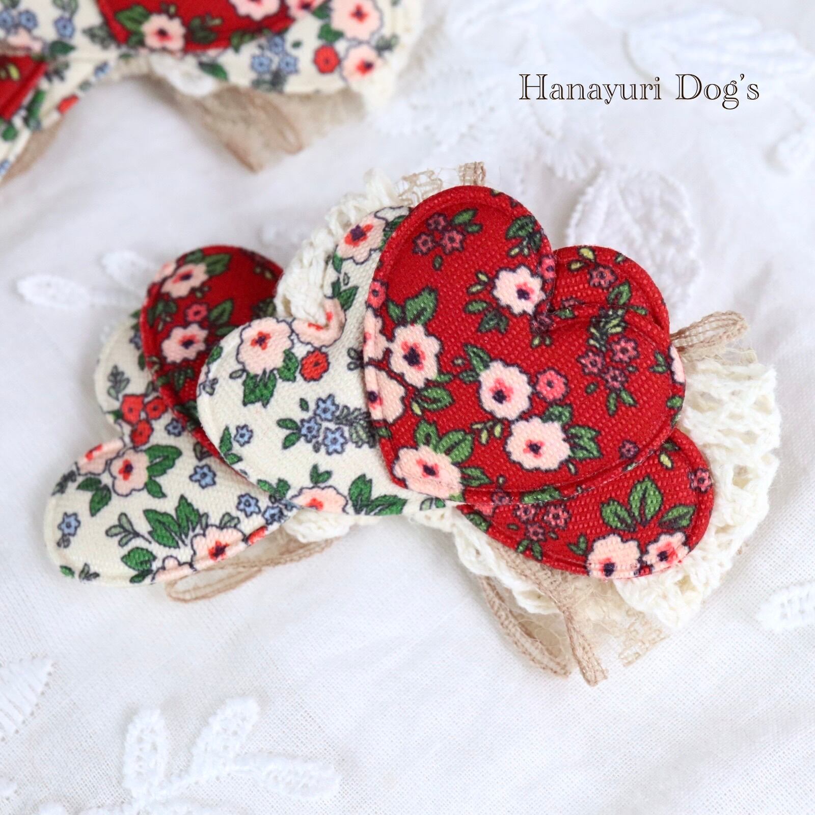 レトロフラワー ハート フレンチシック 2種1P 赤と白 犬バレッタ キッズ・子供リボン ペット ぬいぐるみ ヘアアクセサリー 髪飾り 誕生日 記念日 プレゼント オフ会 うちの子記念日 イベント 撮影