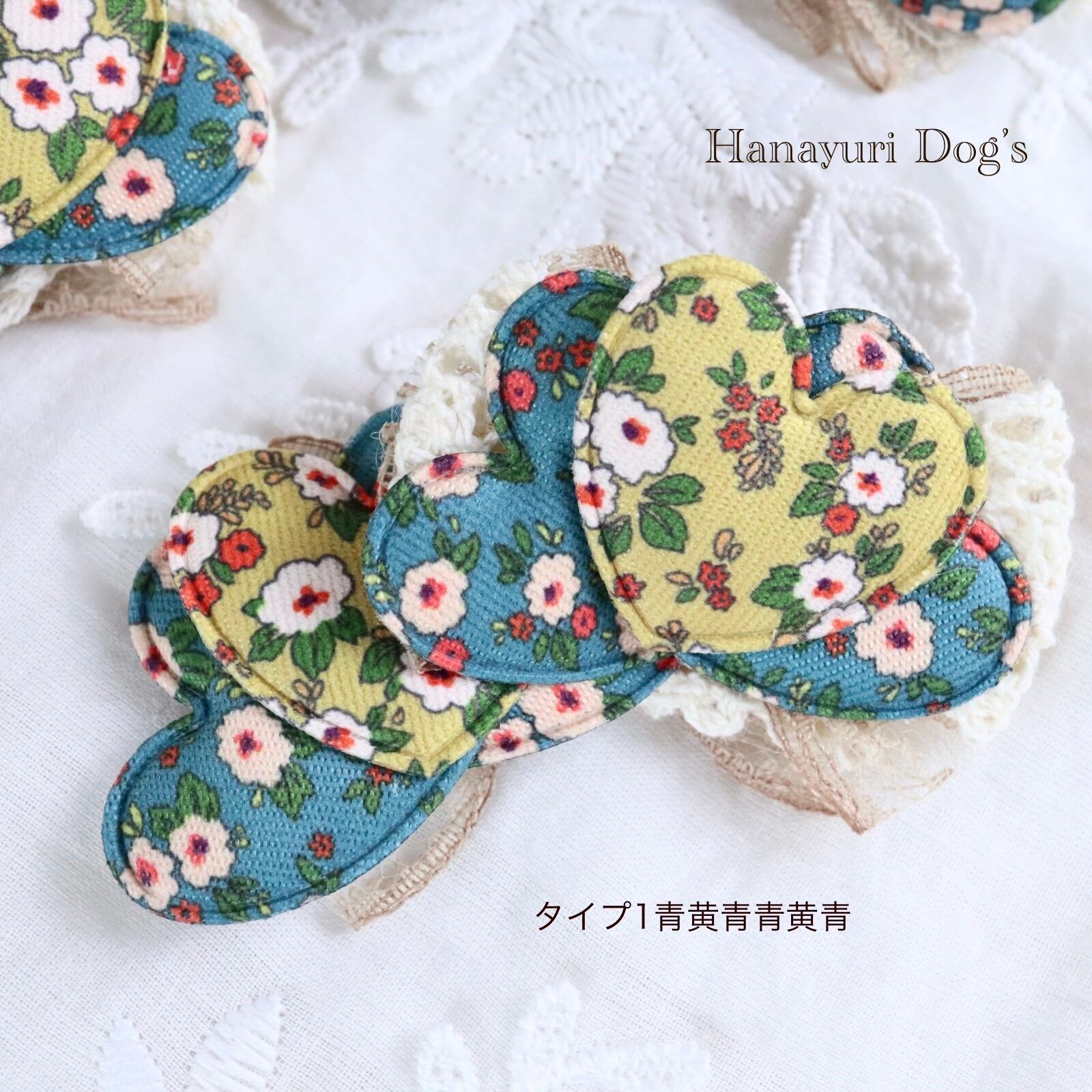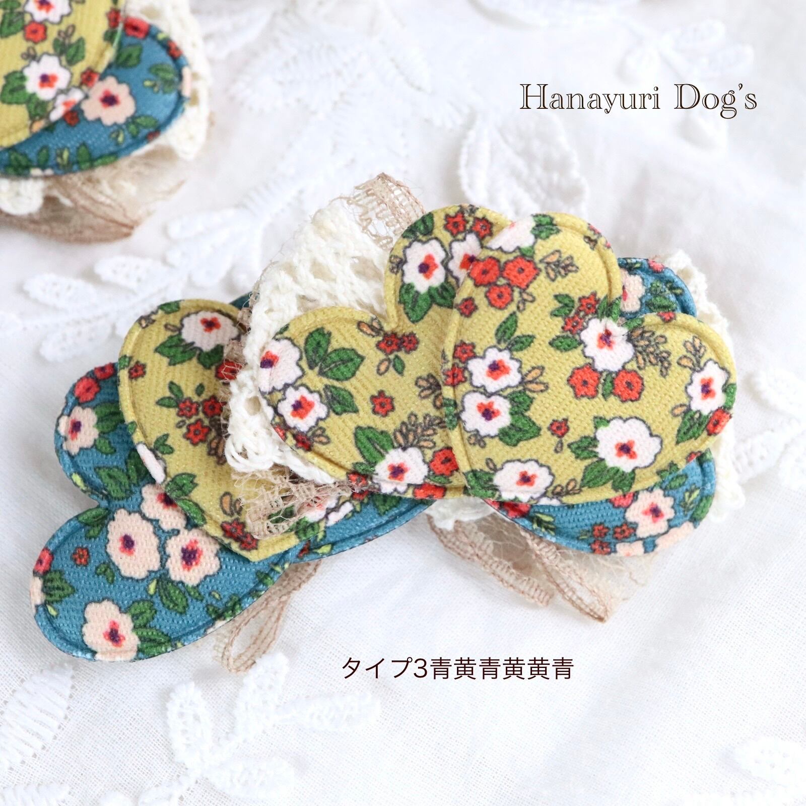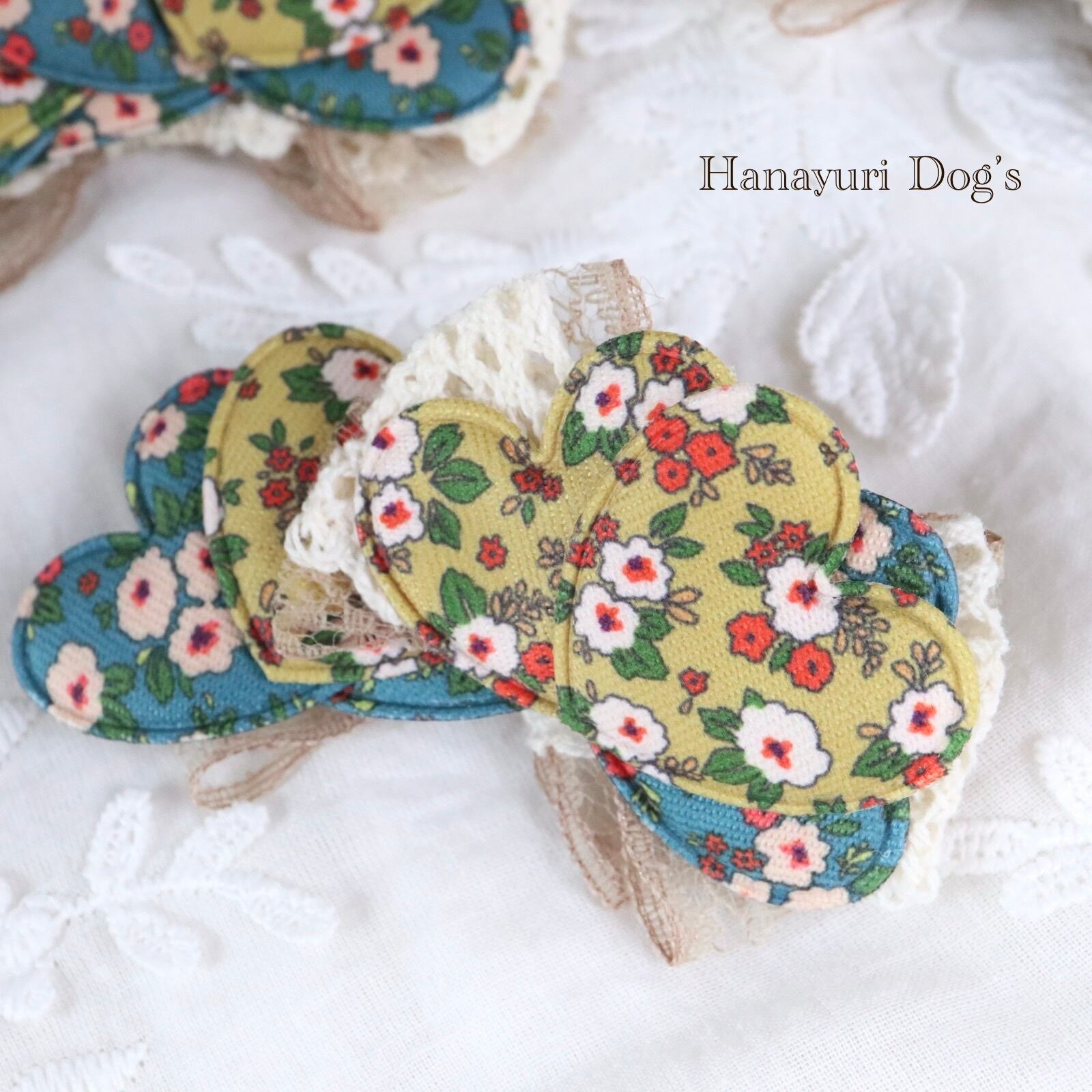 レトロフラワー ハート フレンチシック 3種1P 犬バレッタ キッズ・子供リボン ペット ぬいぐるみ ヘアアクセサリー 髪飾り 誕生日 記念日 プレゼント オフ会 うちの子記念日 イベント 撮影