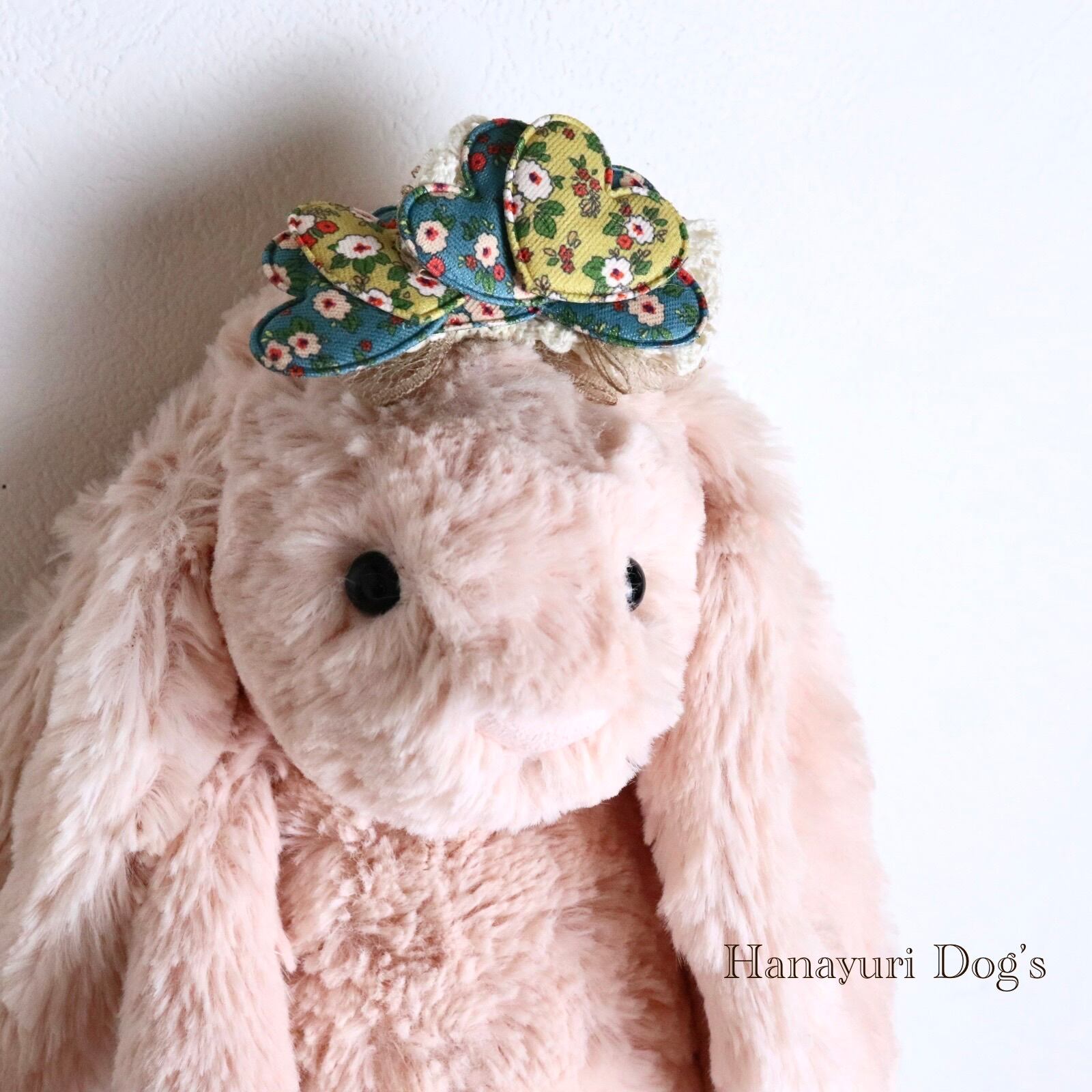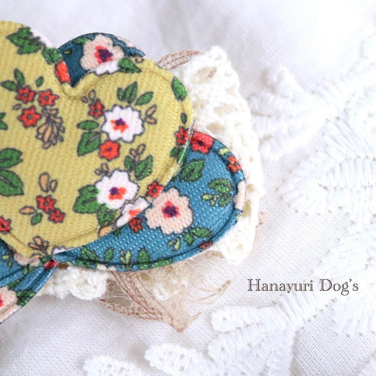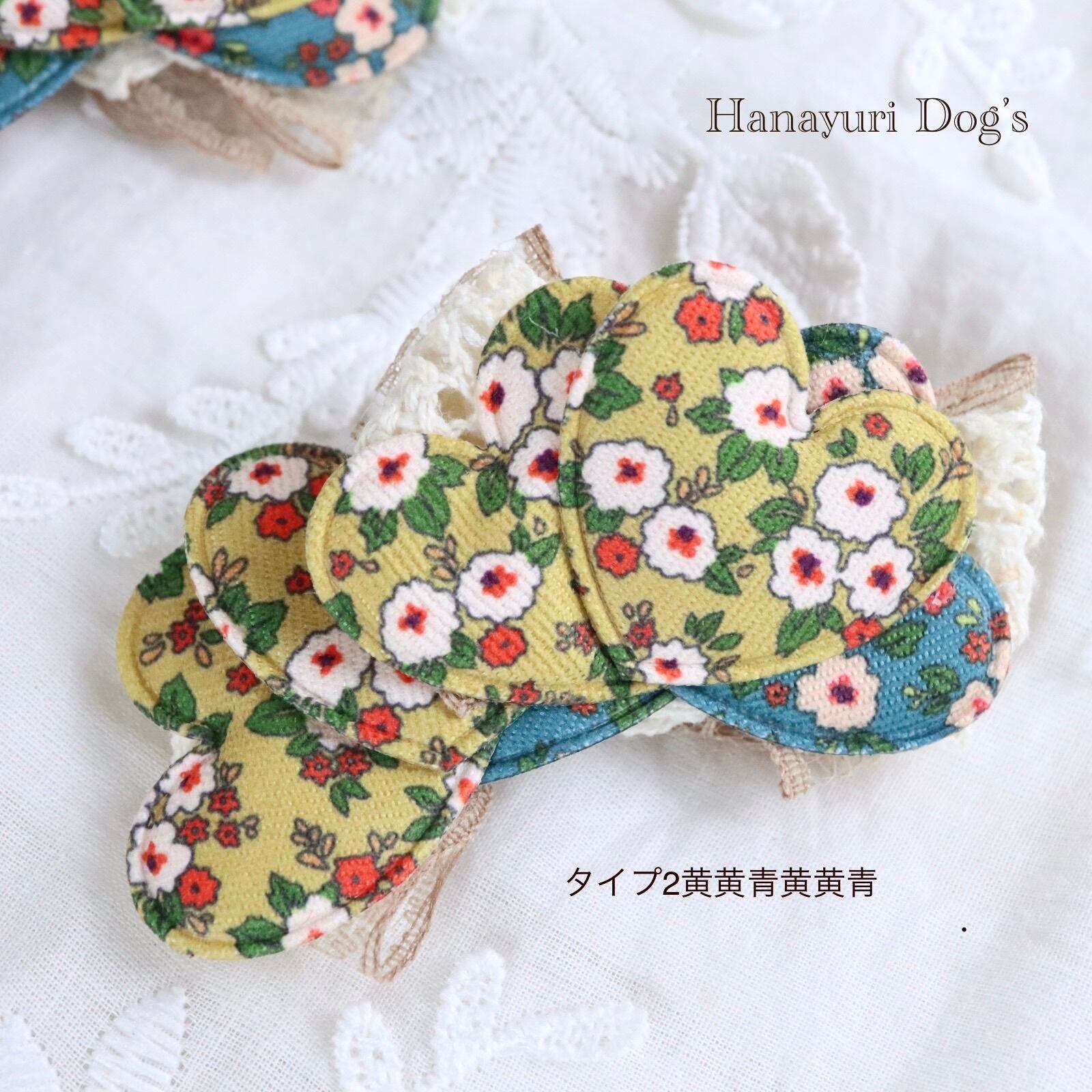 レトロフラワー ハート フレンチシック 3種1P 犬バレッタ キッズ・子供リボン ペット ぬいぐるみ ヘアアクセサリー 髪飾り 誕生日 記念日 プレゼント オフ会 うちの子記念日 イベント 撮影