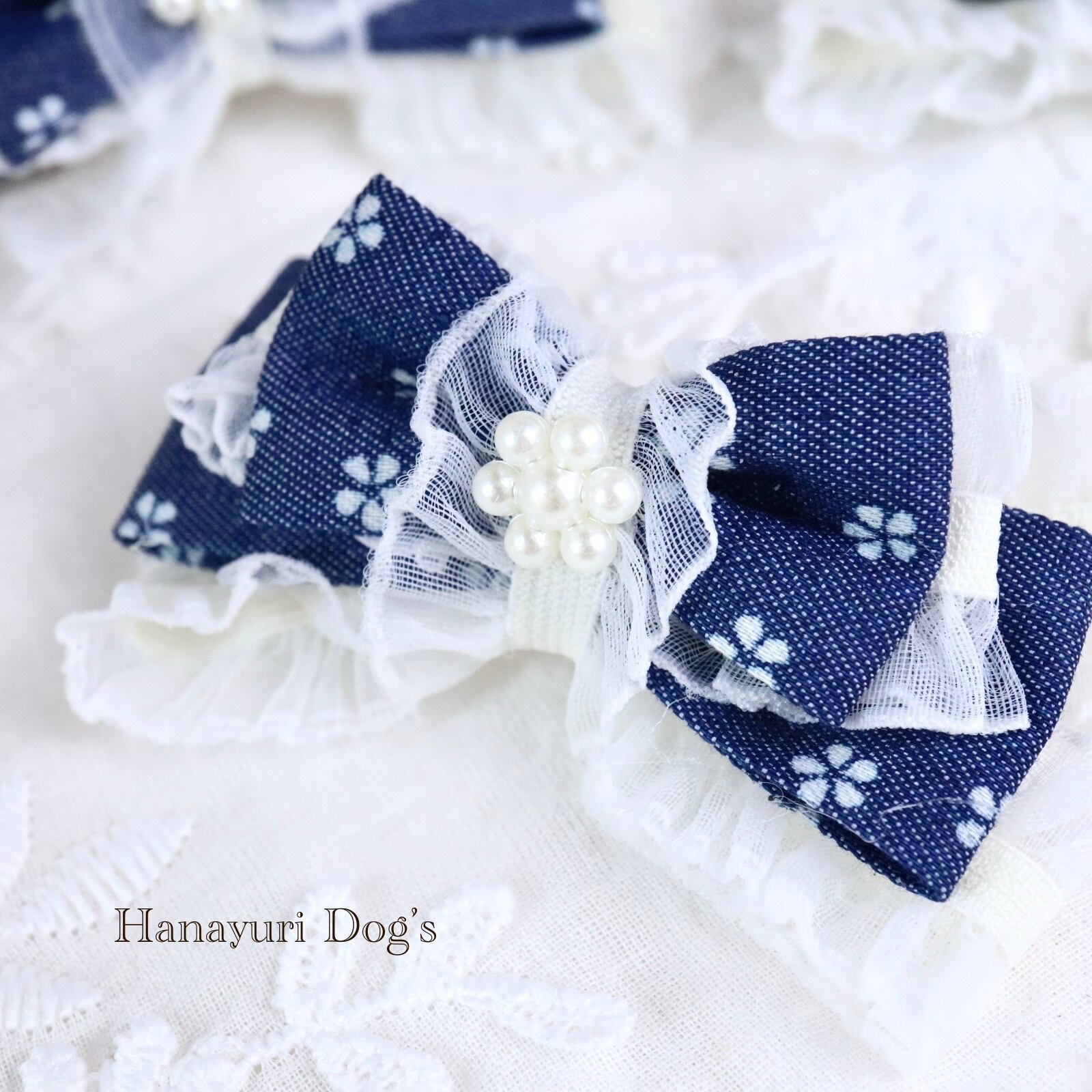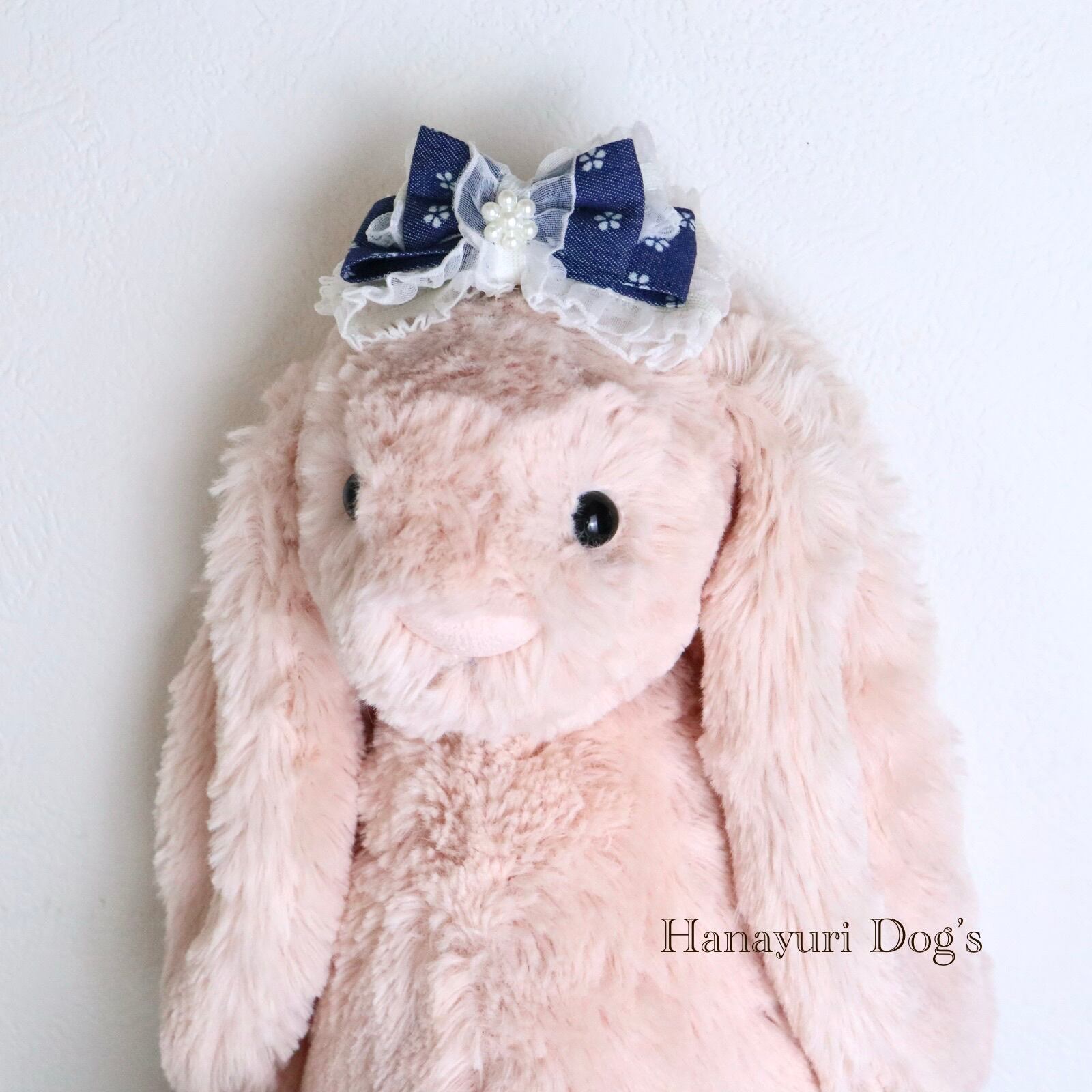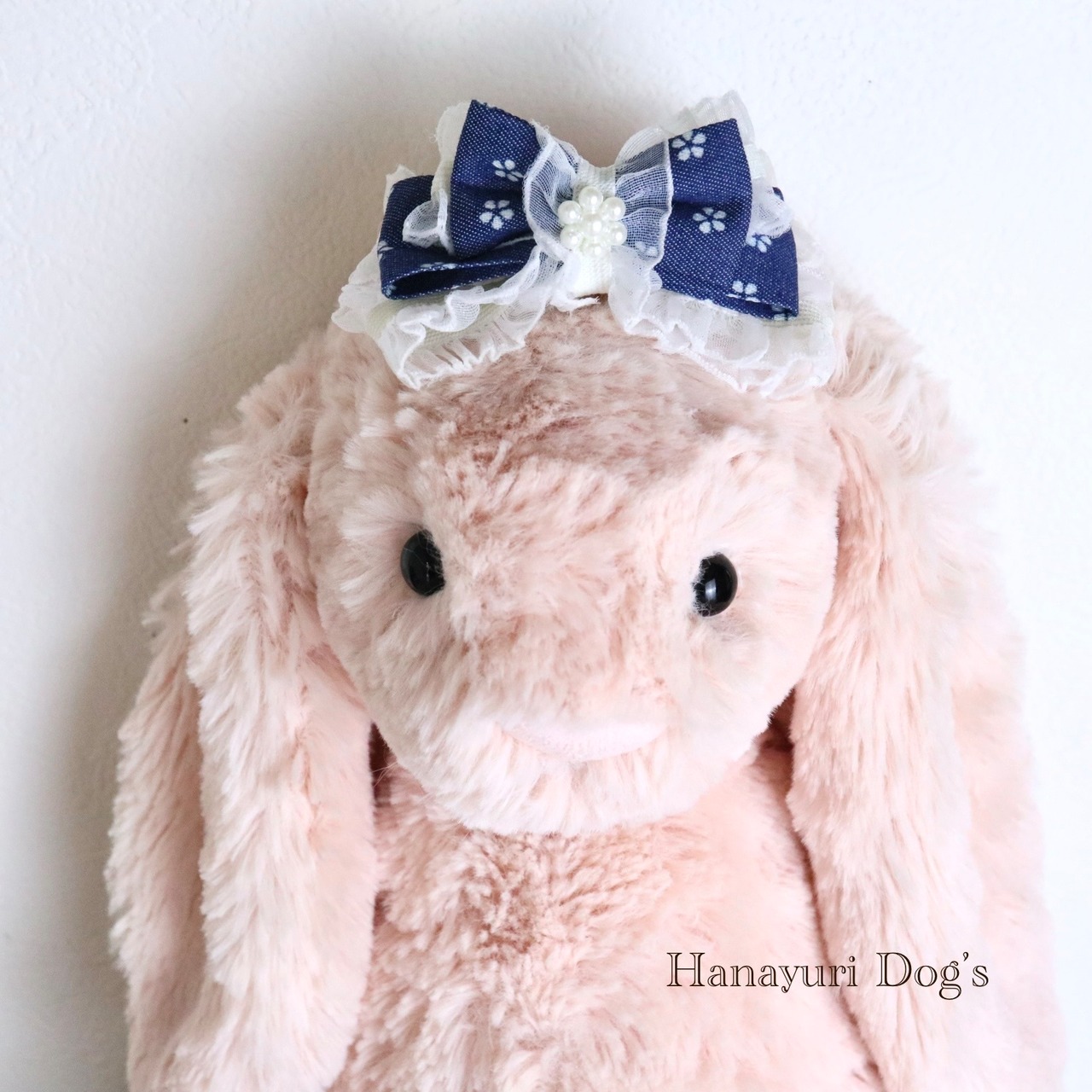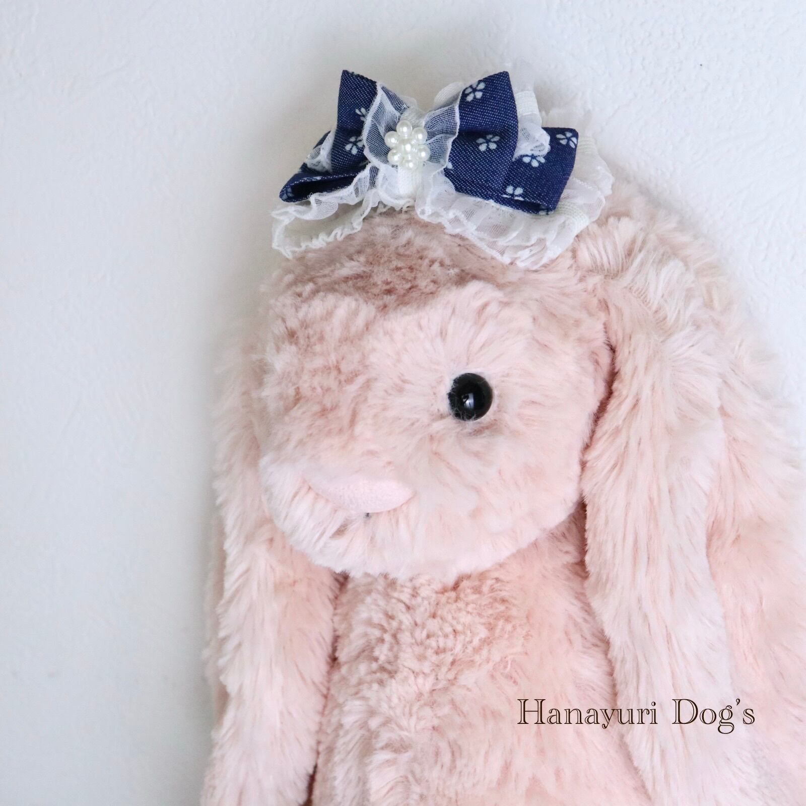 フェミニンデニム タイプ2 パール 犬バレッタ キッズ・子供リボン ペット ぬいぐるみ ヘアアクセサリー 髪飾り 誕生日 記念日 プレゼント オフ会 うちの子記念日 イベント 撮影