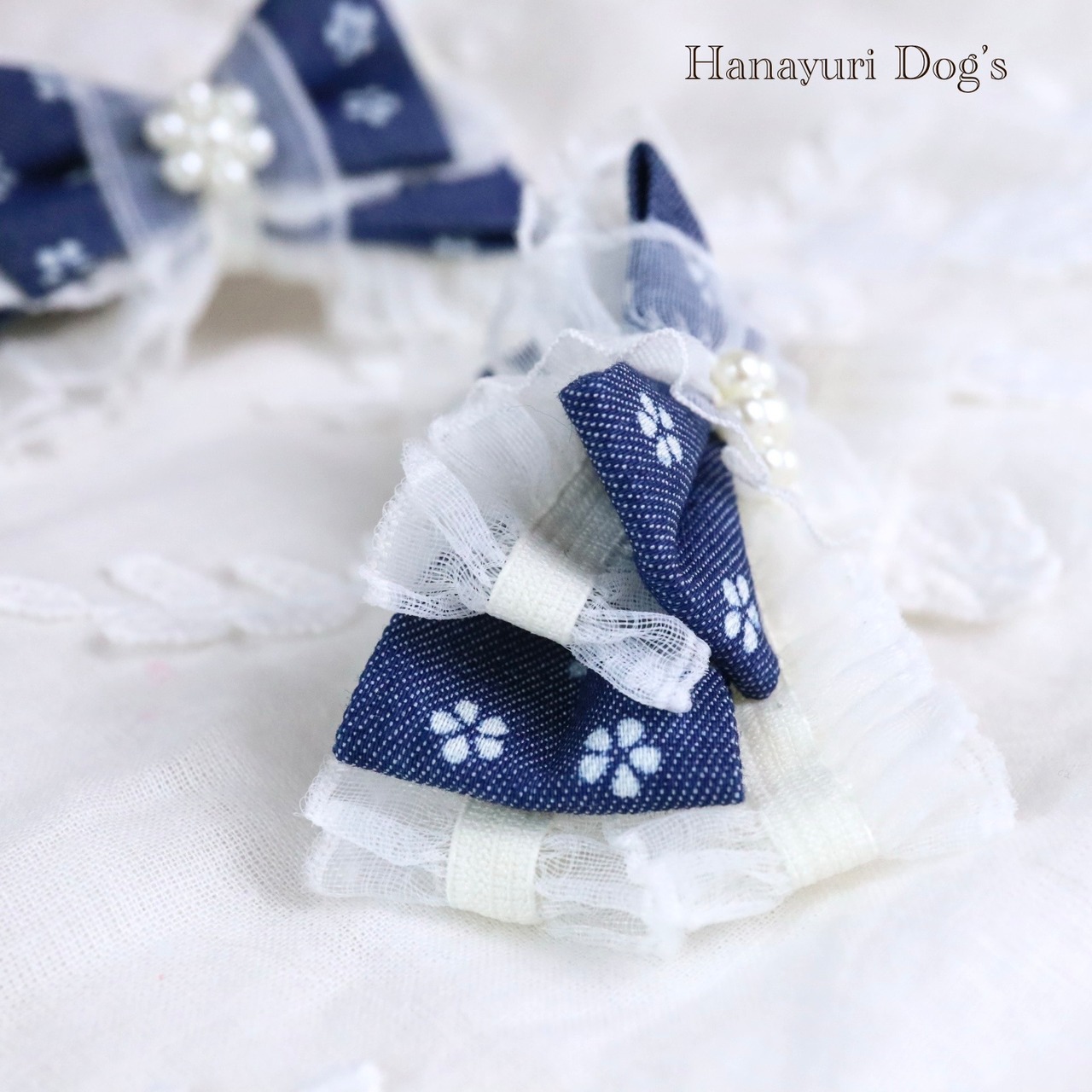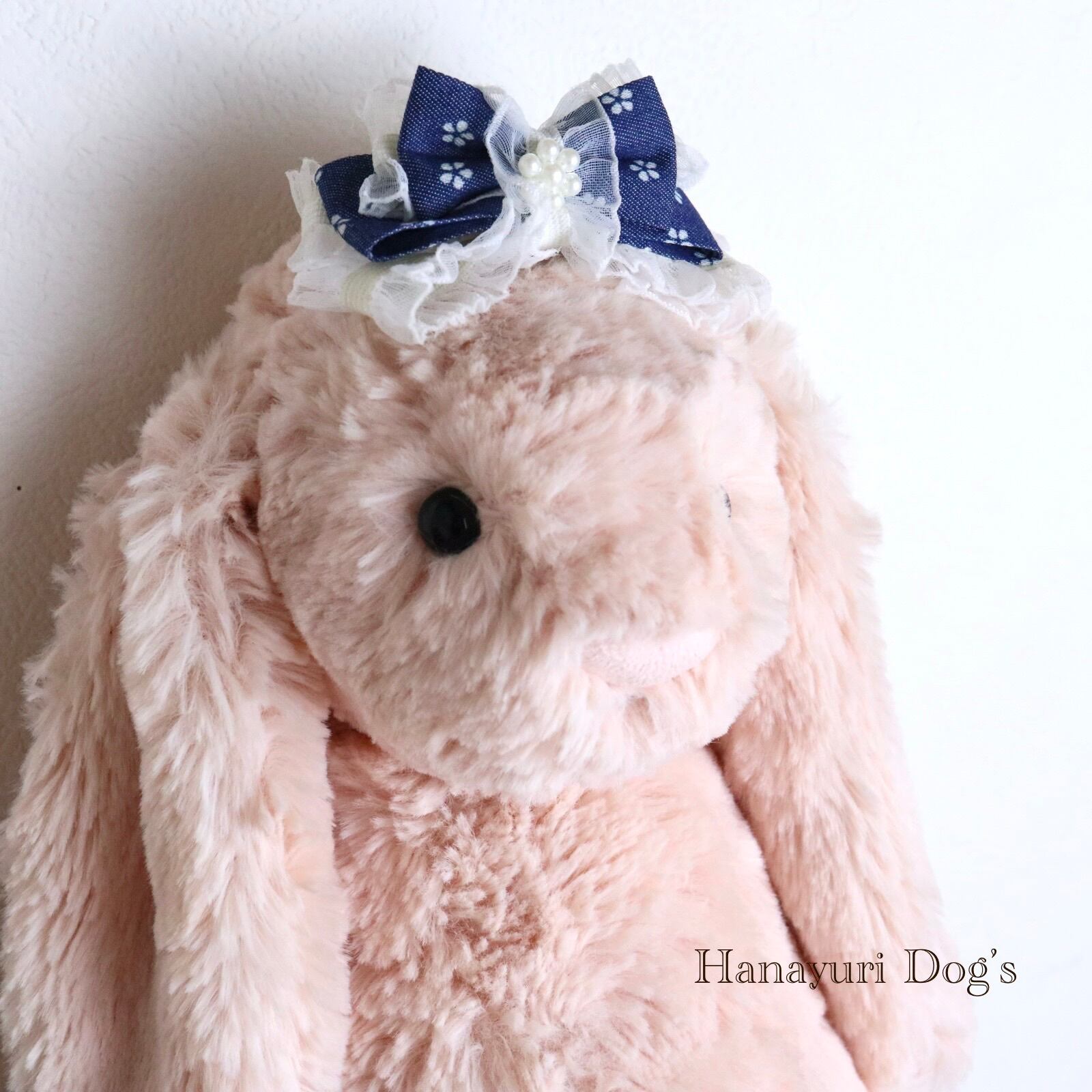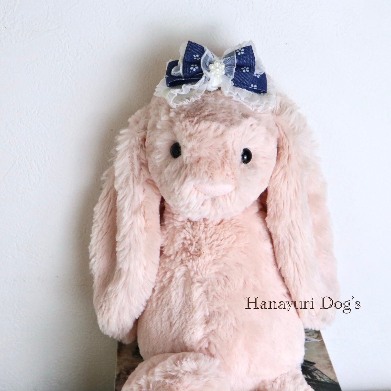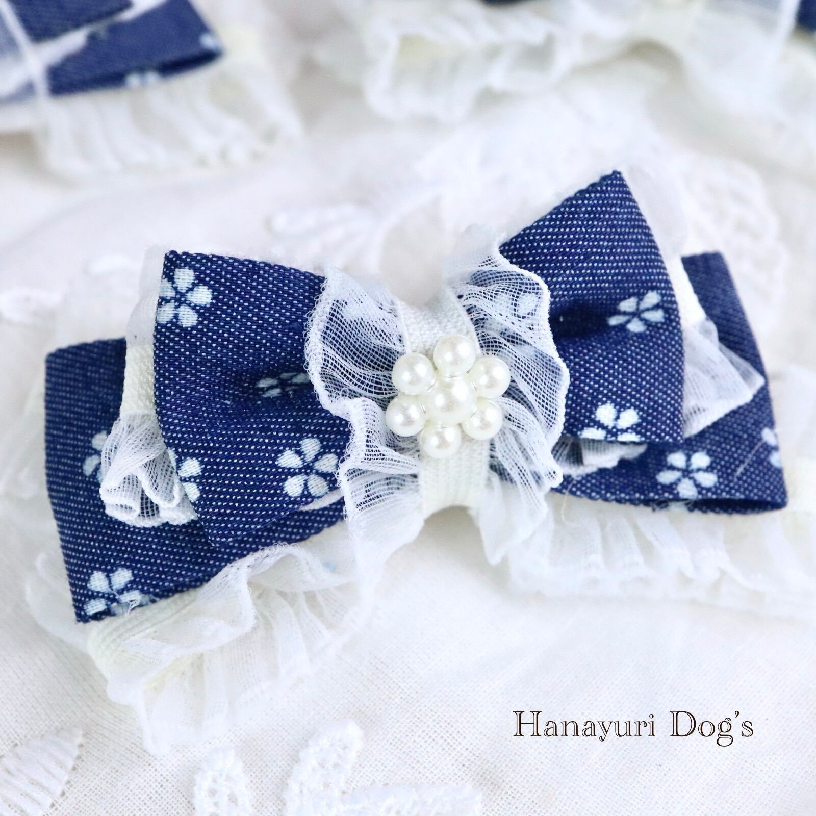 フェミニンデニム タイプ2 パール 犬バレッタ キッズ・子供リボン ペット ぬいぐるみ ヘアアクセサリー 髪飾り 誕生日 記念日 プレゼント オフ会 うちの子記念日 イベント 撮影