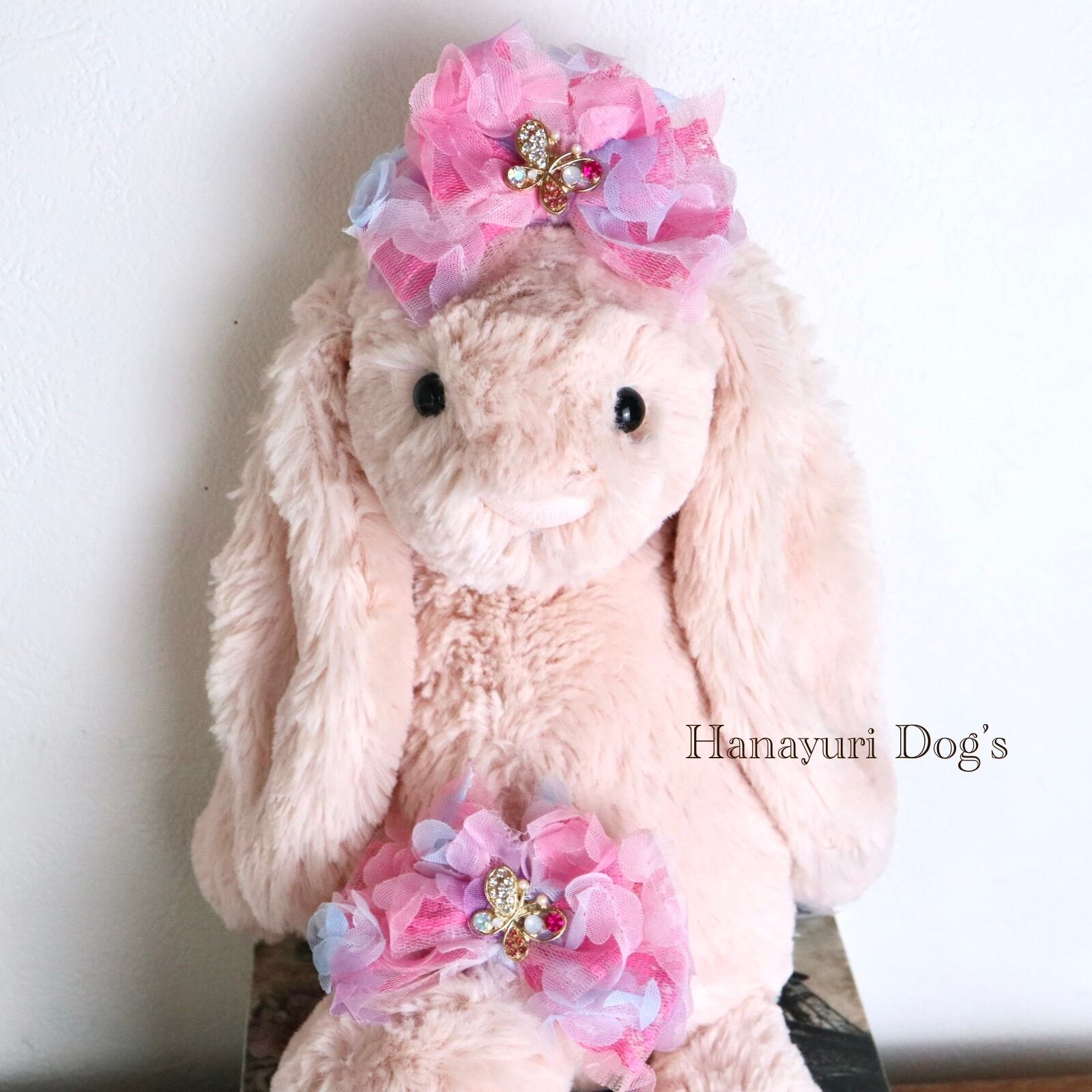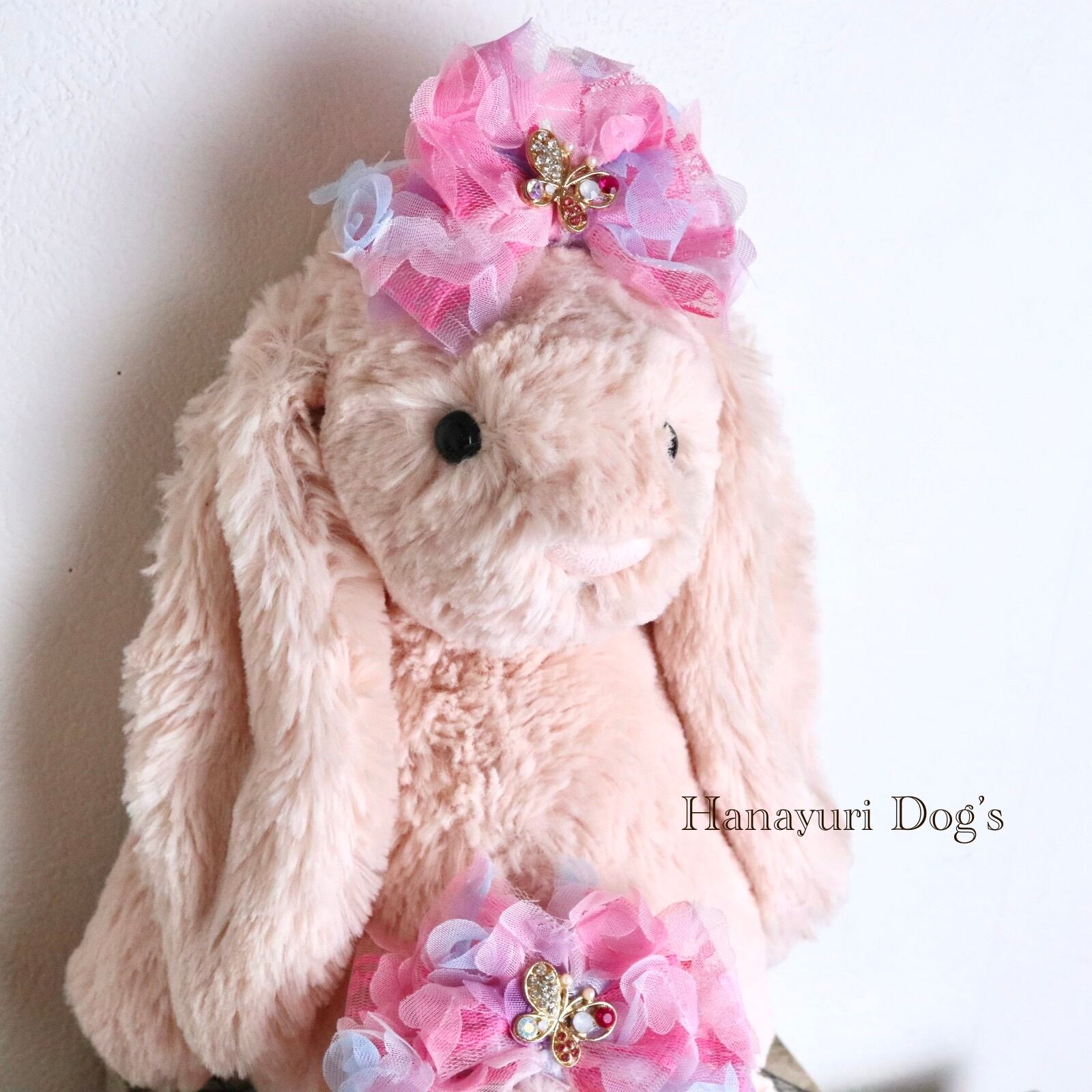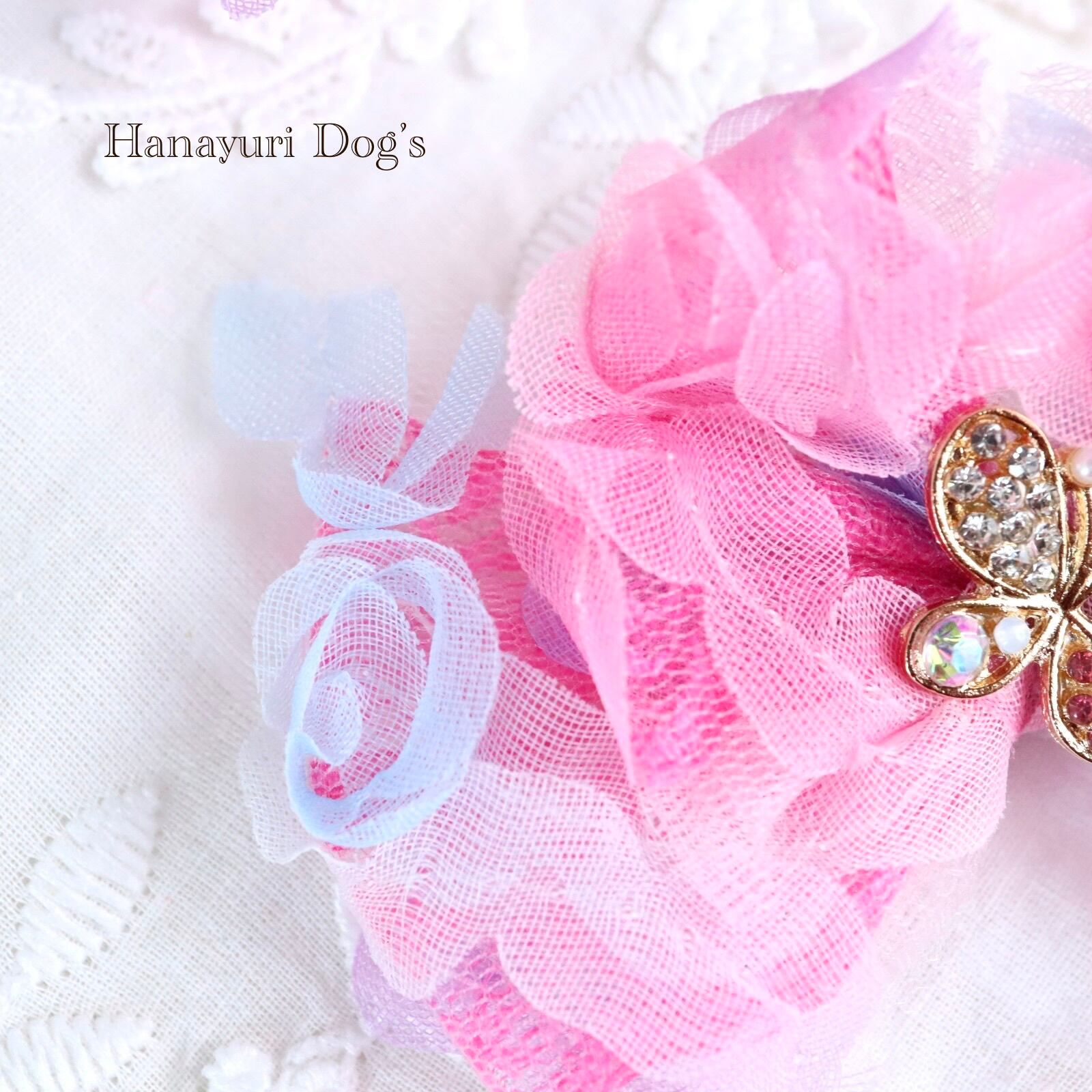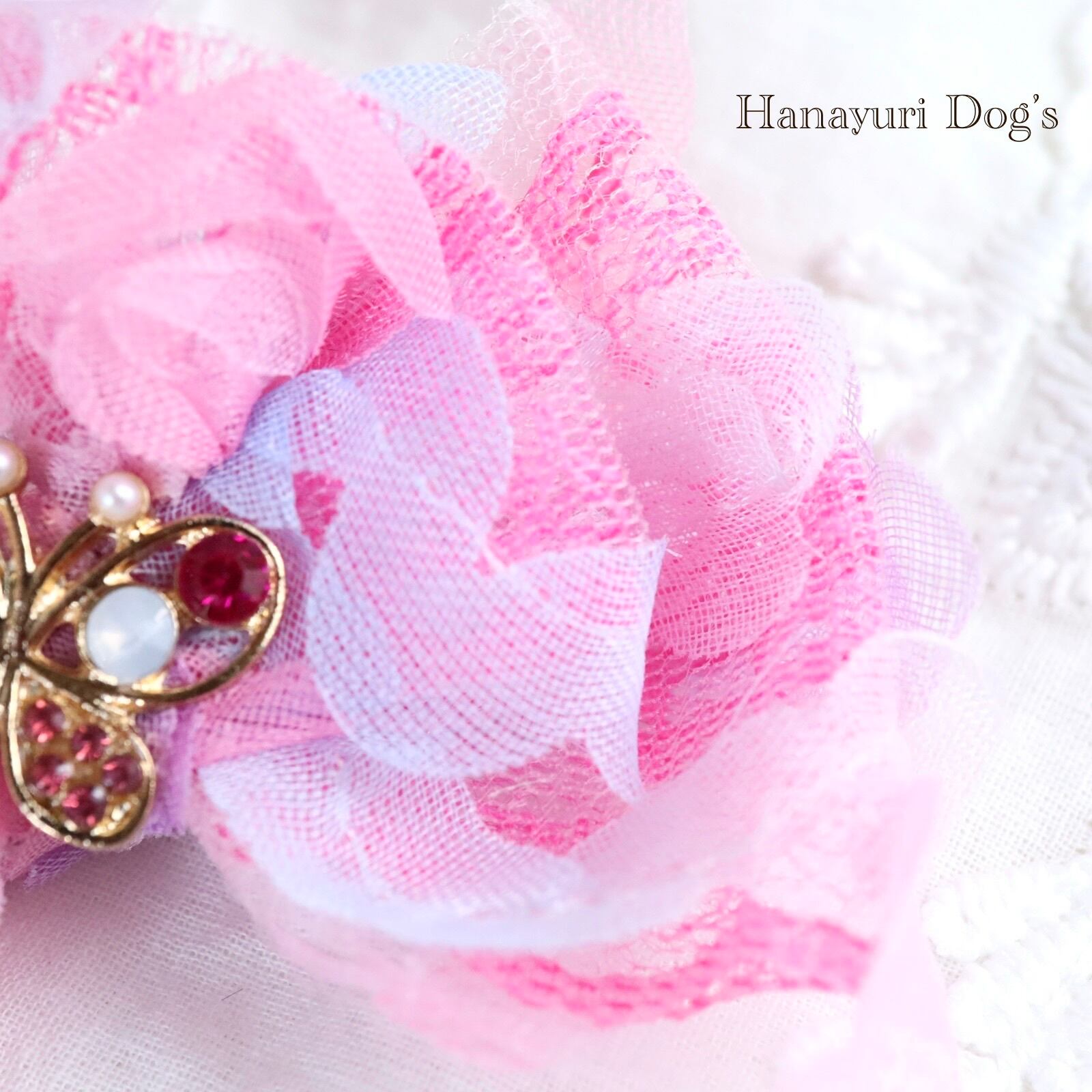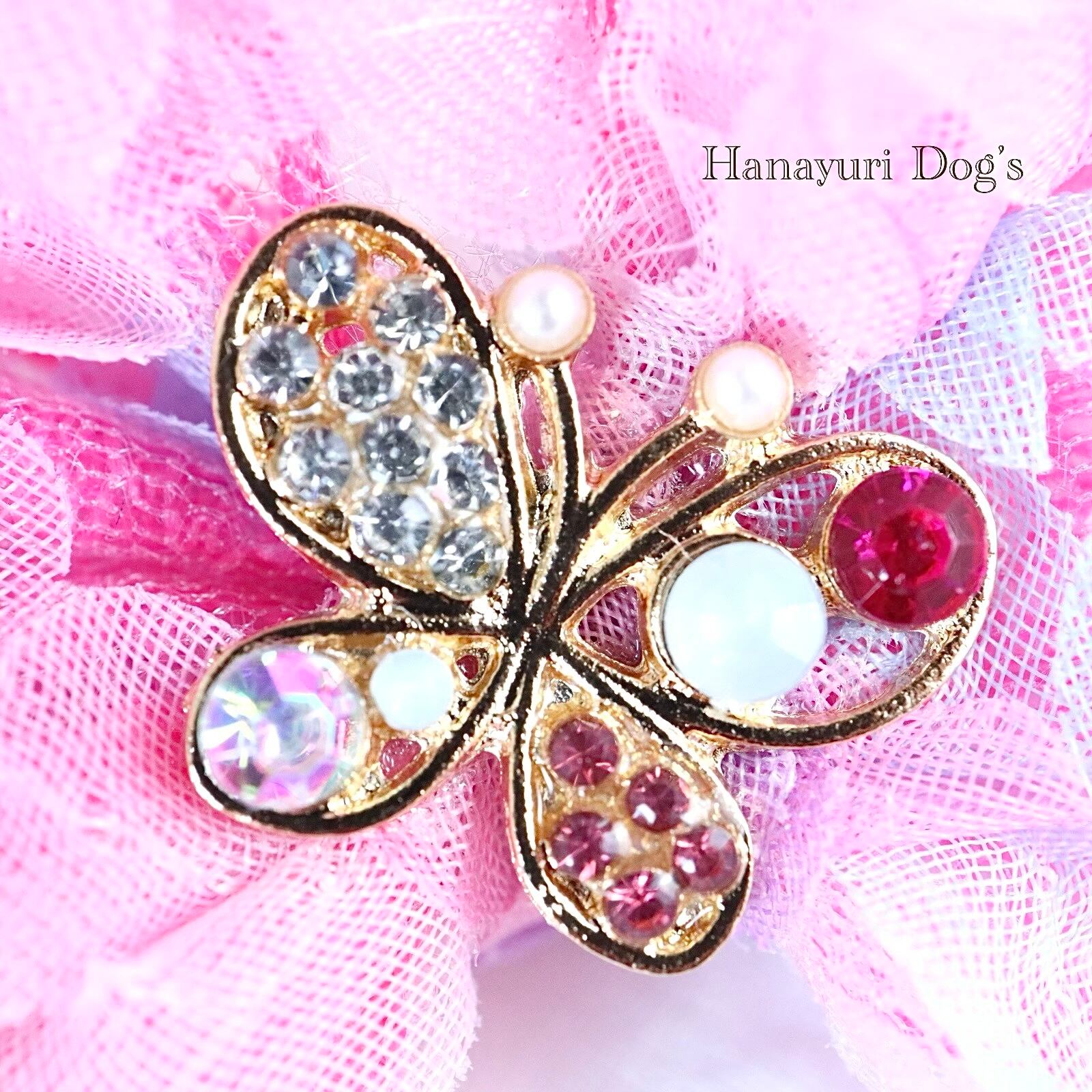 チュール重ね ピンク 蝶 犬バレッタ キッズ・子供リボン ペット ぬいぐるみ ヘアアクセサリー 髪飾り 誕生日 記念日 プレゼント オフ会 うちの子記念日 イベント 撮影