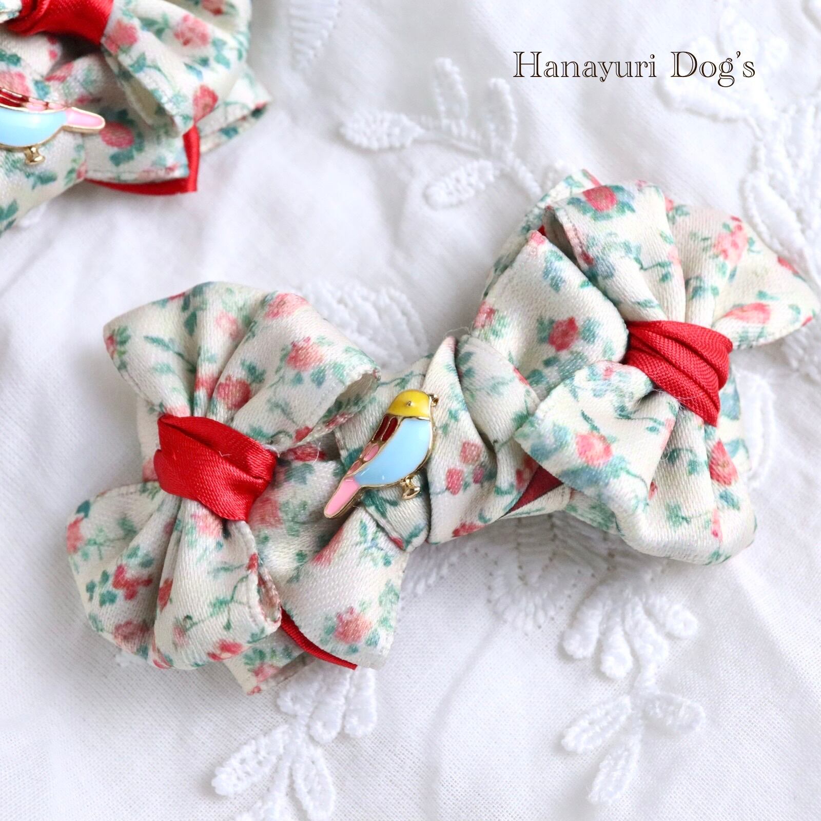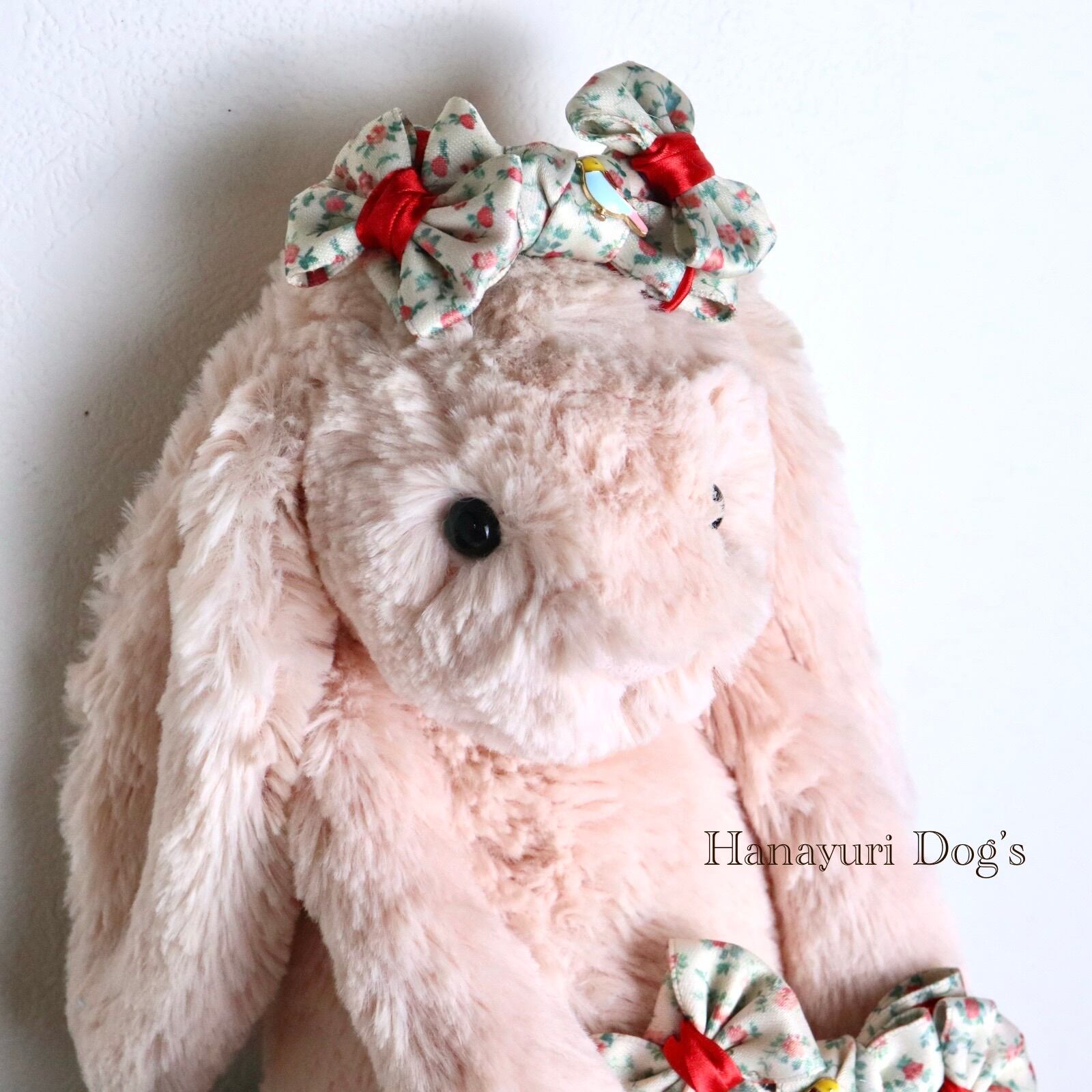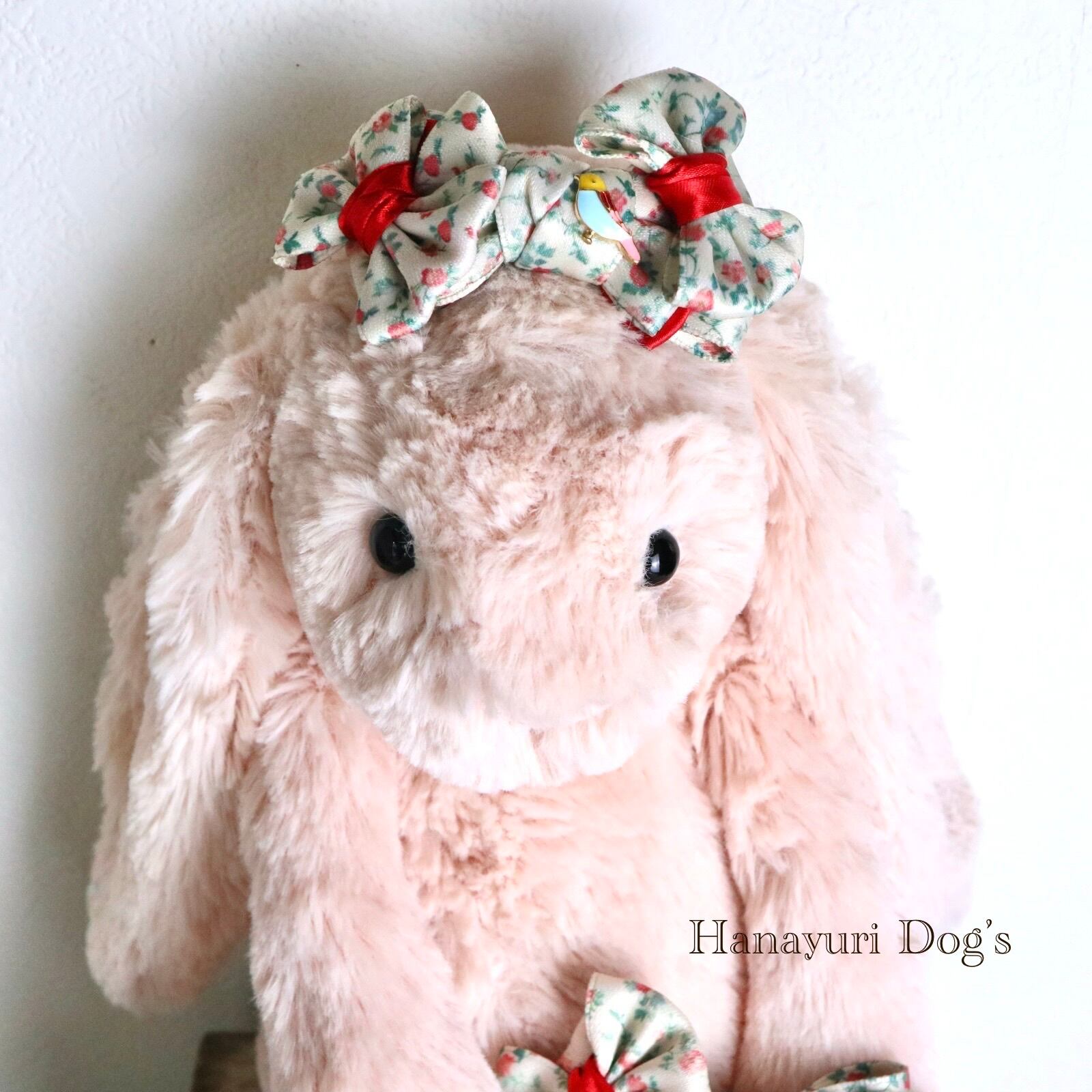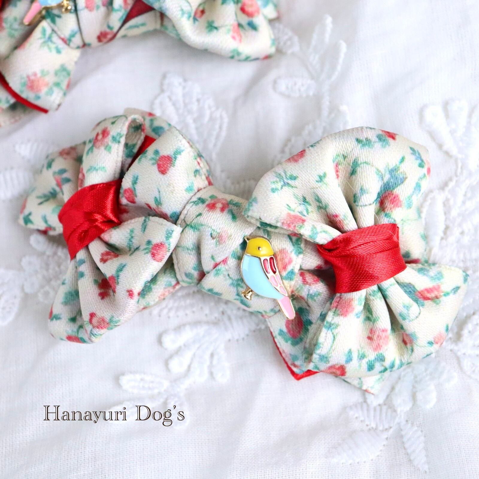花柄 鳥 犬バレッタ キッズ・子供リボン ペット ぬいぐるみ ヘアアクセサリー 髪飾り 誕生日 記念日 プレゼント オフ会 うちの子記念日 イベント 撮影