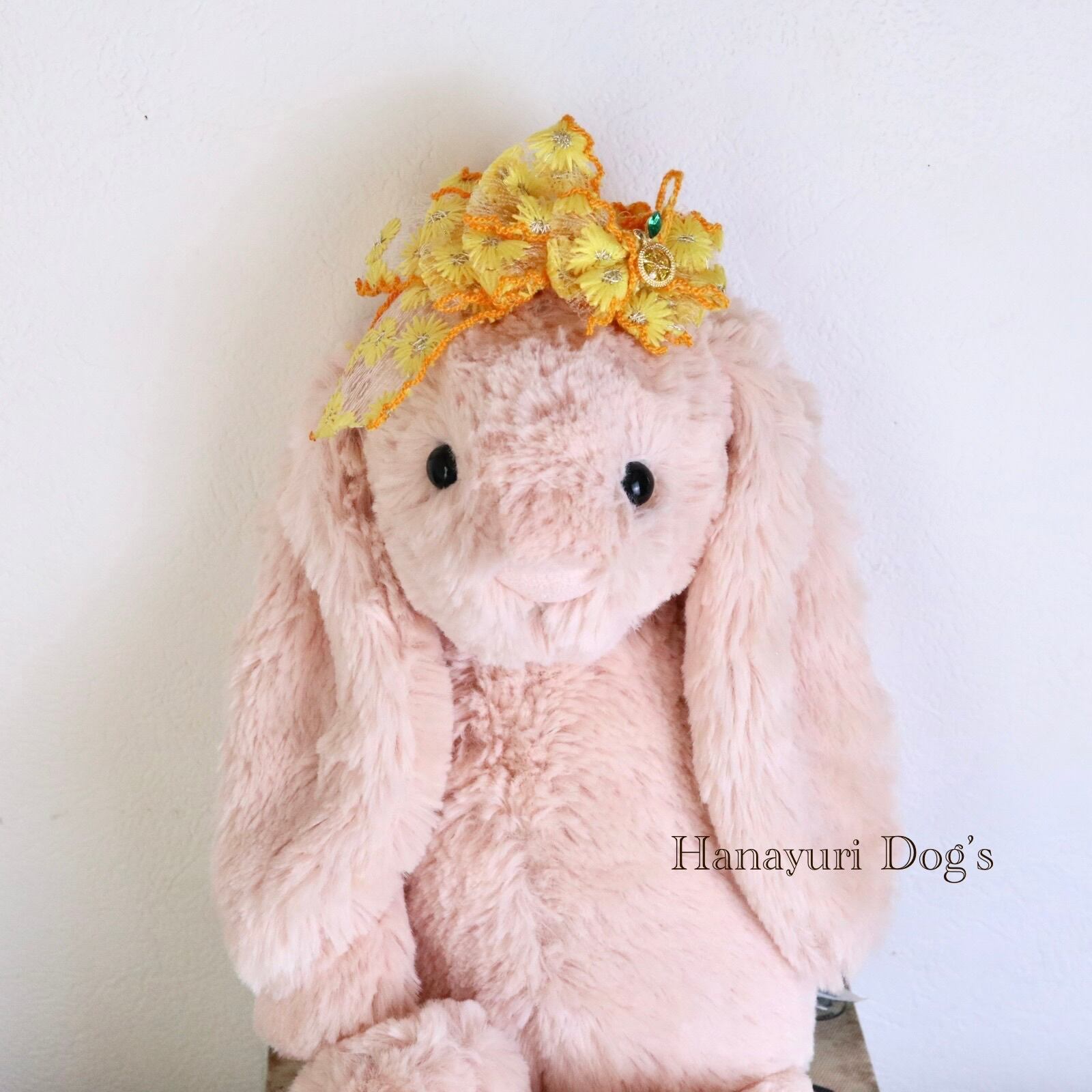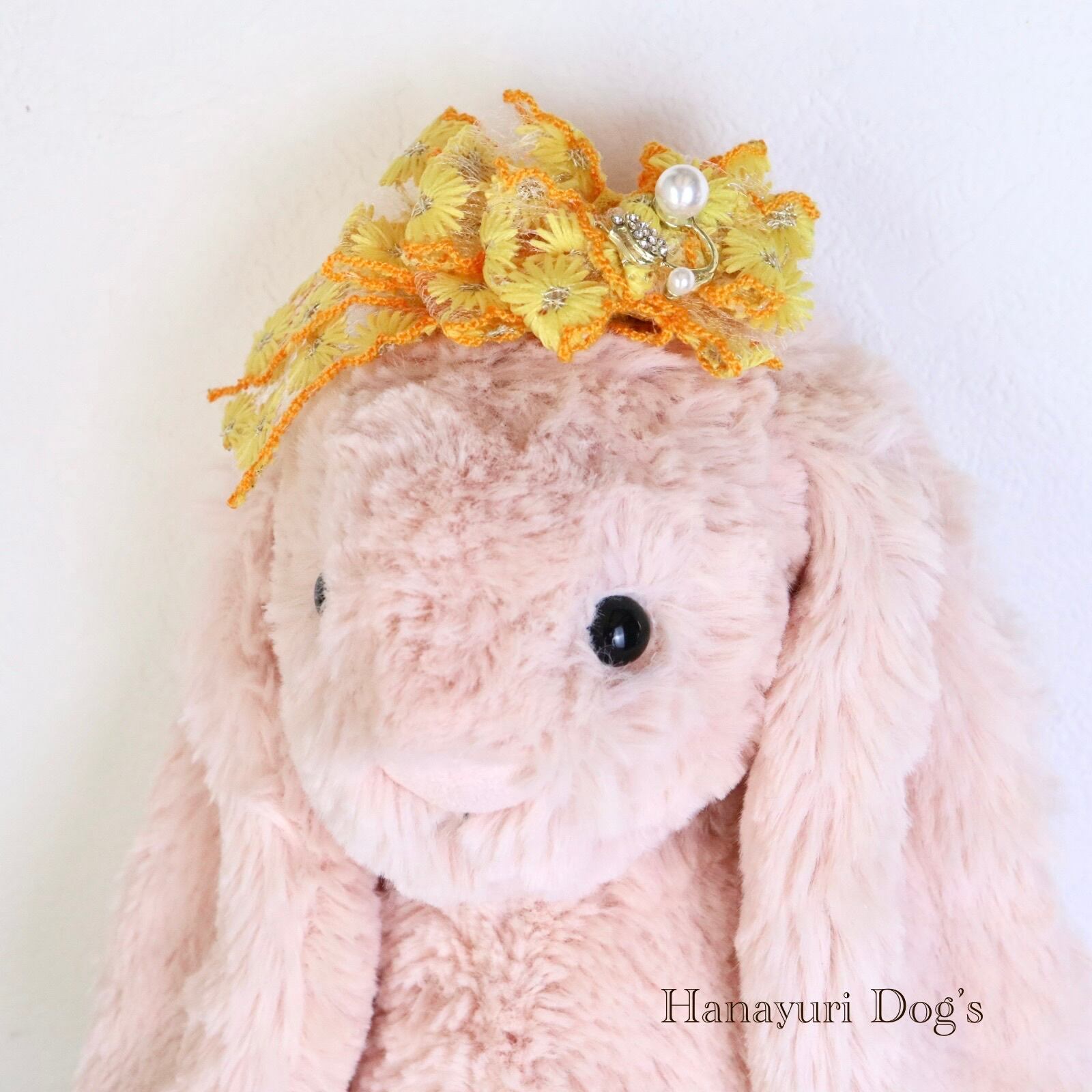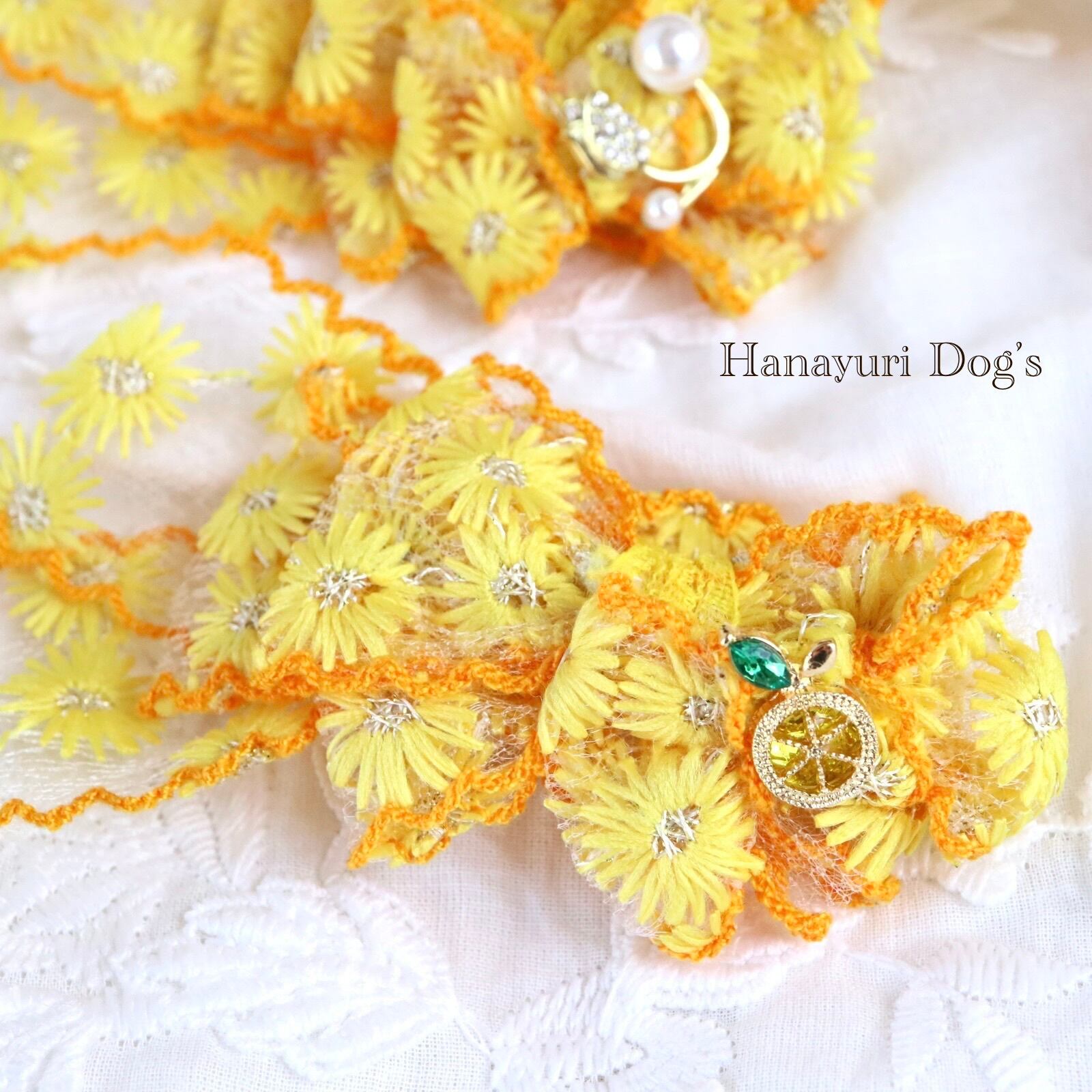 黄色チュール オレンジ 花刺繍 オレンジ チューリップ 犬バレッタ キッズ・子供リボン ペット ぬいぐるみ ヘアアクセサリー 髪飾り 誕生日 記念日 プレゼント オフ会 うちの子記念日 イベント 撮影