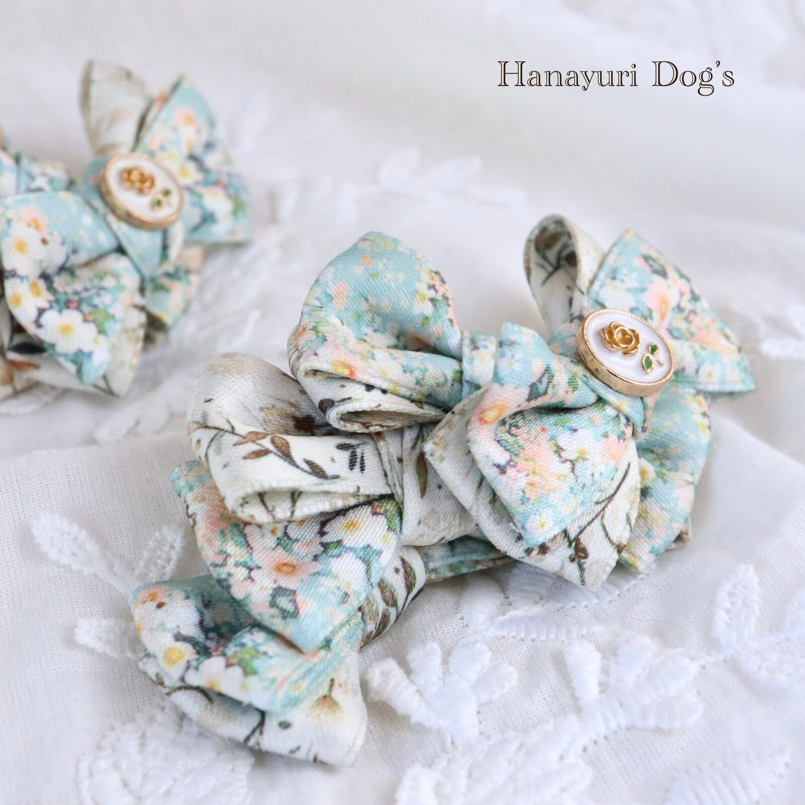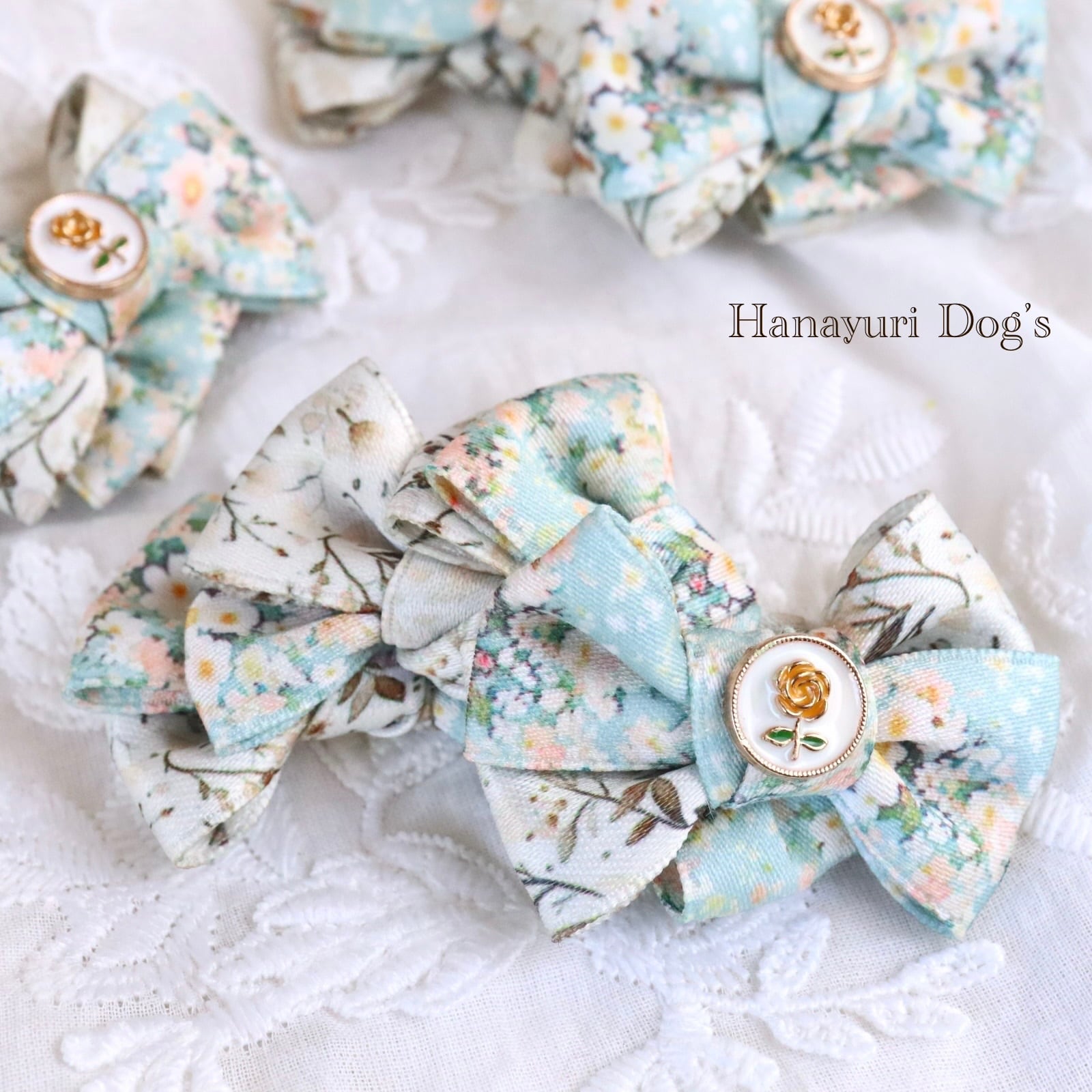 フレンチシック 花柄 バラビジュー 犬バレッタ キッズ・子供リボン ペット ぬいぐるみ ヘアアクセサリー 髪飾り 誕生日 記念日 プレゼント オフ会 うちの子記念日 イベント 撮影