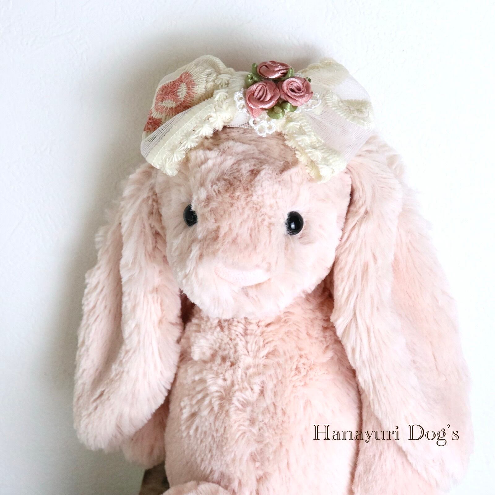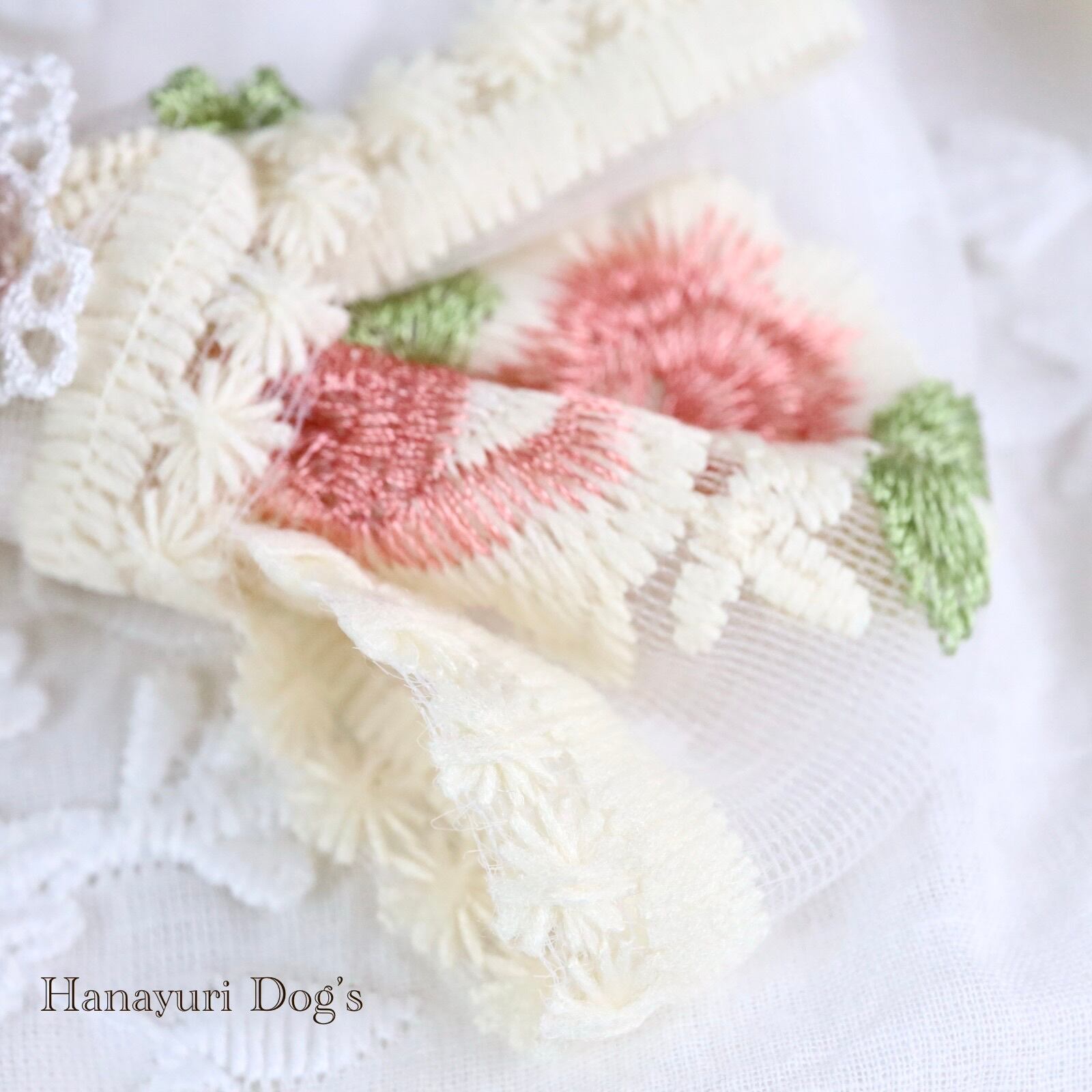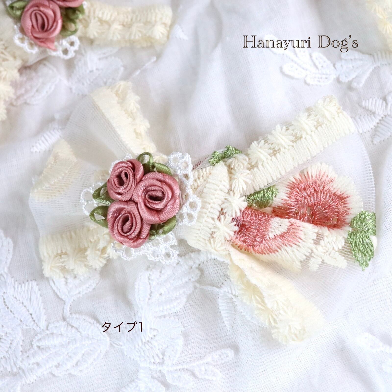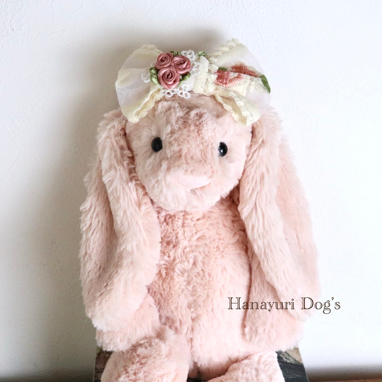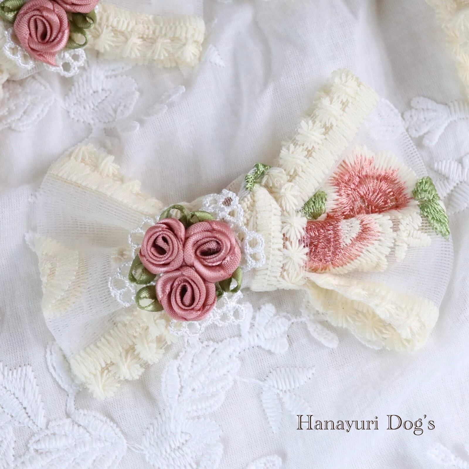 刺繍チュール 薔薇 大きいサイズ バラ ばら 犬バレッタ キッズ・子供リボン ペット ぬいぐるみ ヘアアクセサリー 髪飾り 誕生日 記念日 プレゼント オフ会 うちの子記念日 イベント 撮影
