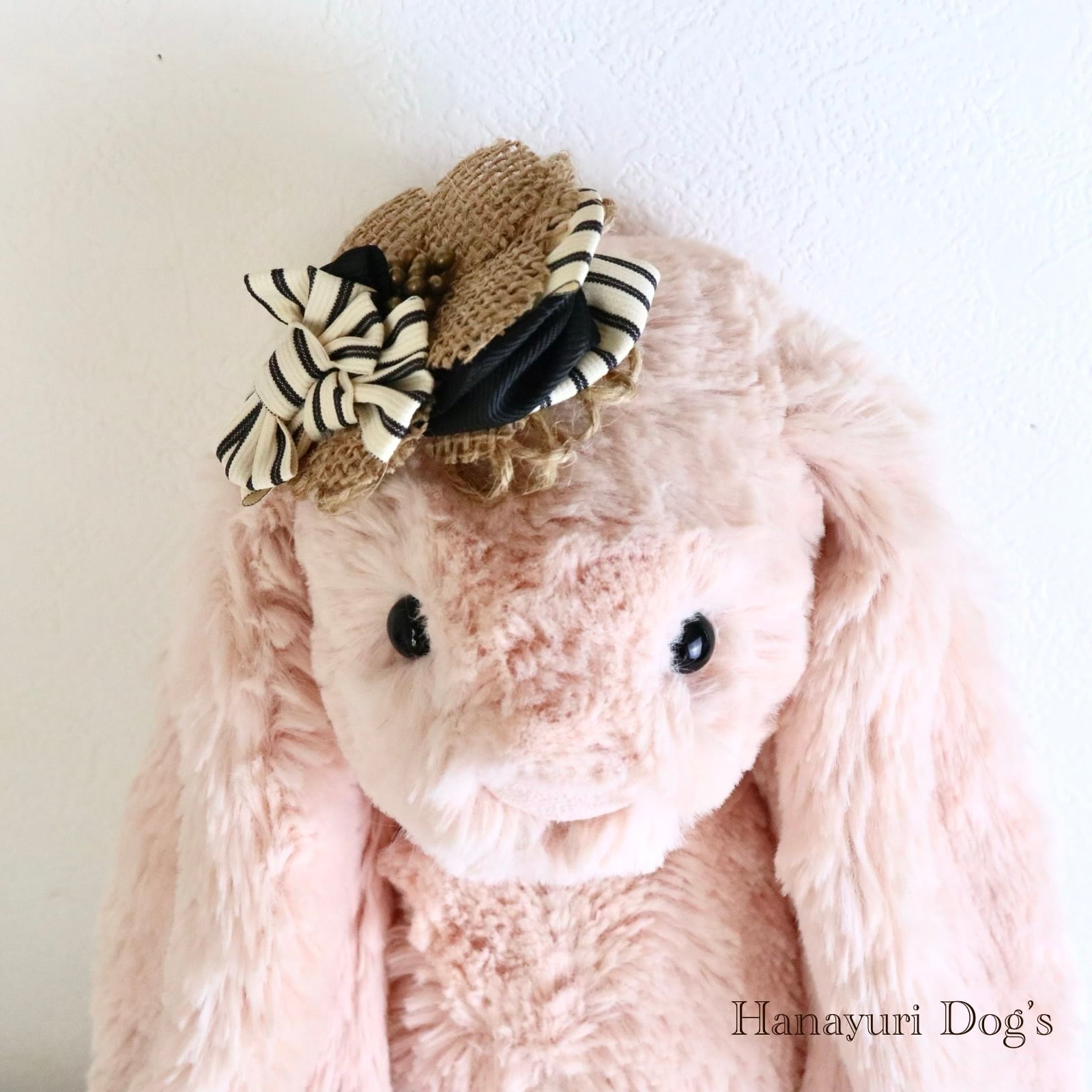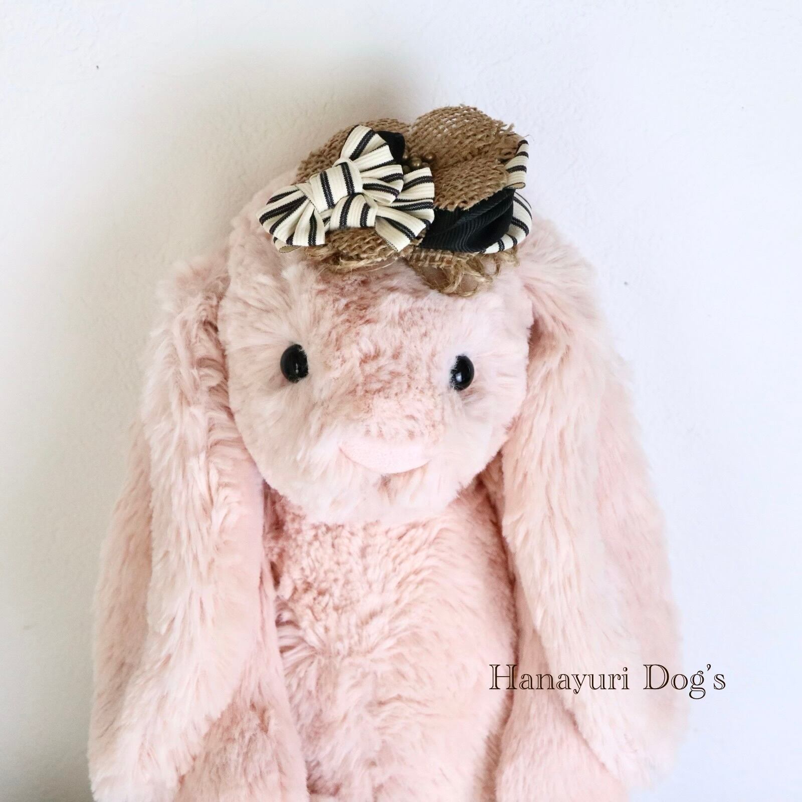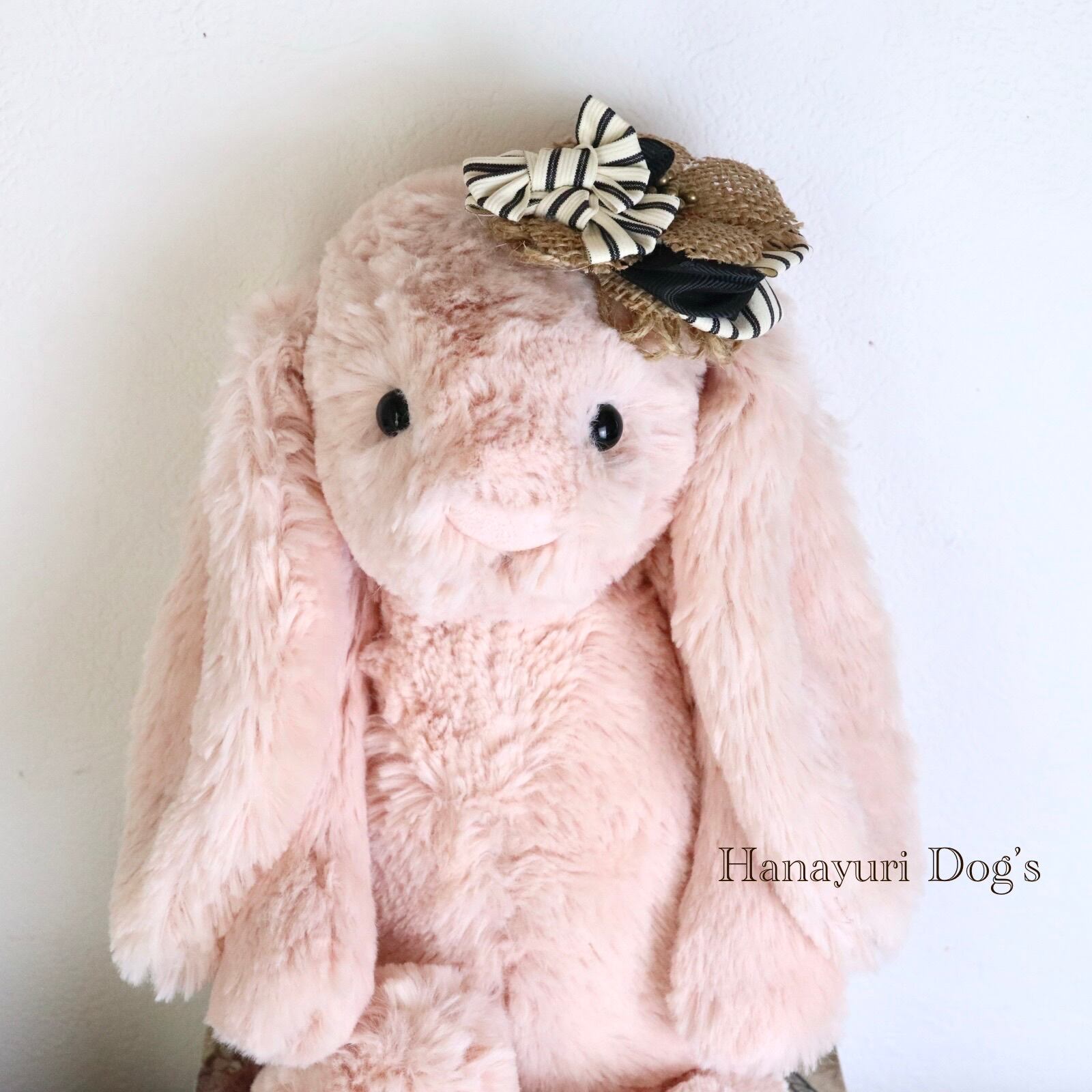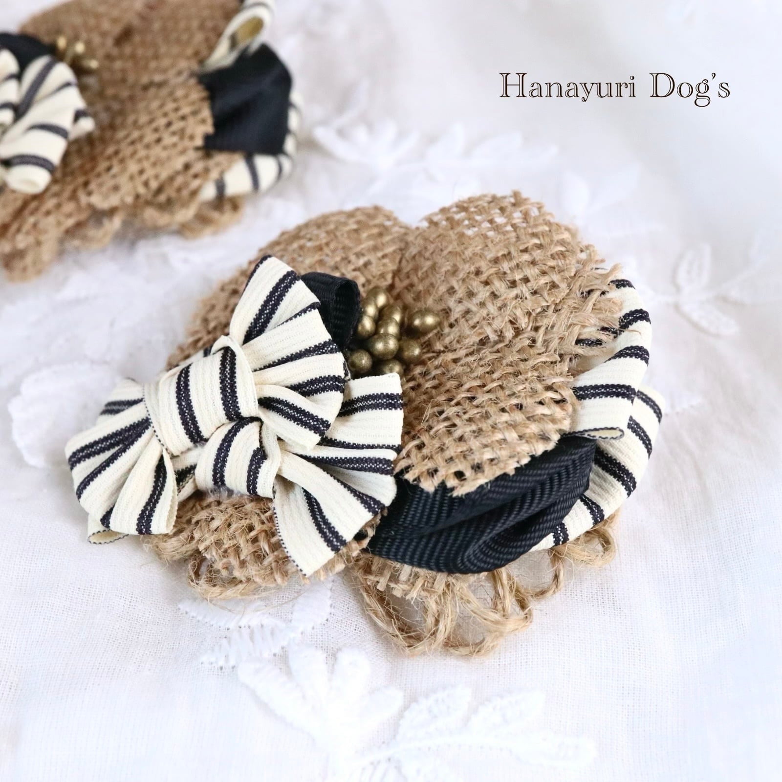 帽子風バレッタリボン ストライプ 黒 麻 犬バレッタ キッズ・子供リボン ペット ぬいぐるみ ヘアアクセサリー 髪飾り 誕生日 記念日 プレゼント オフ会 うちの子記念日 イベント 撮影